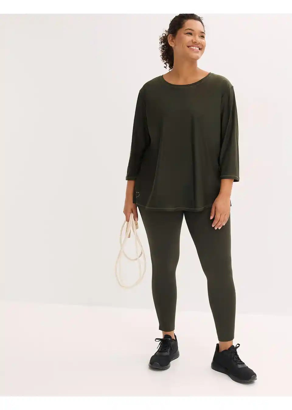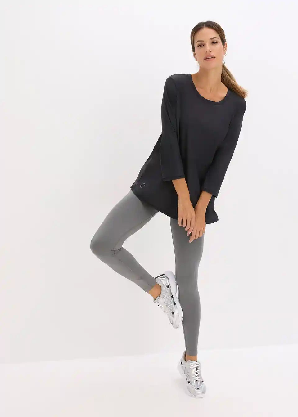 Ležerna ultrasoft majica funkcionalne tkanine s ¾ rukavima i bočnim prorezima, Quickdry