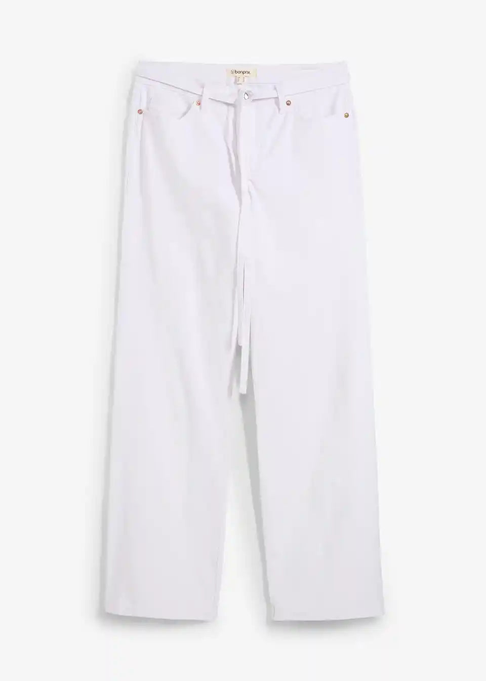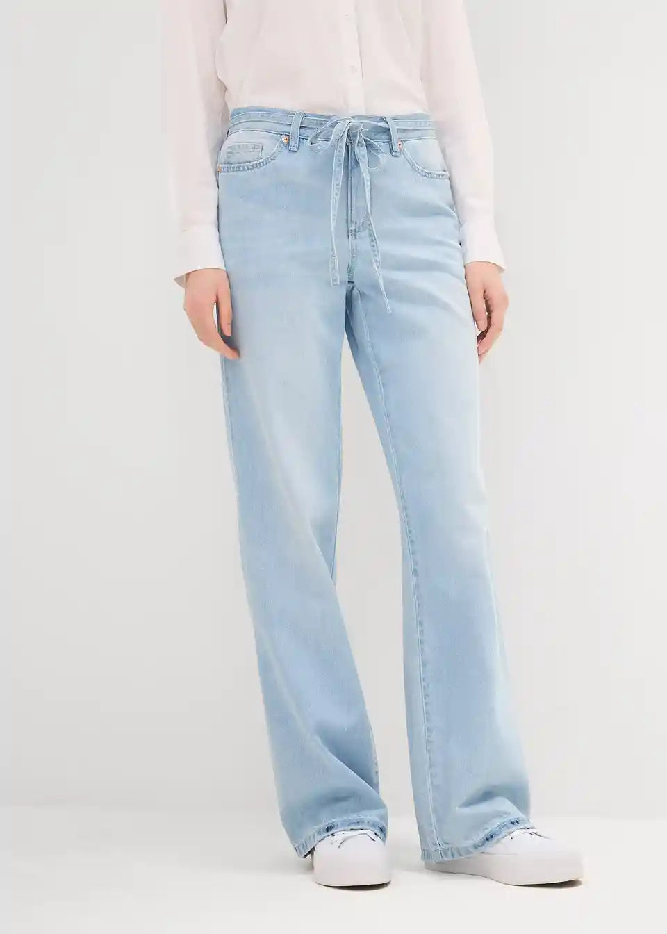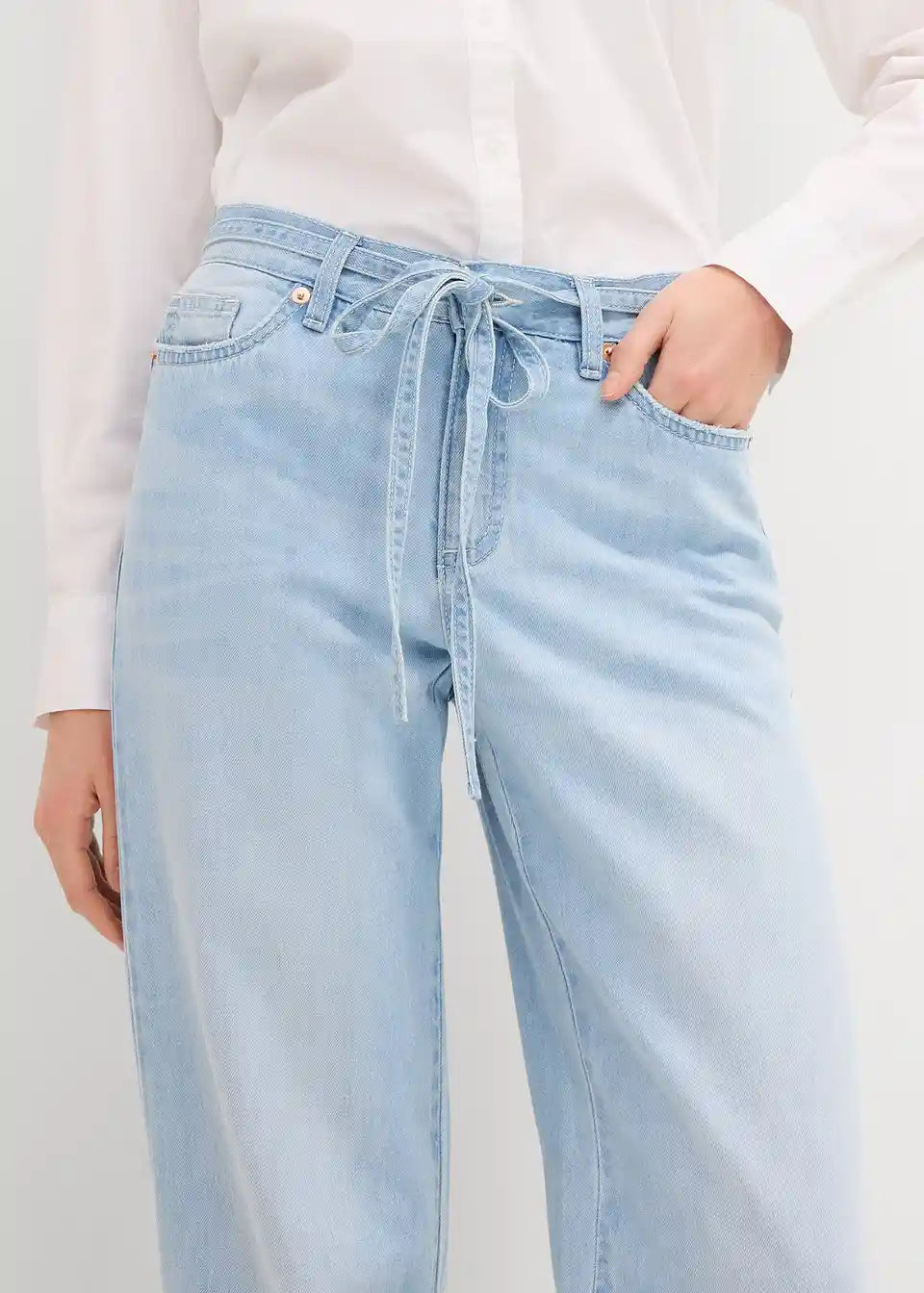 Wide-Leg-Jeans, Mid Waist, s remenom