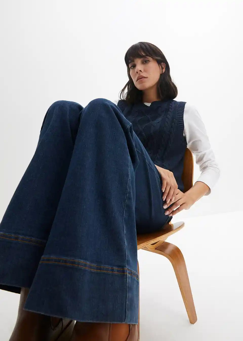 Traperice sa širokima nogavicama sa srednje visokim strukom i stretch materijalom
