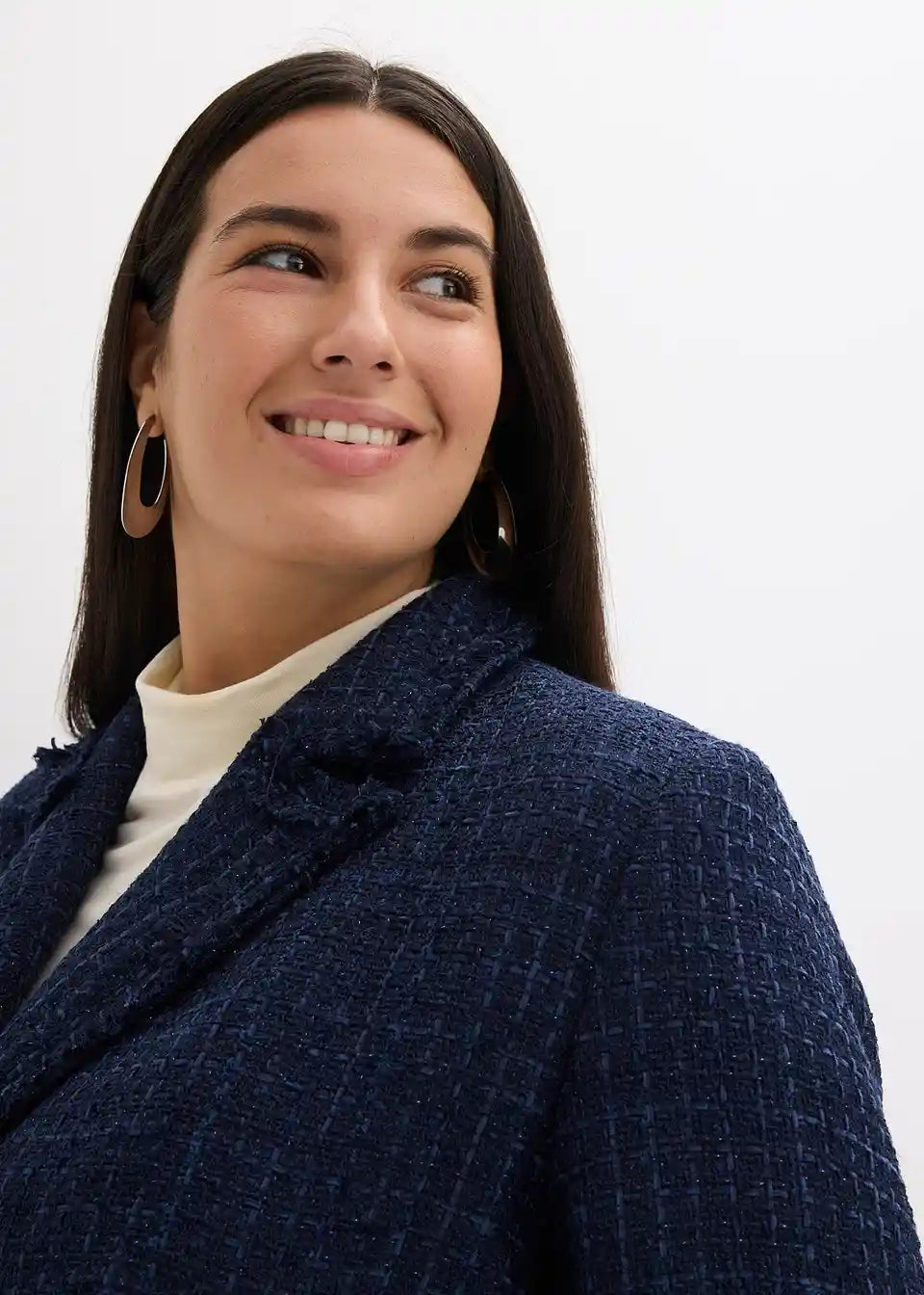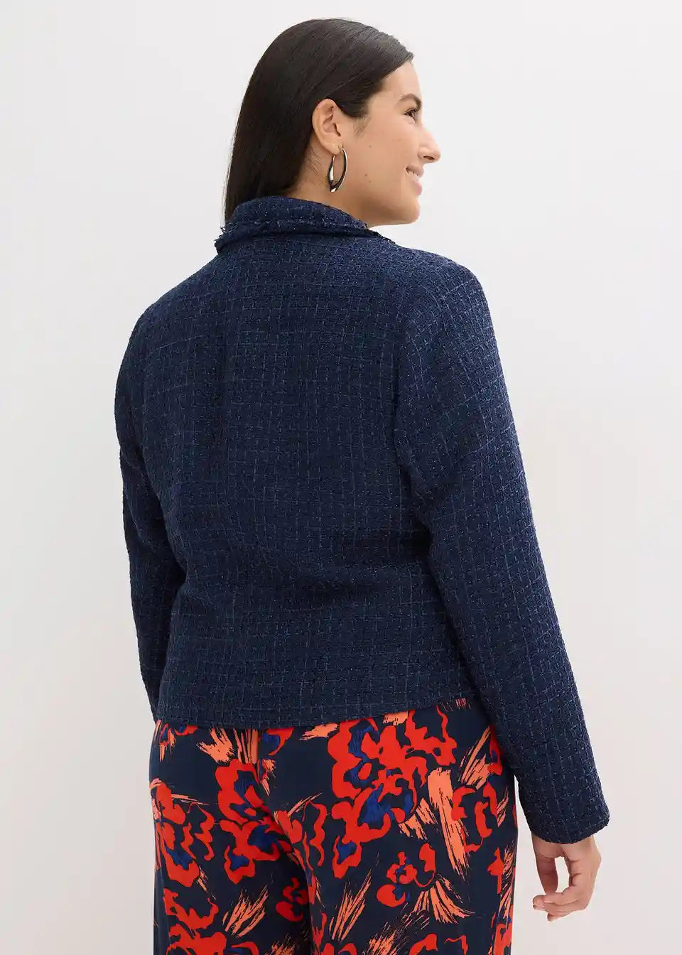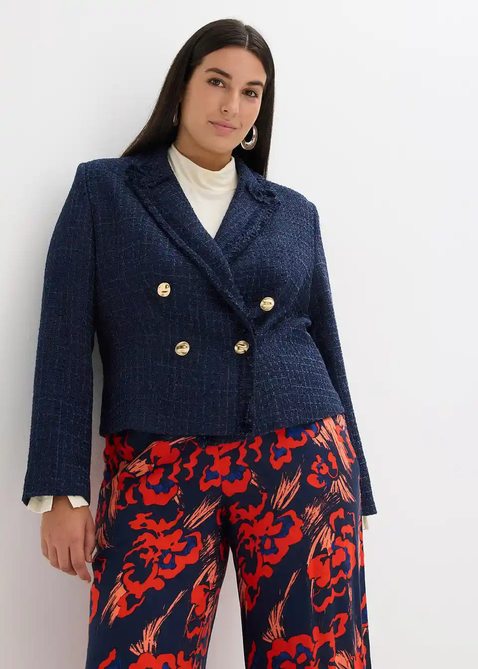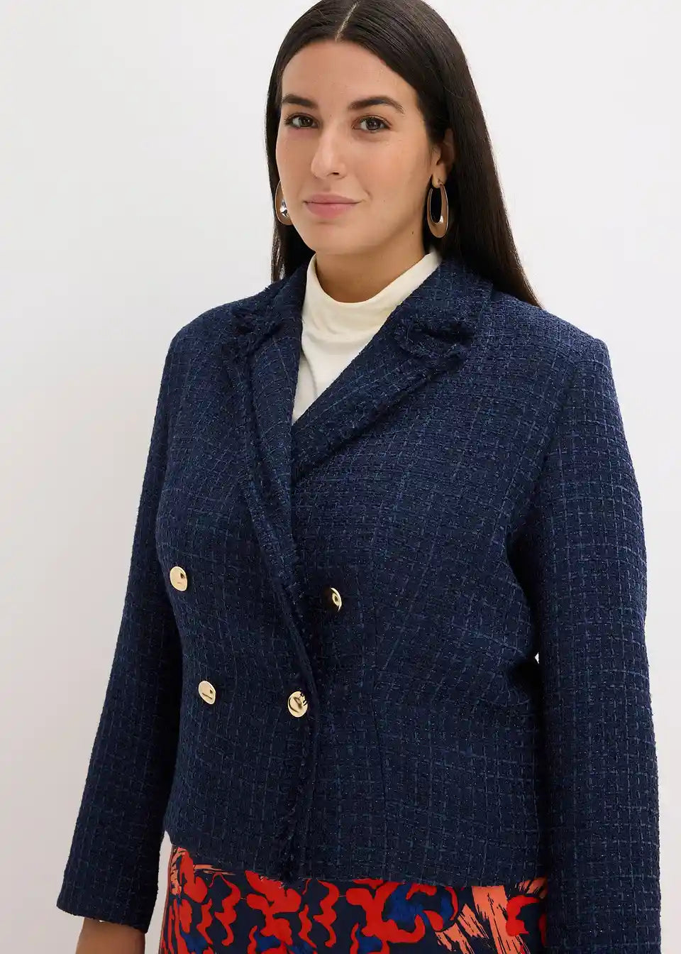 skraćeni Bouclé sako s dekorativnim zlatnim metalnim gumbima i malim resicama na reveru