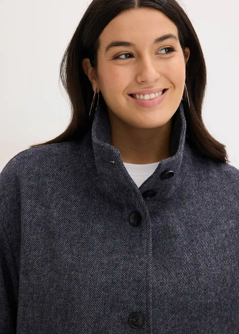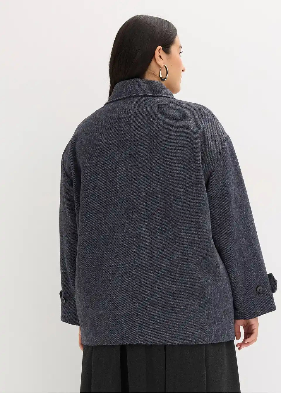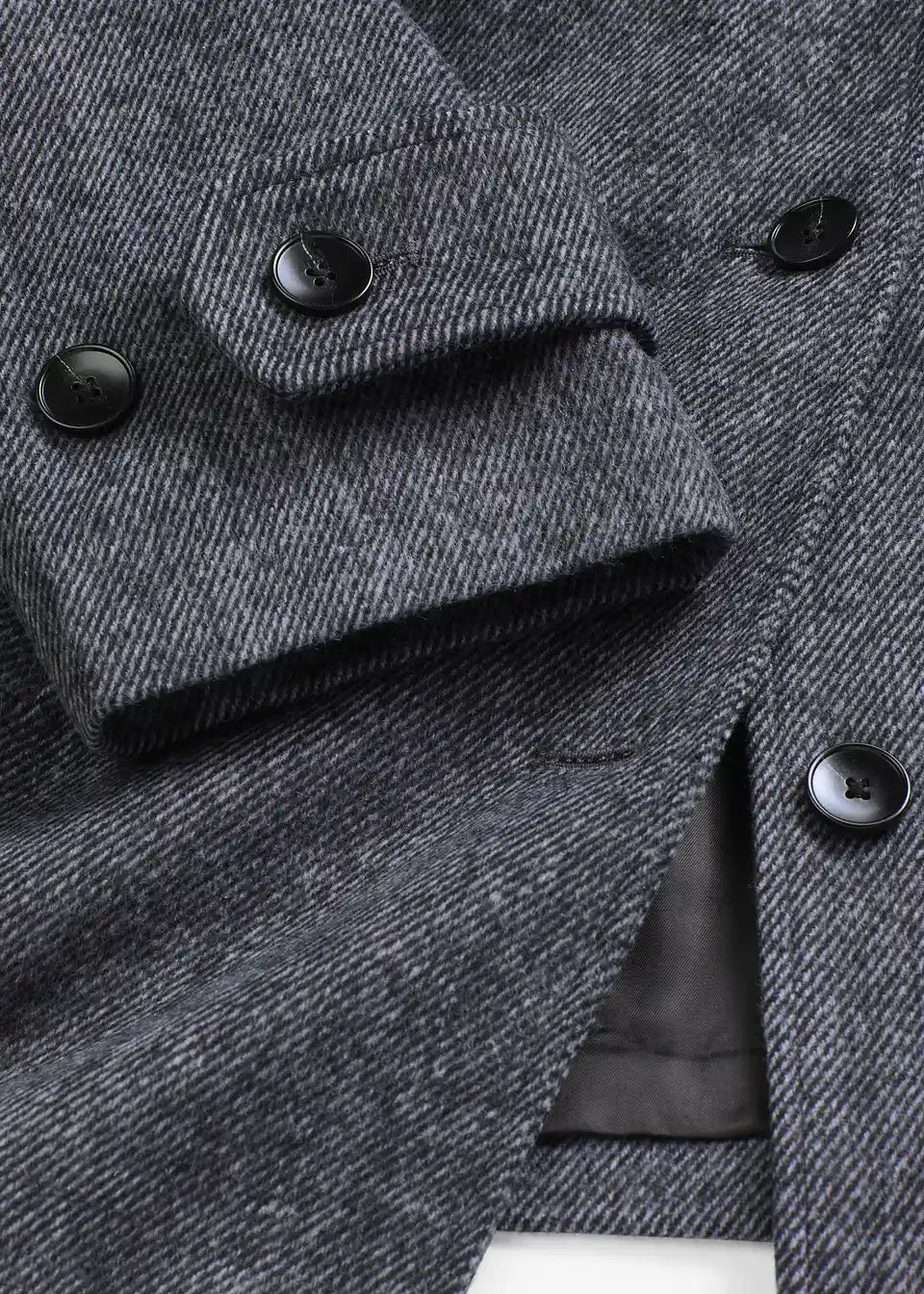 Duga jakna s dvostrukim kopčanjem u izgledu vune