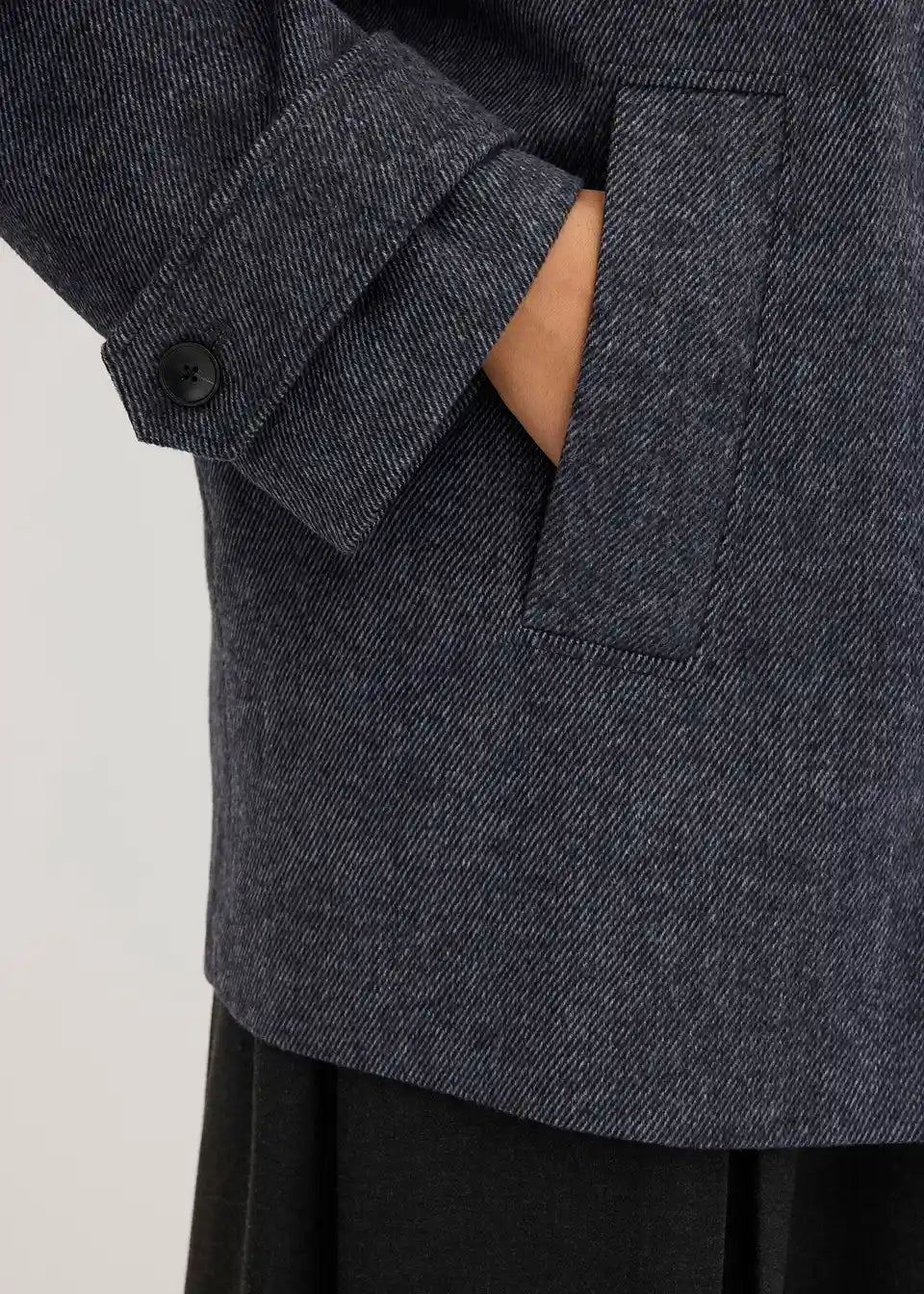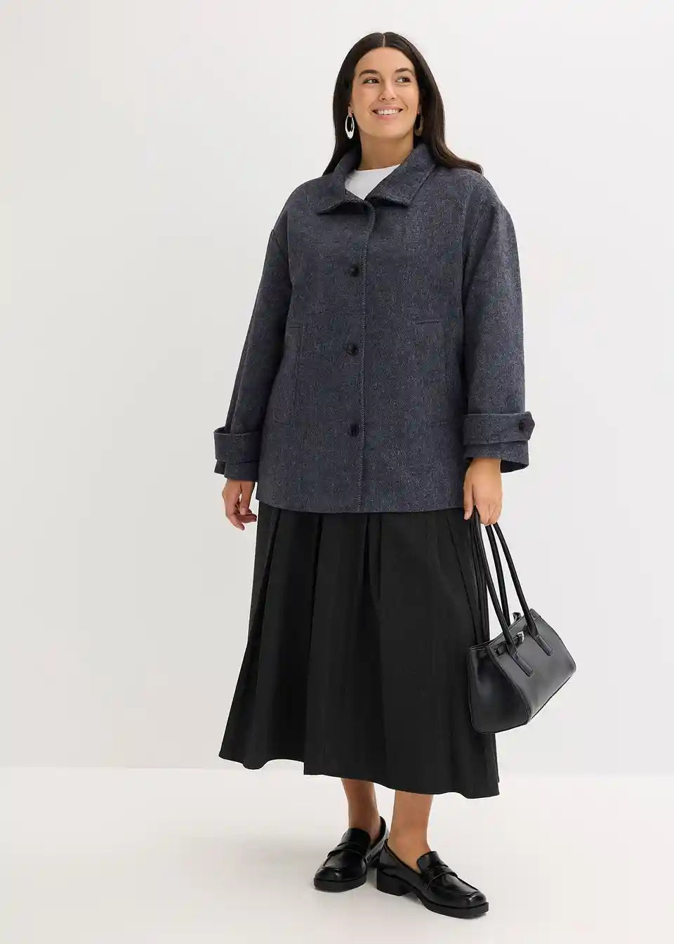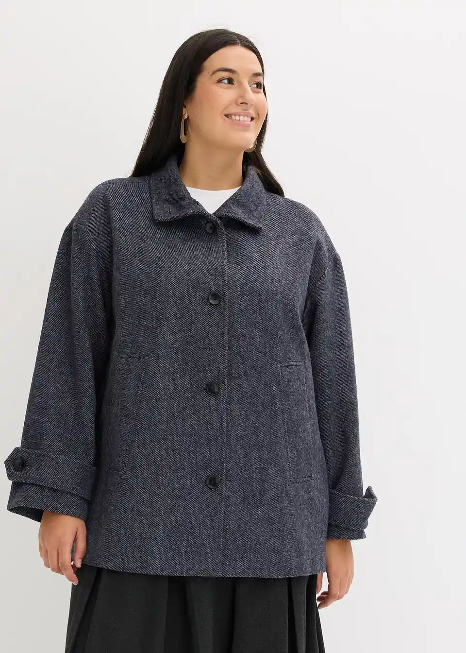 Duga jakna s dvostrukim kopčanjem u izgledu vune
