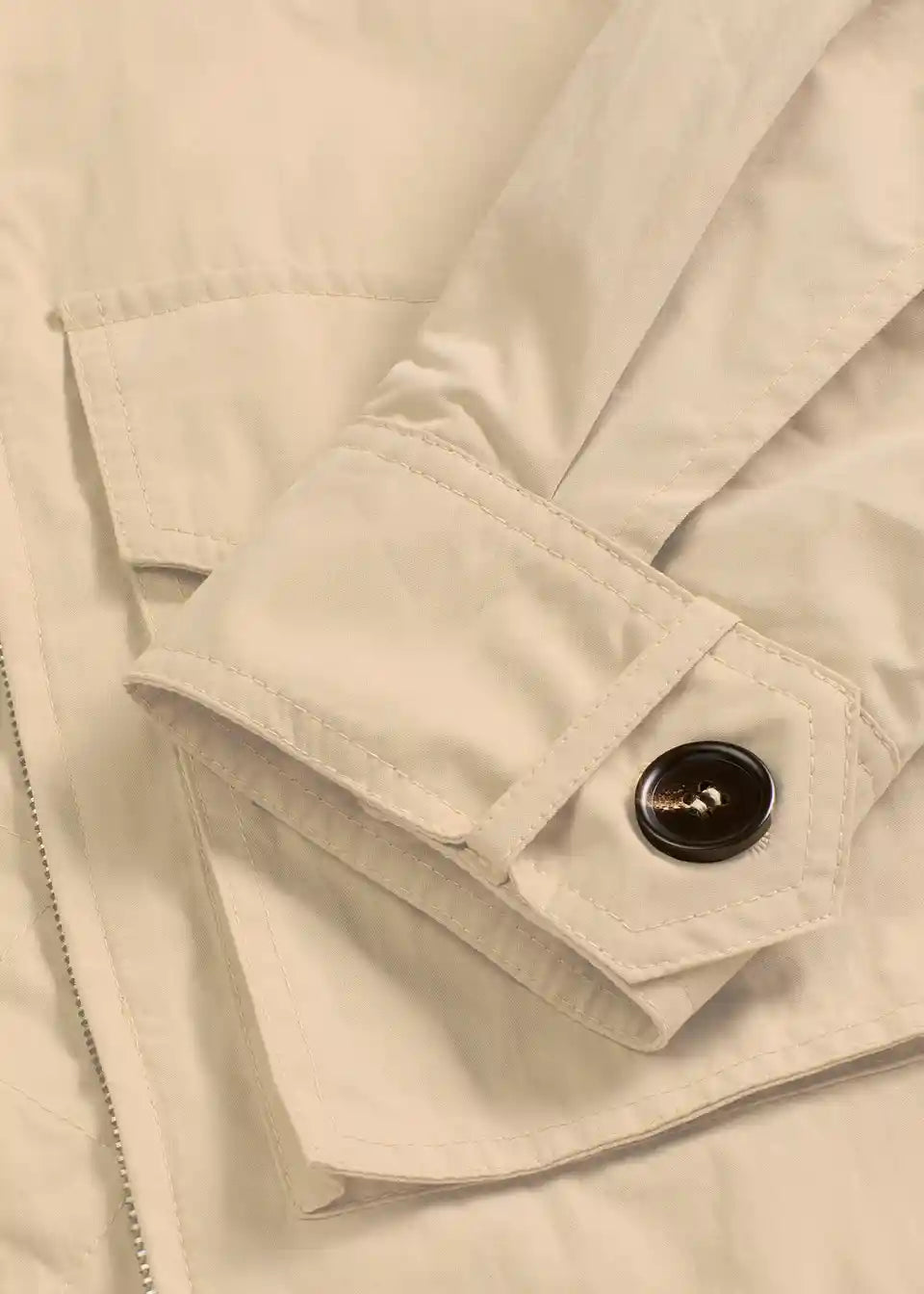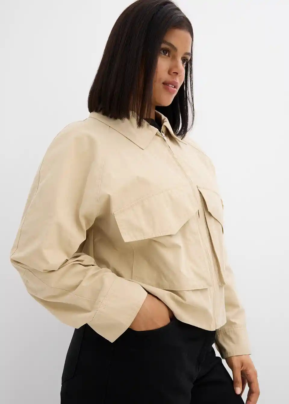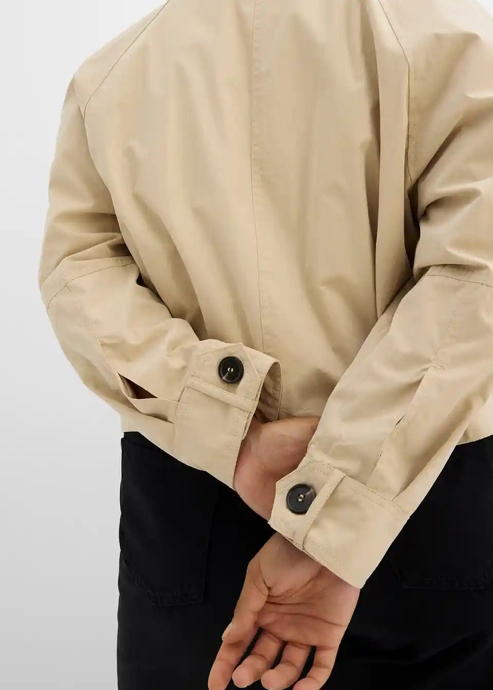 Kratka trench jakna s patentnim zatvaračem, našivenim džepovima i Kent ovratnikom