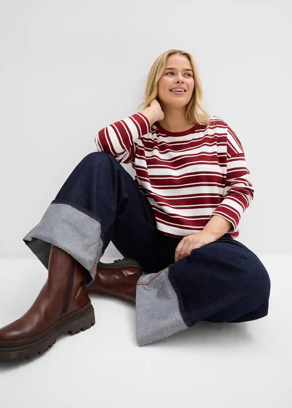 Ležerna oversize majica dugih rukava od čiste pamuka, prugasta