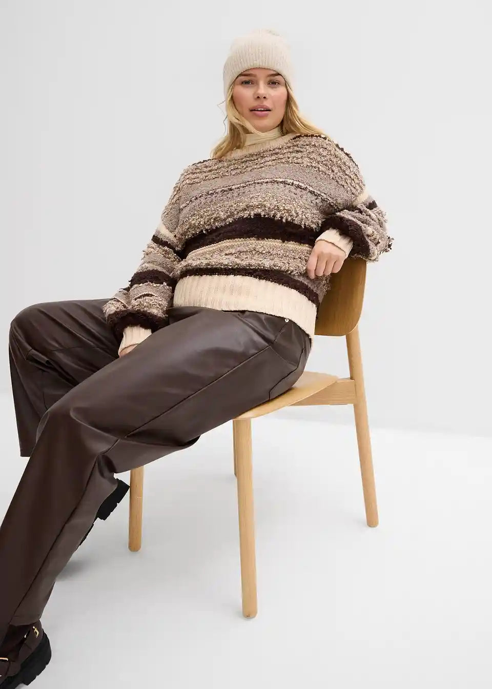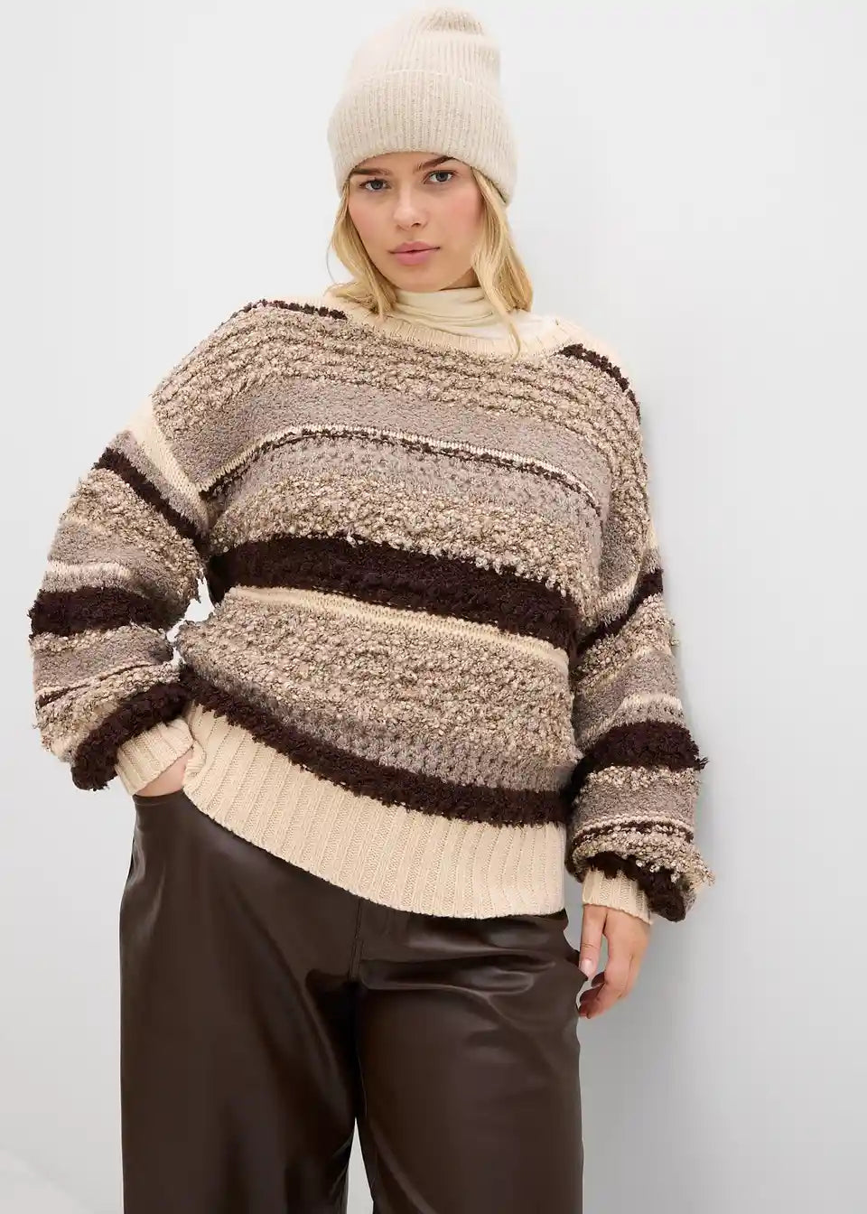 Trendi Oversize pleteni pulover u prugastom izgledu