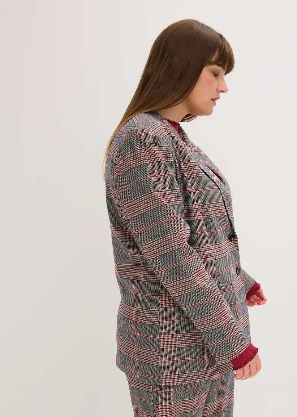 Jednoredni sako s naglašenim ramenima zahvaljujući jastučićima za ramena i ušivenim džepovima s preklopom