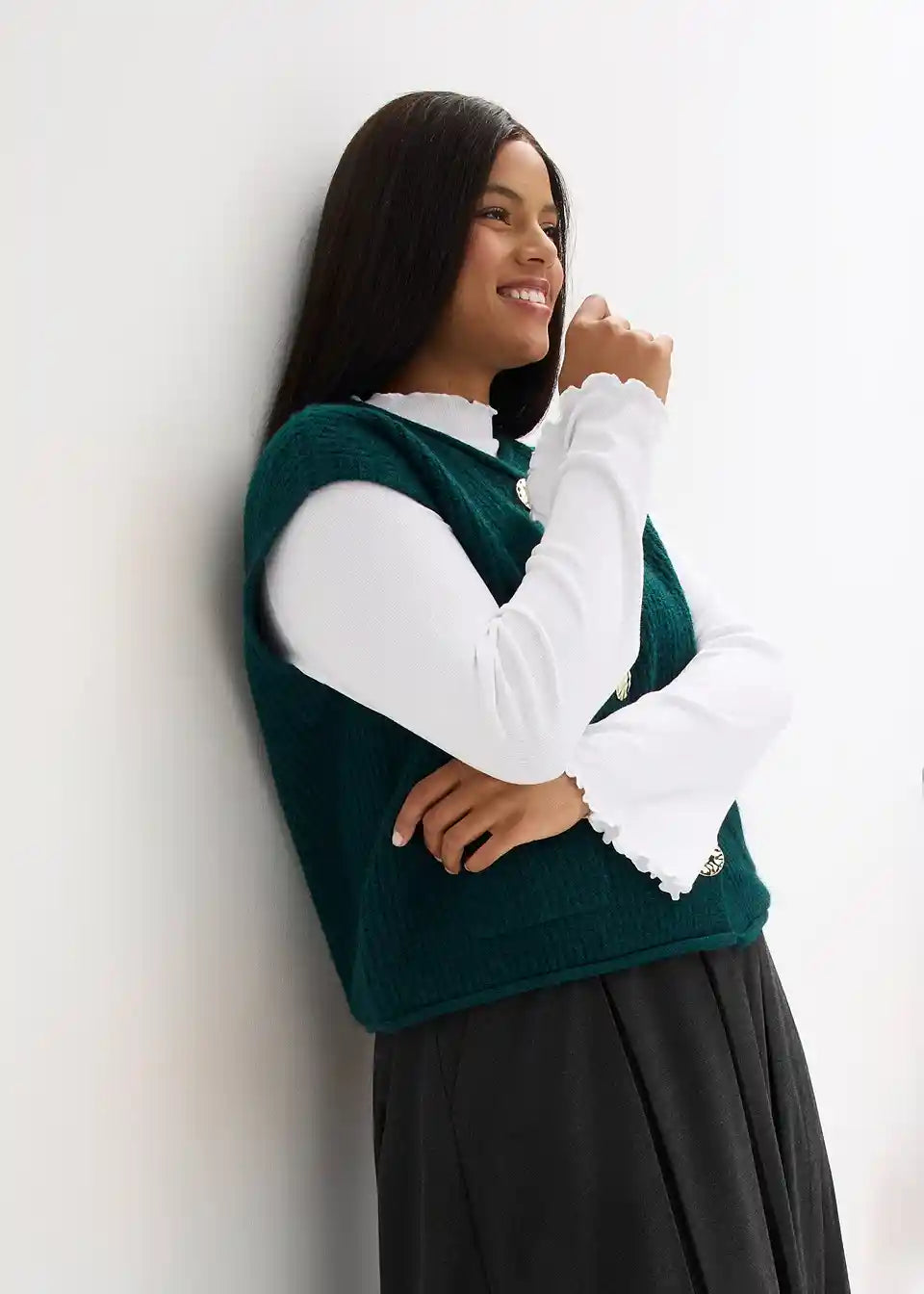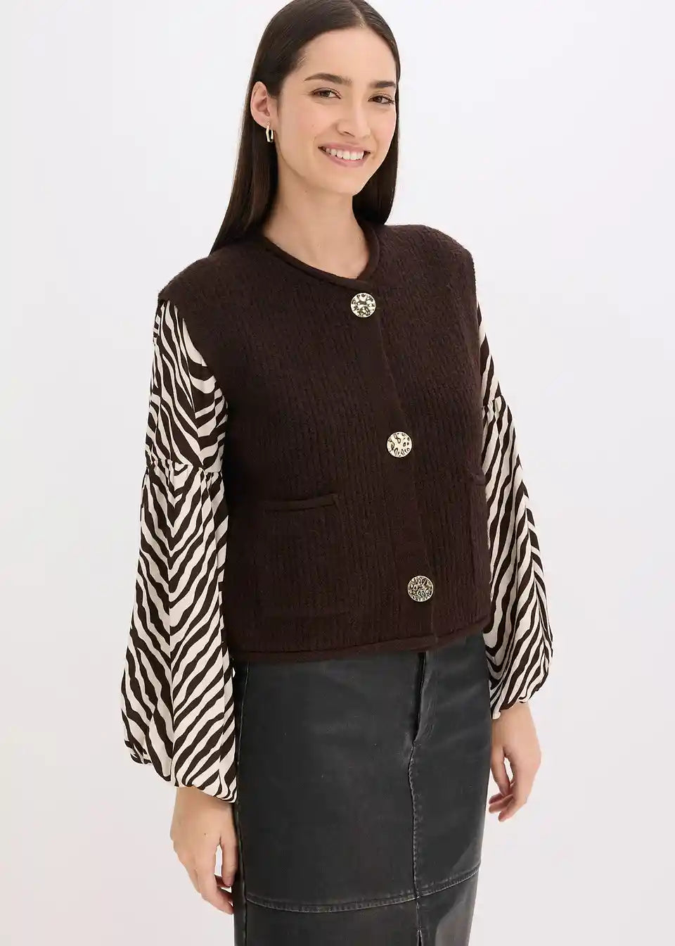 Pleteni prsluk s ukrasnim gumbima