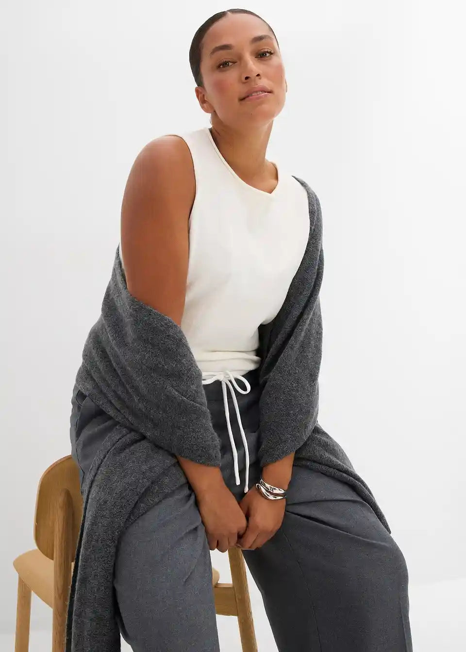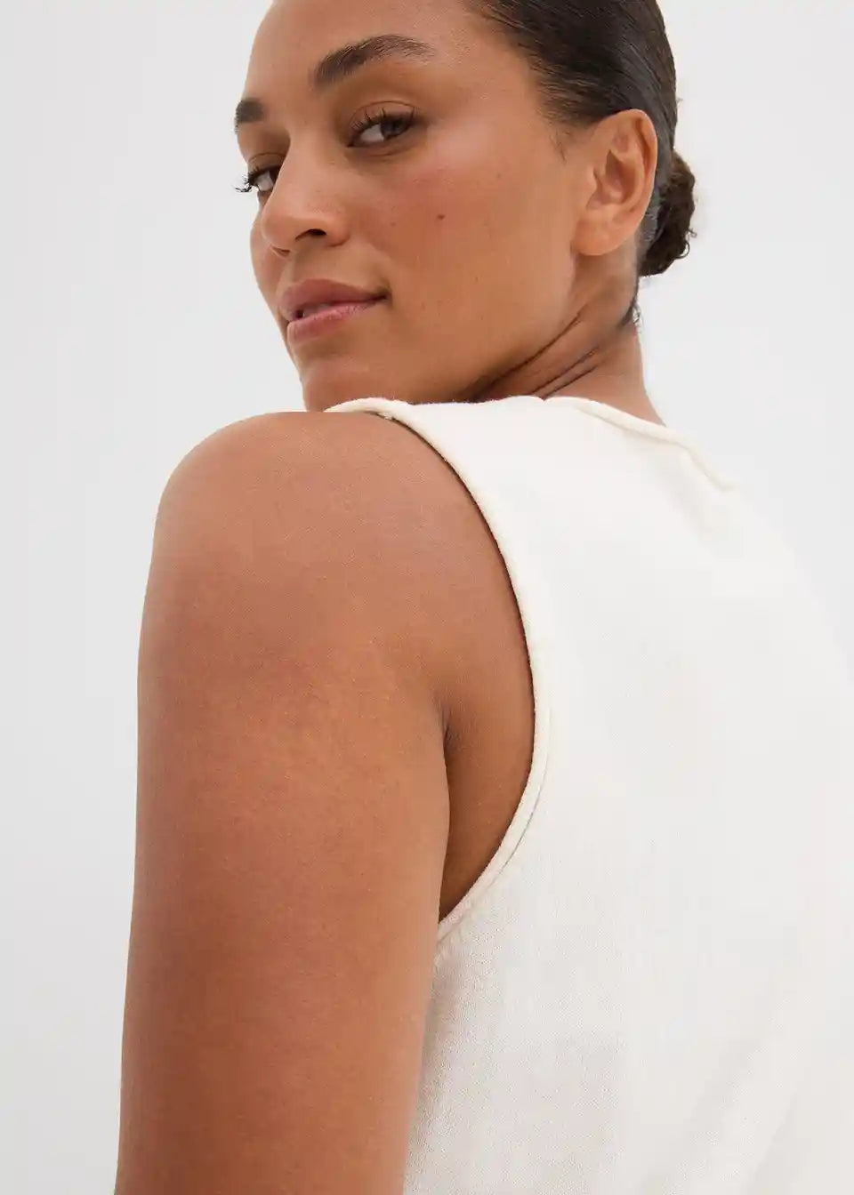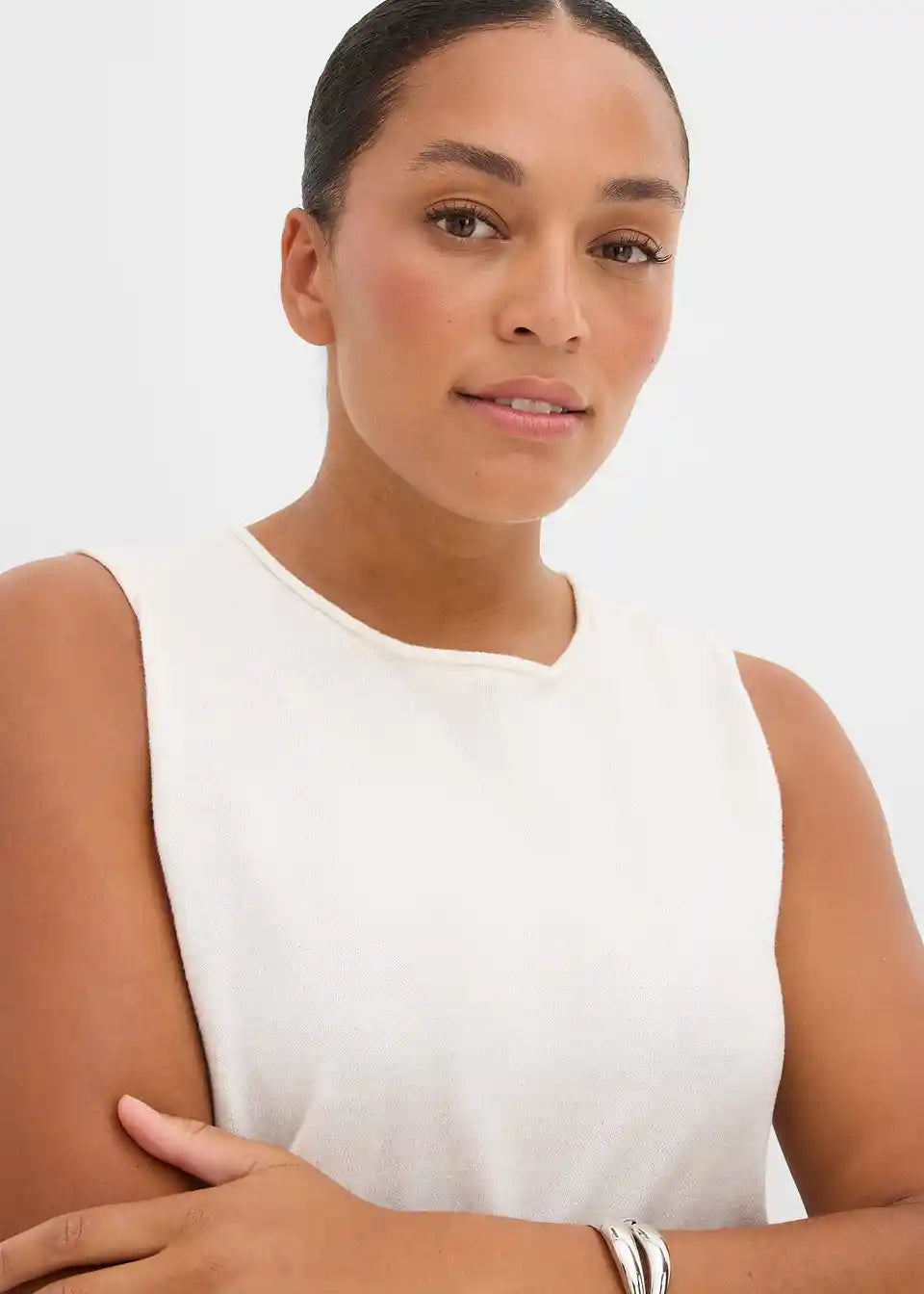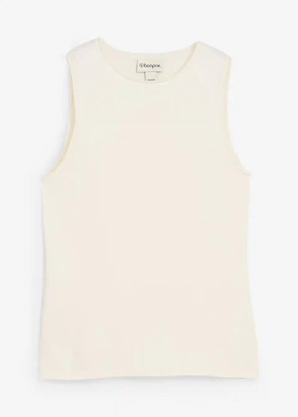 Visoko zatvoren pleteni top bez rukava s okruglim izrezom od mekane pamuka