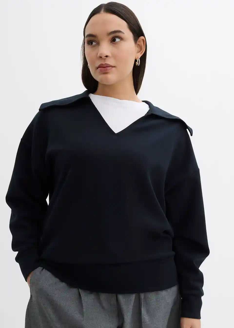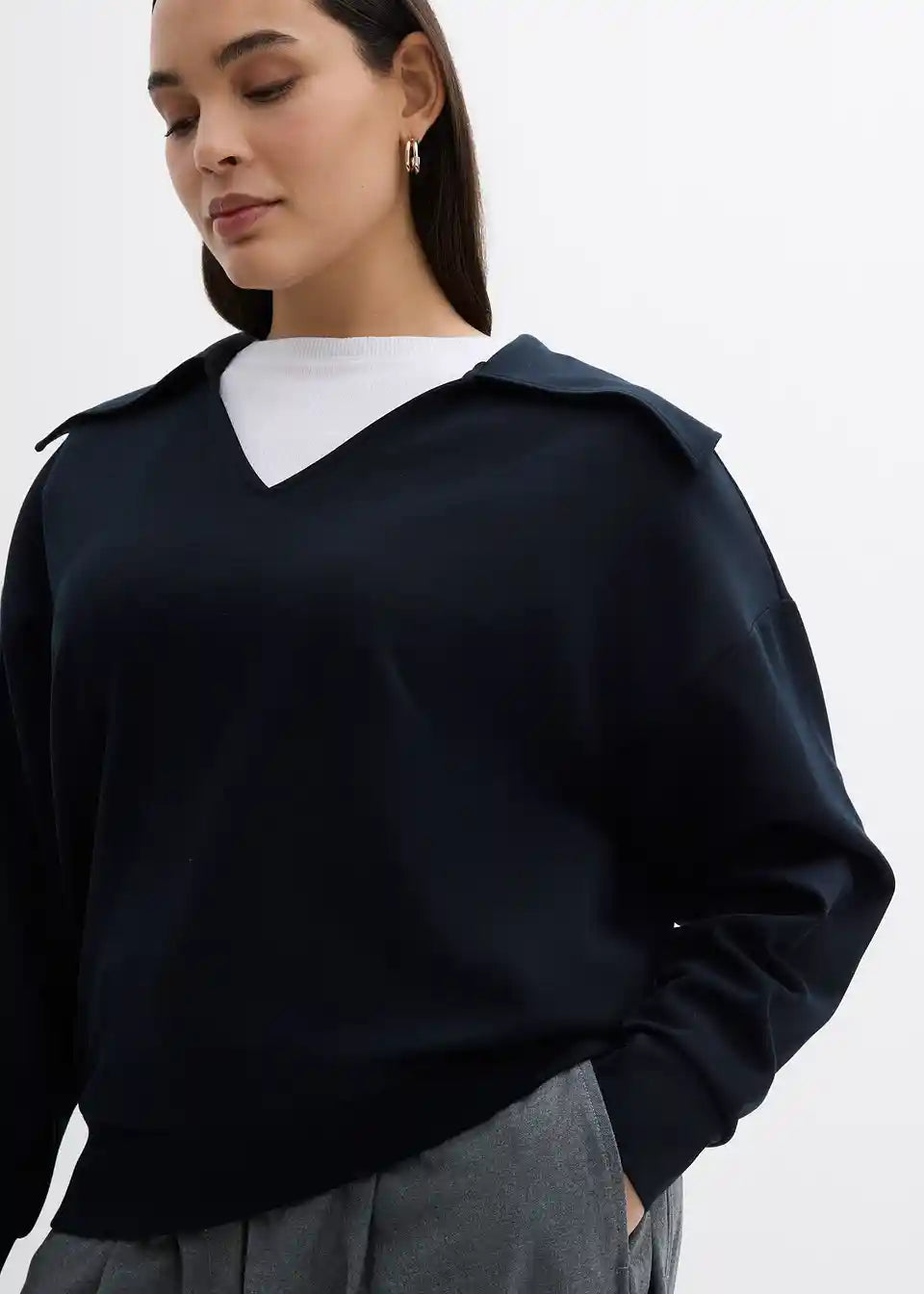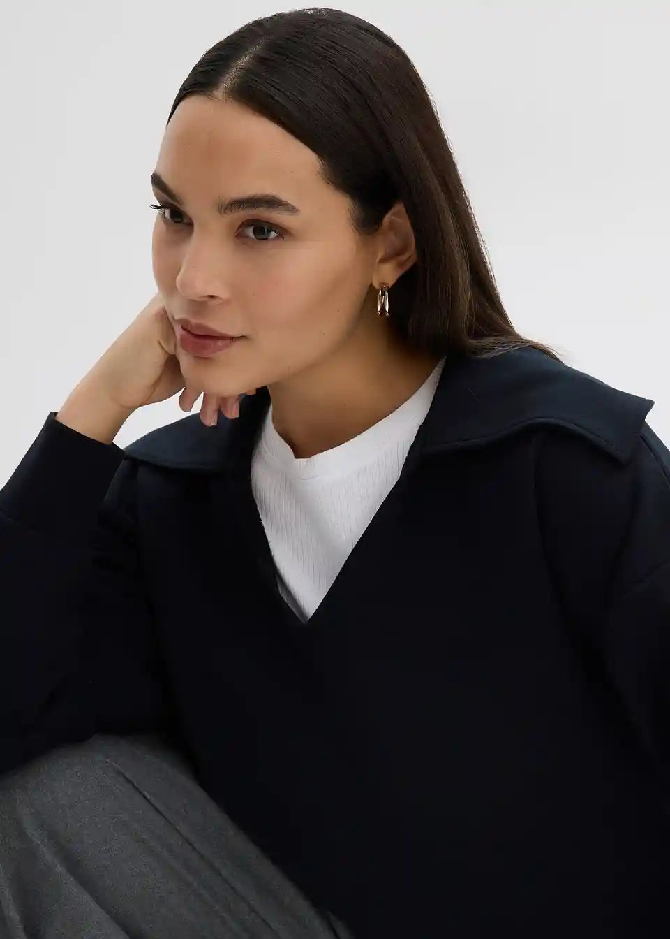 Sweatshirt sa širokim polo ovratnikom i V-izrezom