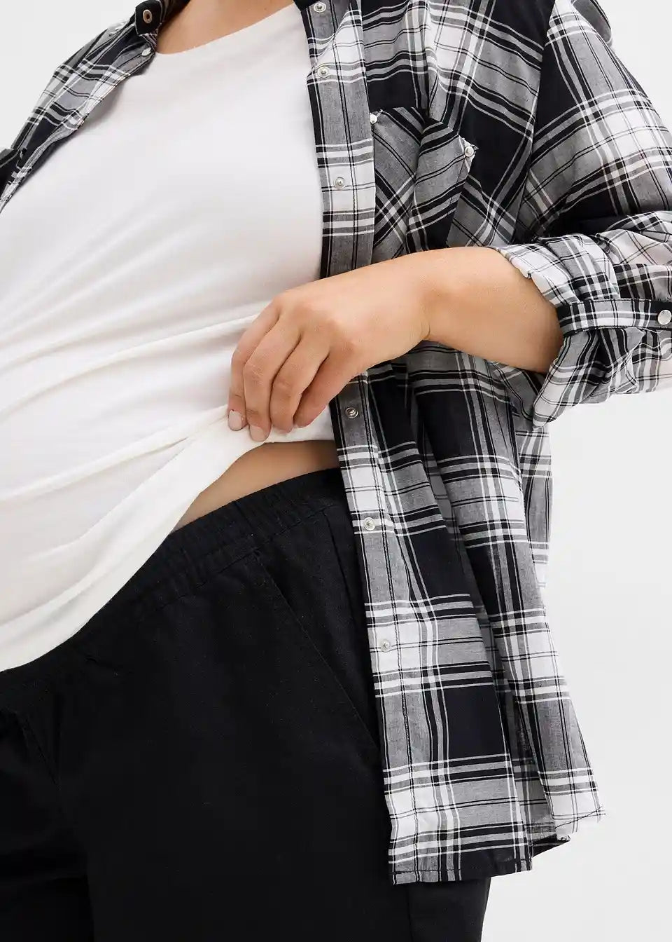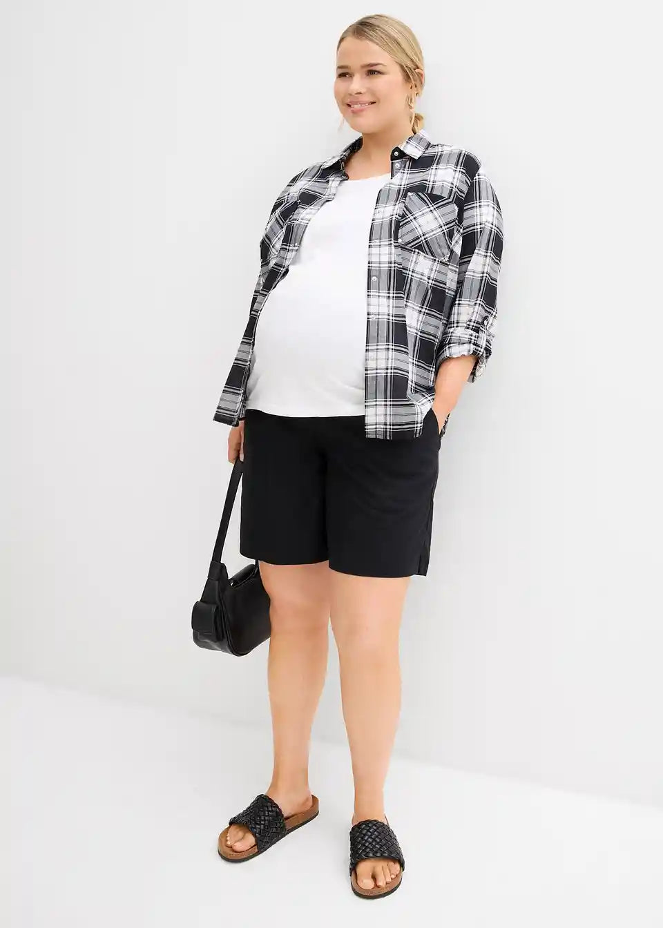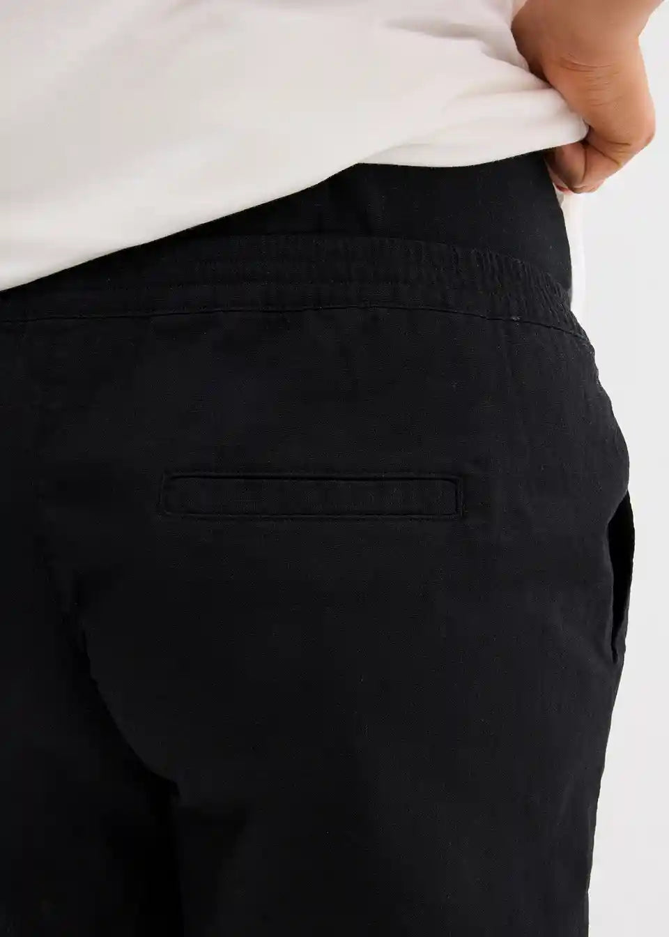 Prozračne trudničke bermude izrađene su od visokokvalitetne mješavine lana i pamuka, i imaju široki, prišiveni pojas od džerseja s elastanom koji se savršeno prilagođava trbuhu. Dizajniran je tako da se može udobno preklopiti, što ga čini prikladnim za početnu fazu trudnoće, ali i za razdoblje nakon poroda. Mekana, elastična traka u struku nježno se prilagođava rastućem trbuhu bez pritiska ili stezanja. S praktičnim našivenim džepovima sprijeda i džepovima s poklopcem straga. Ležeran kroj i lagani materijal čine bermude idealnim izborom za ljeto.