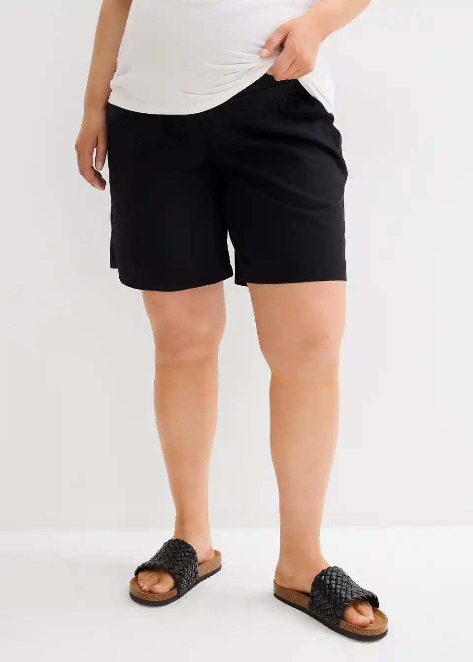 Bermude za trudnice s trakom za trbuh koji se može preklopiti od lana i pamuka