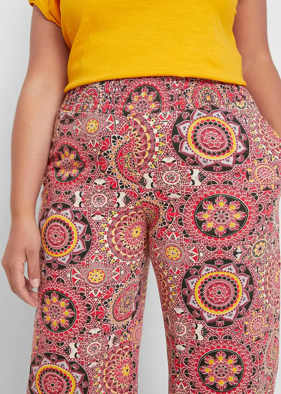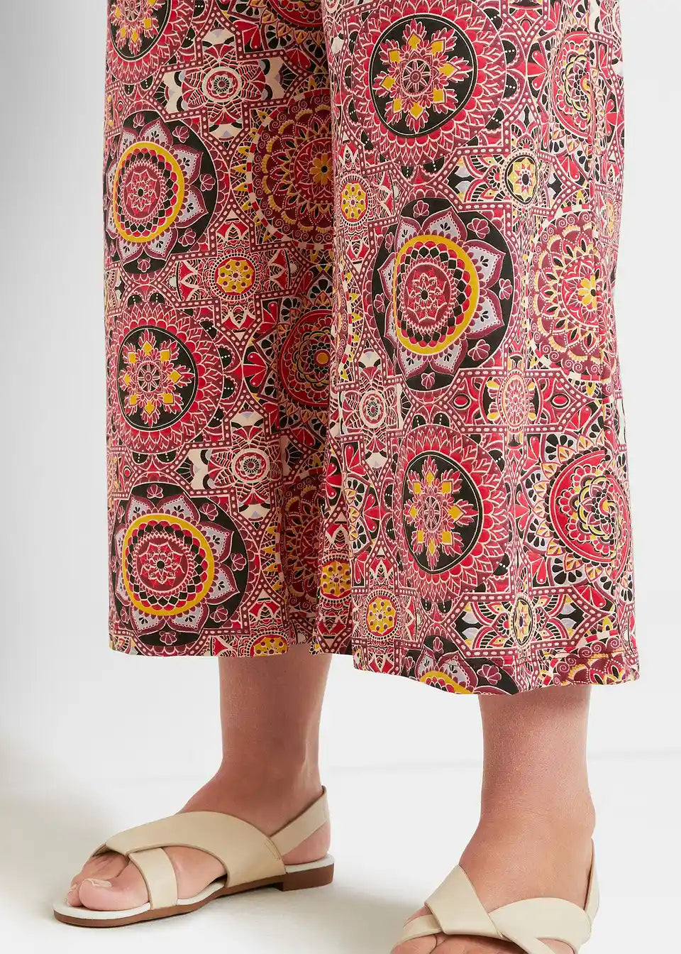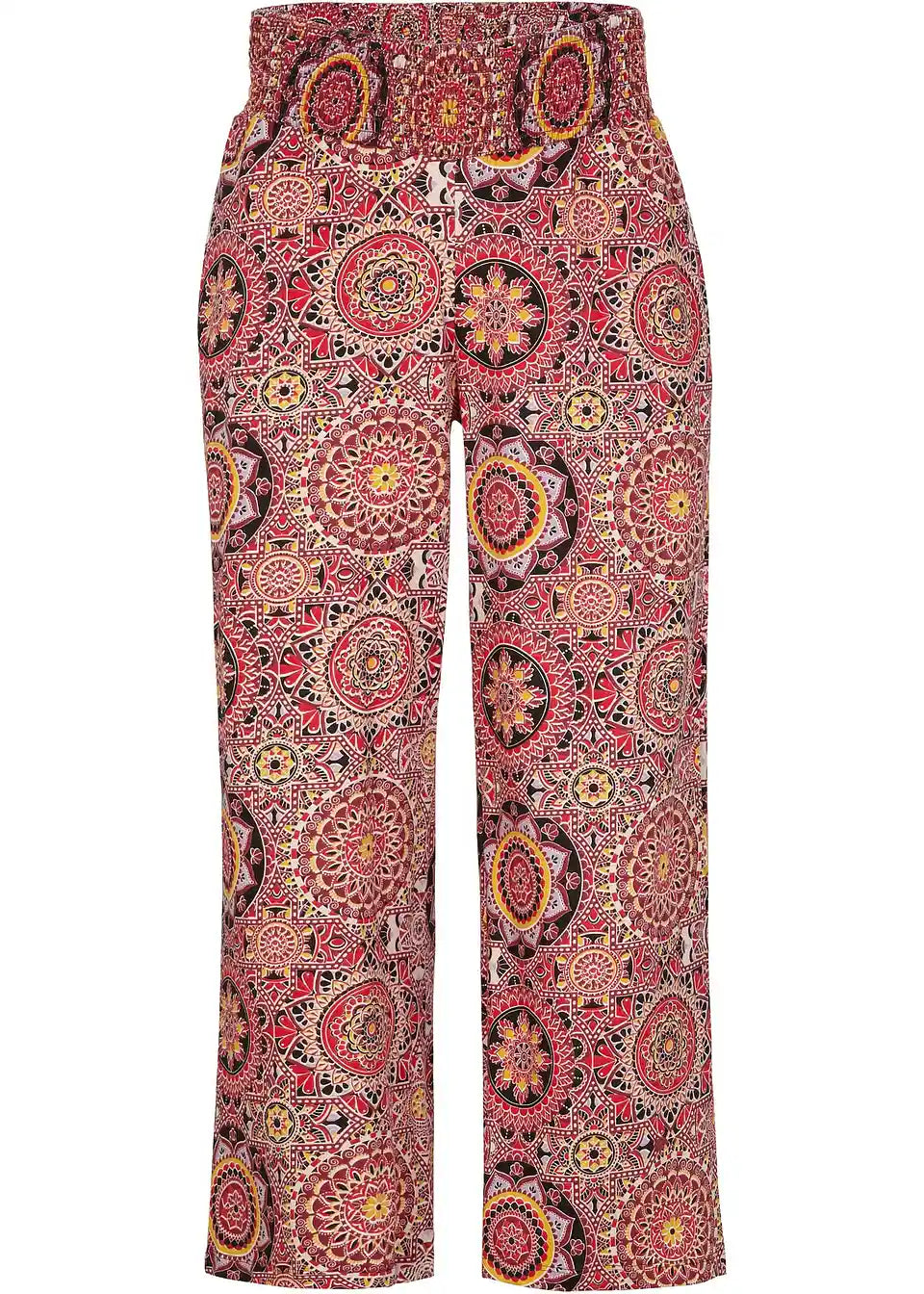 Udobne, široko krojene Jersey Cullotte s širokim smock pojasom za dodatnu udobnost u 7/8 dužini s orijentalnim printom