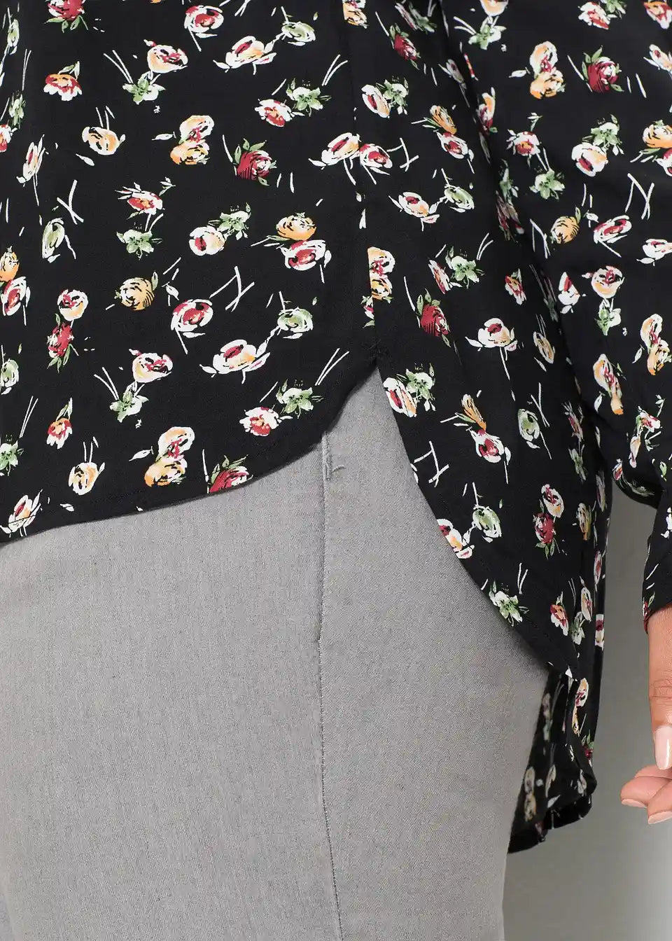 Stilizirana bluza s džepom na prsima i dužim stražnjim rubom.