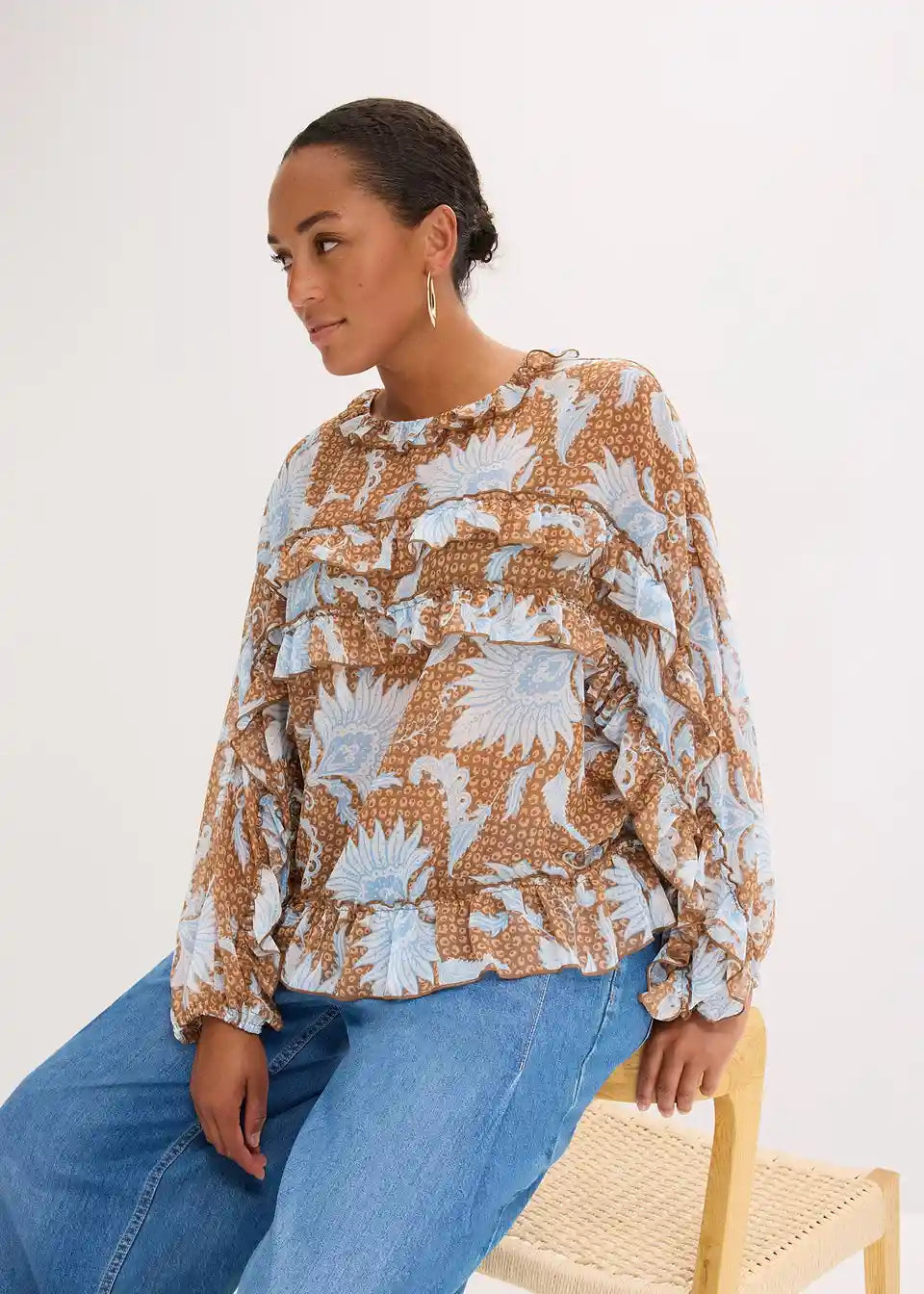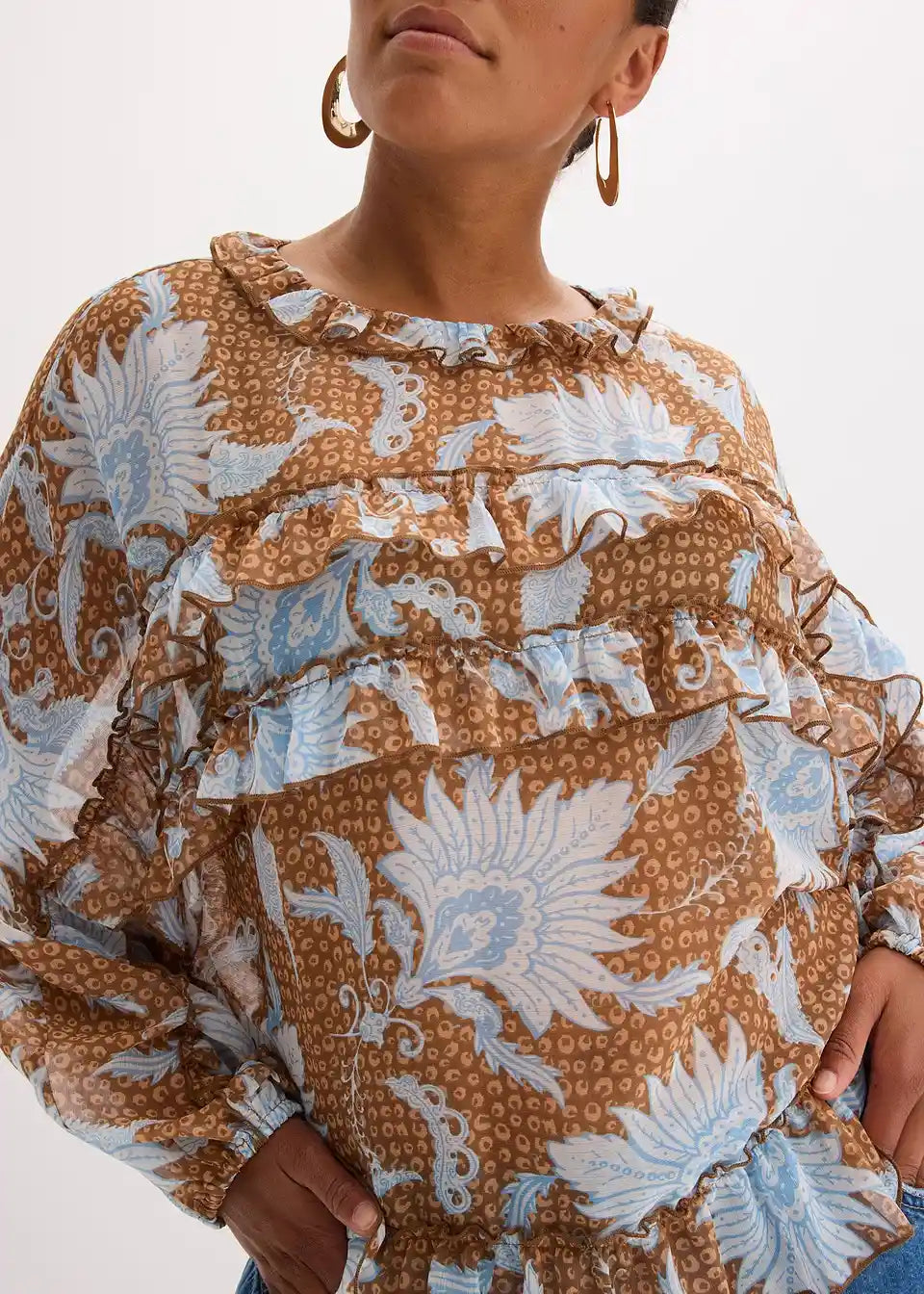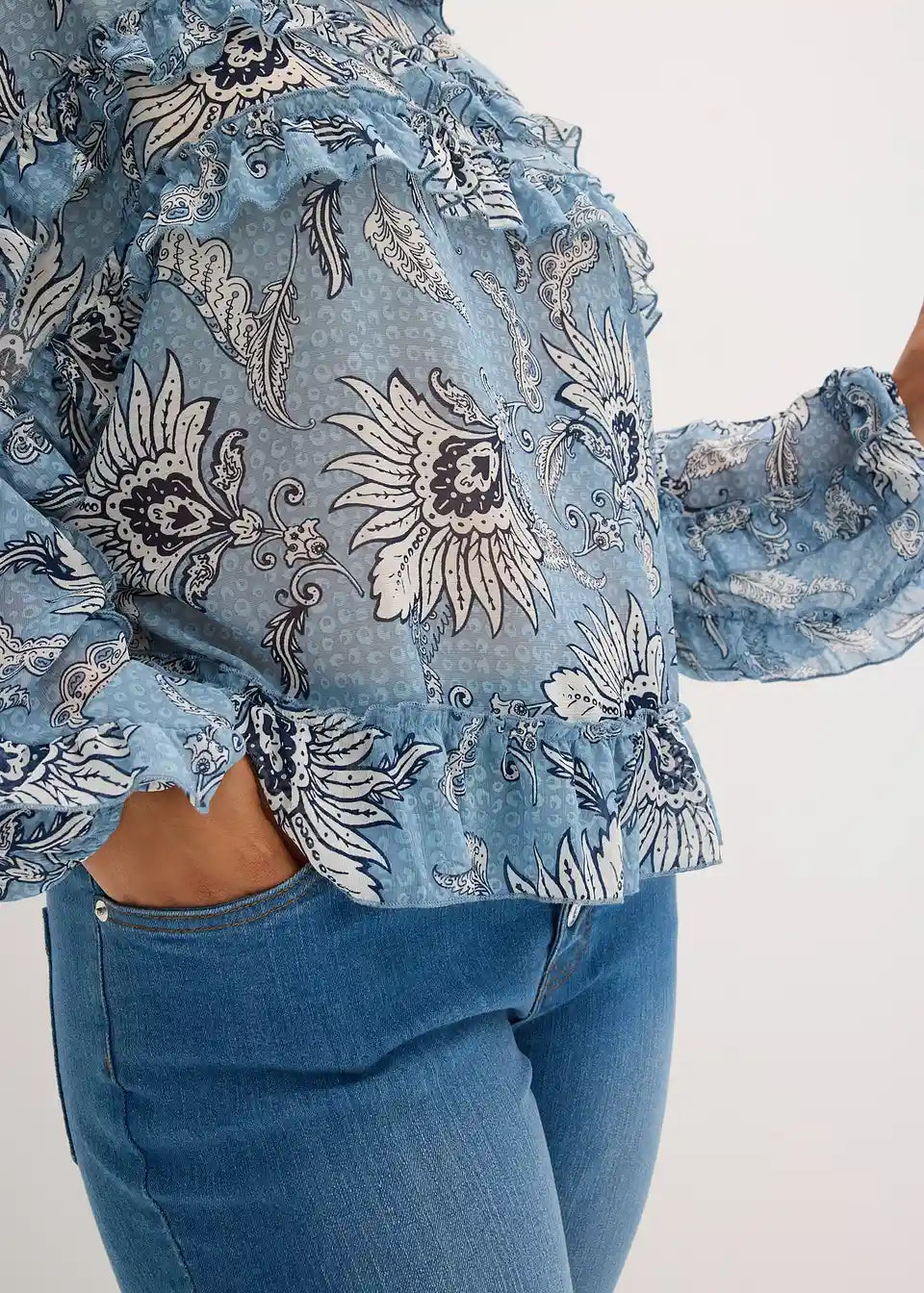 moderna Chiffon bluza sa široko krojenim rukavima i malim volanima