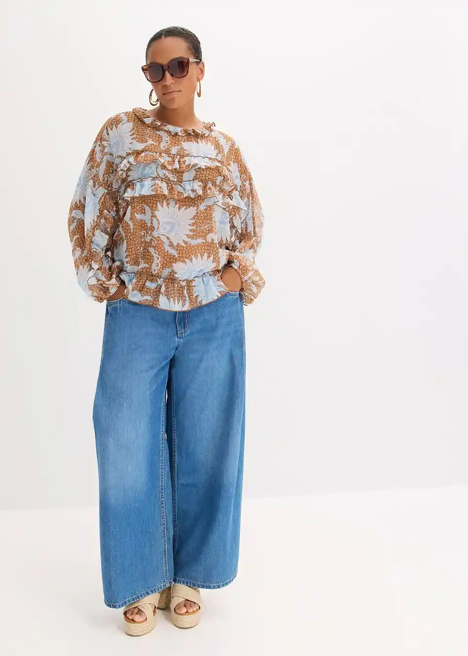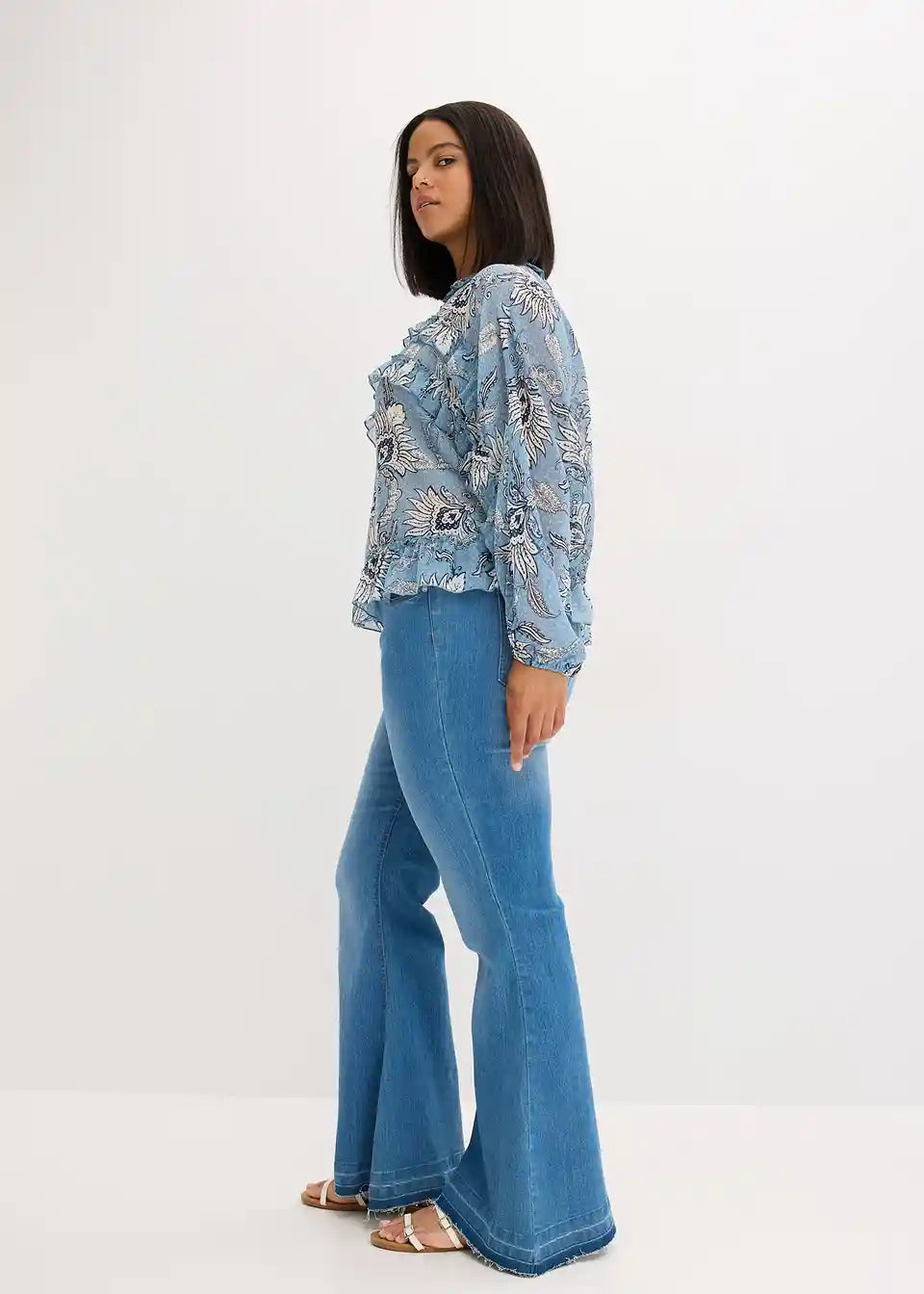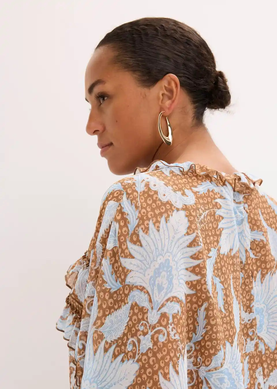 moderna Chiffon bluza sa široko krojenim rukavima i malim volanima