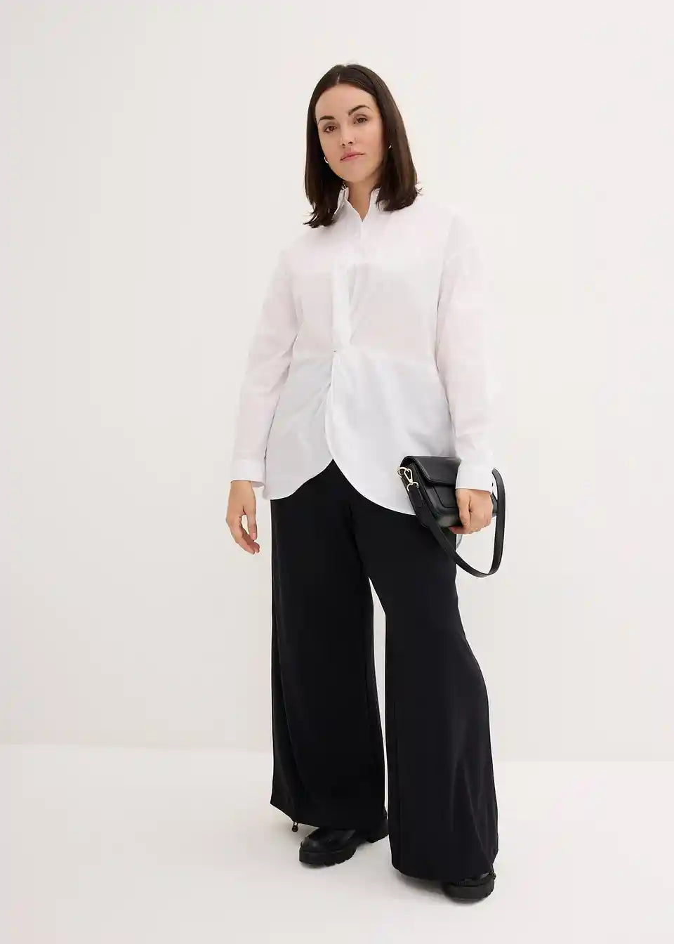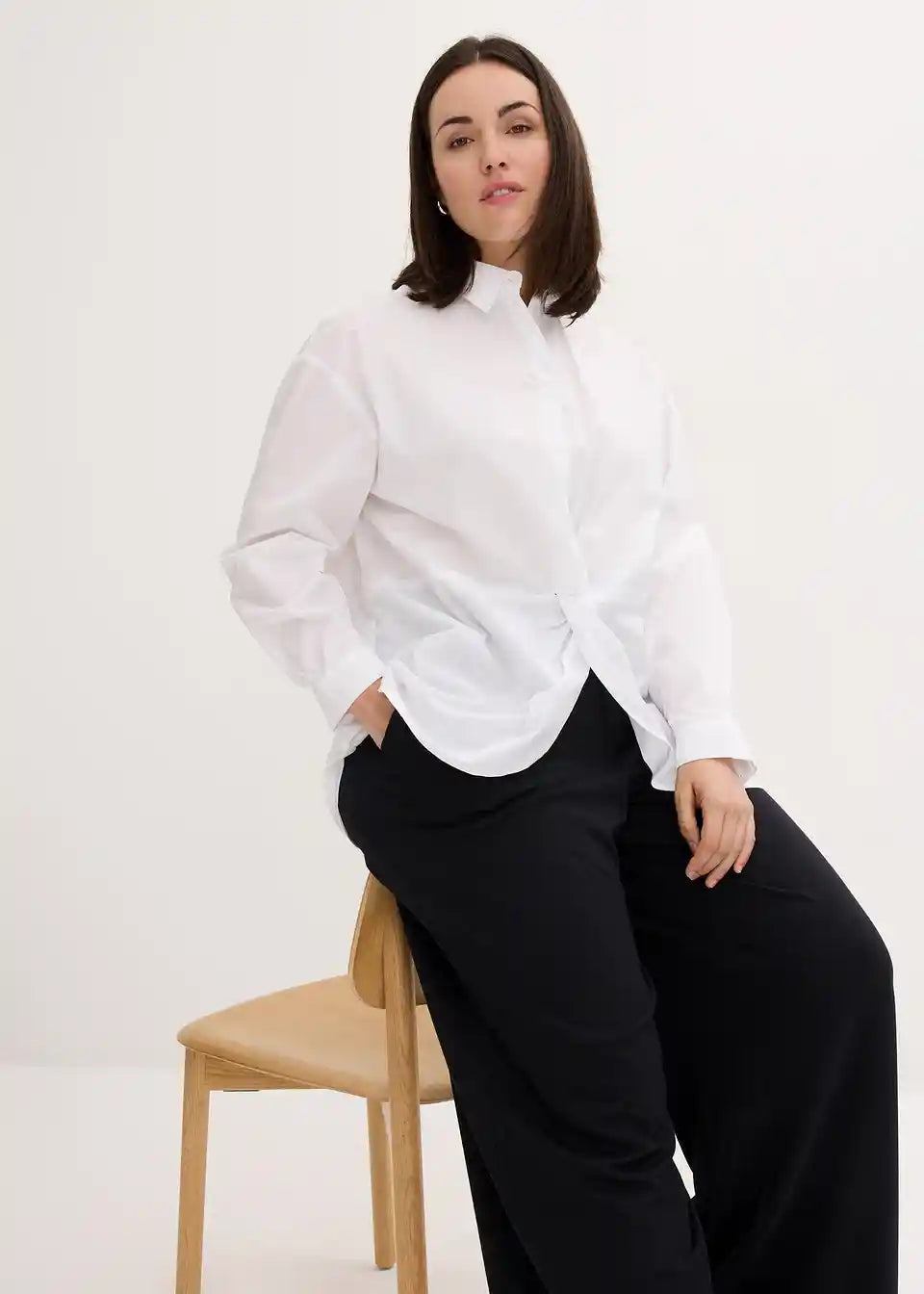 Duga bluza s modnim detaljem od popelina s dugim rukavima