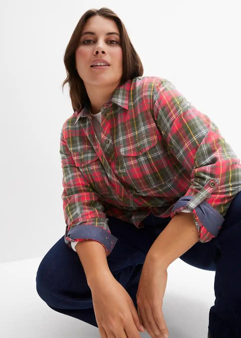 Udobna flanelska bluza s džepovima na prsima