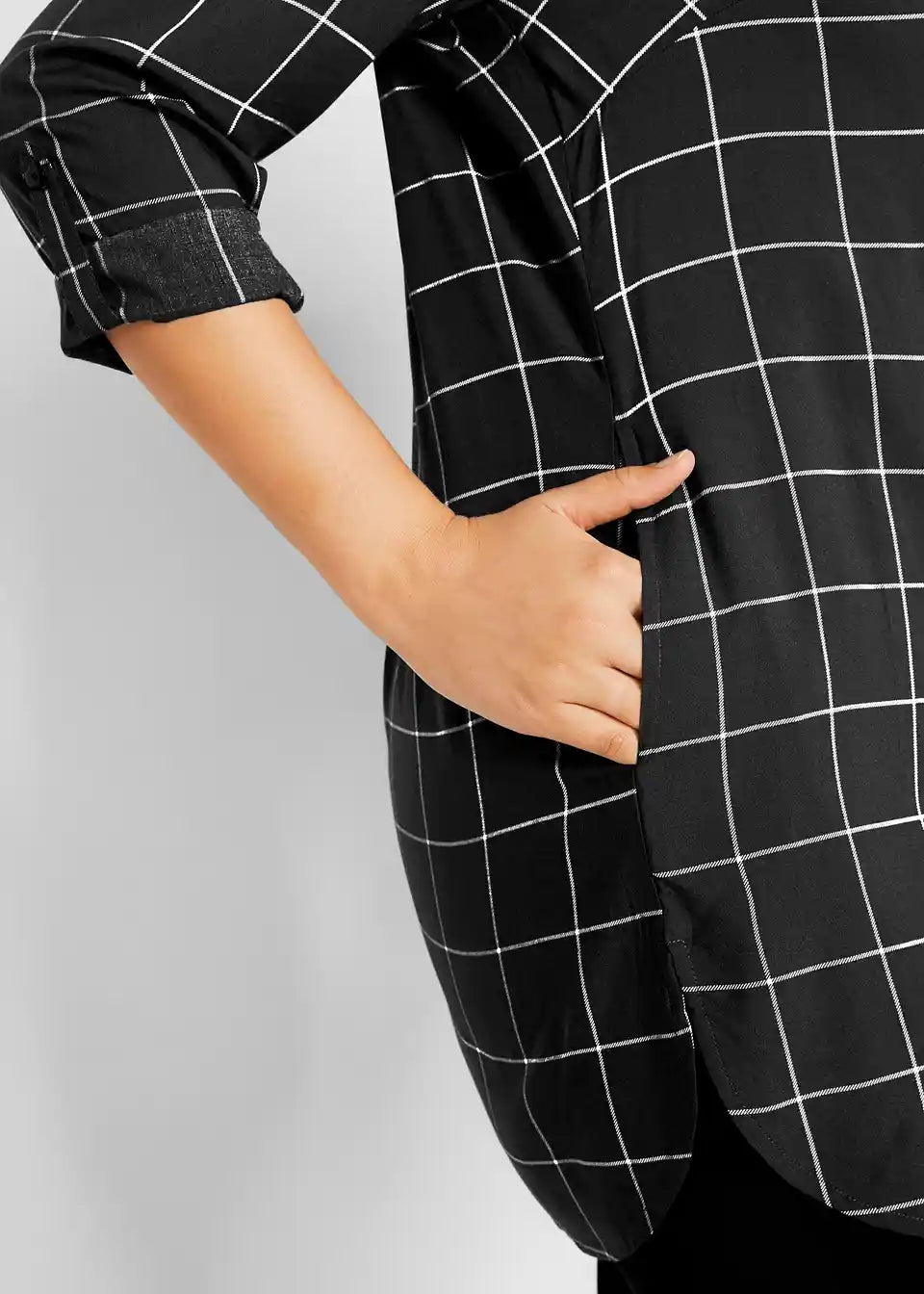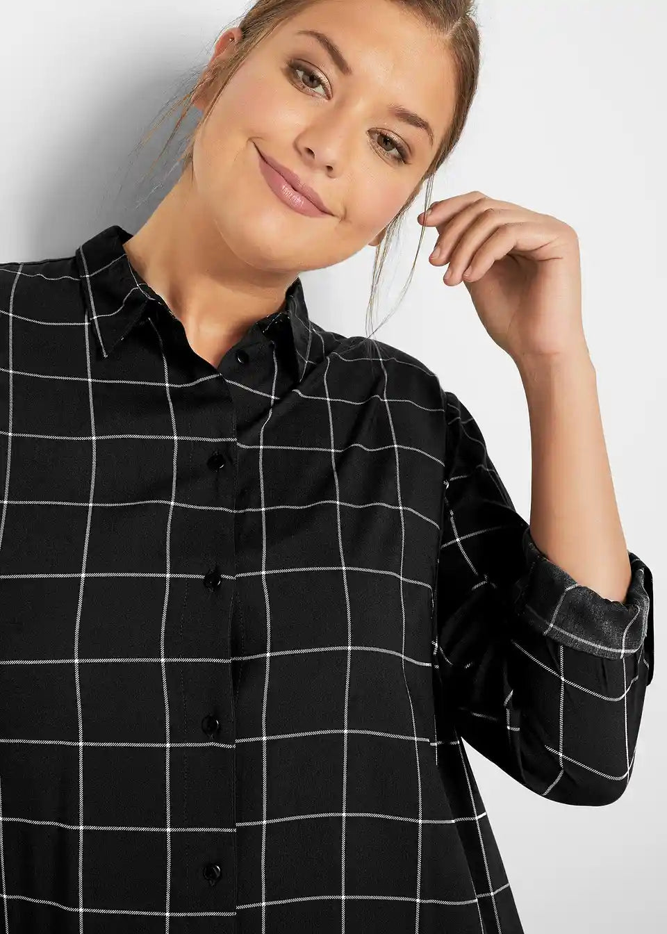 Karirana duga bluza s punom dugmadi laskava svakom tipu figure