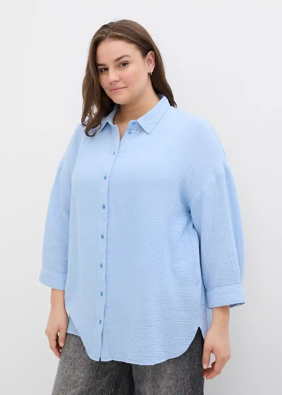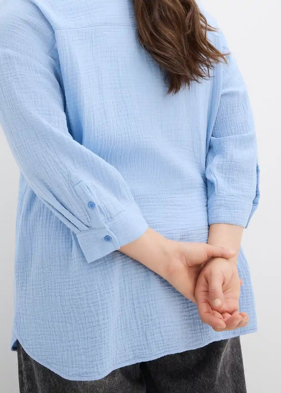 Duga oversized bluza od muslina s kopčanjem na dugmad