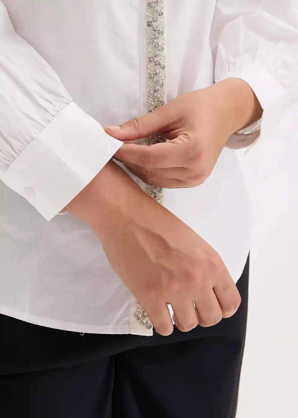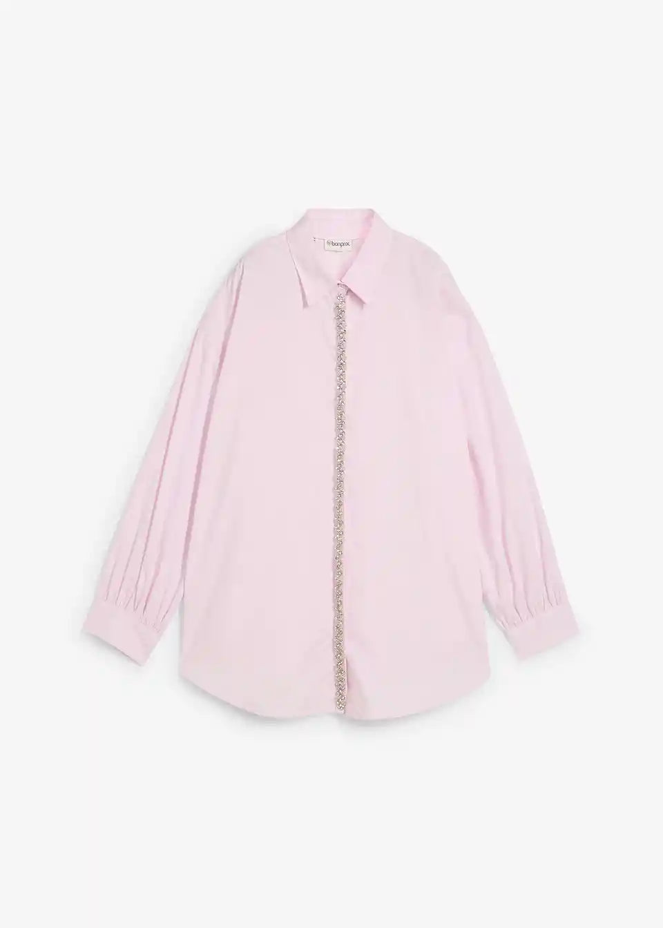 moderna košulja-bluza s dekorativnim strass ukrasom sprijeda na kopčanju s gumbima