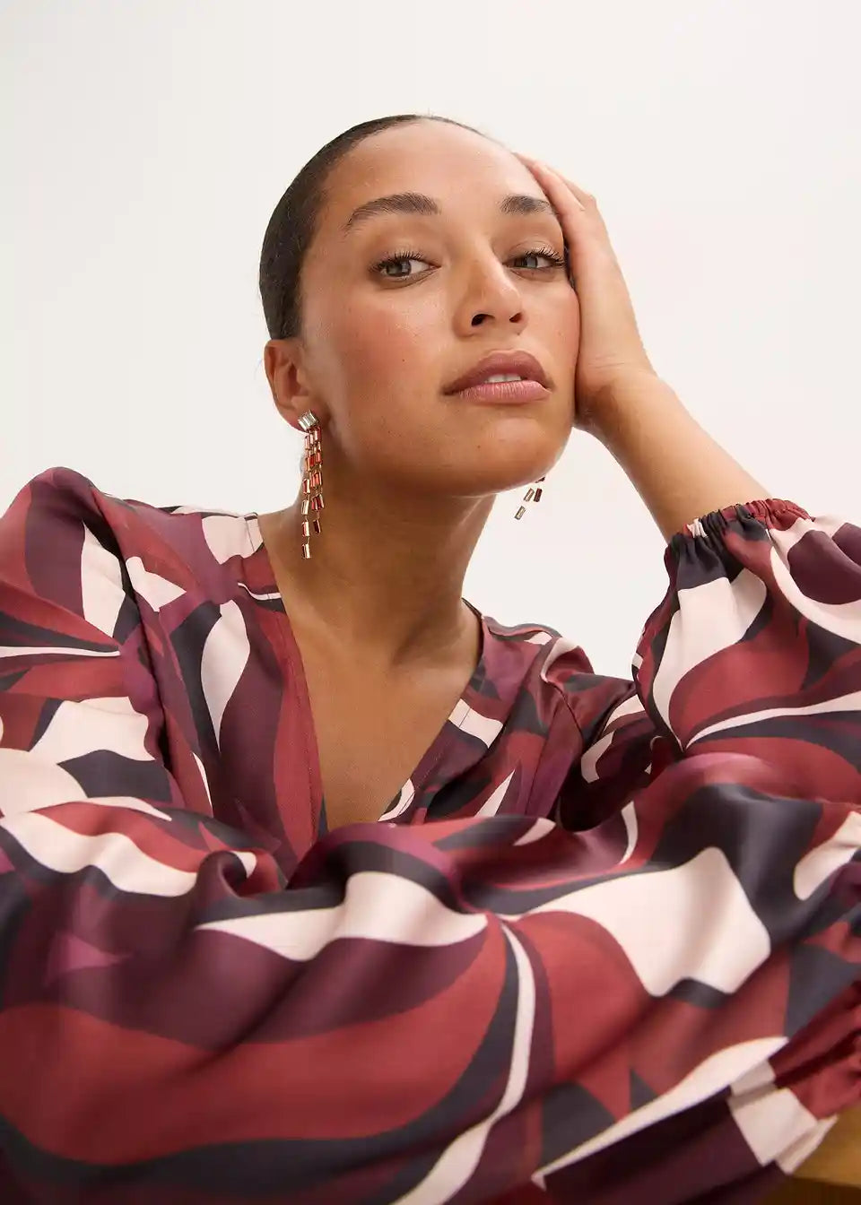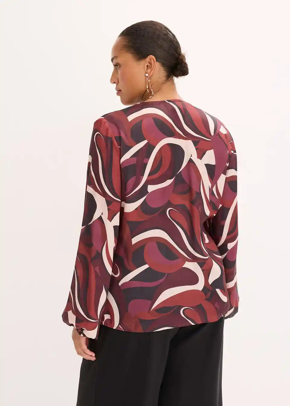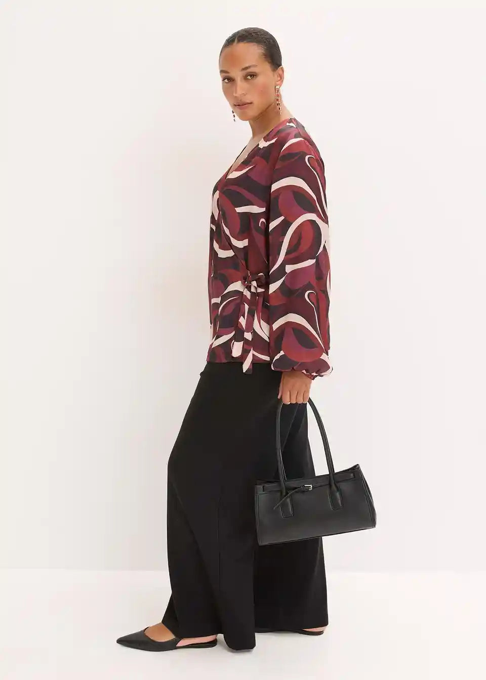Moderno printana omotana bluza od lepršavog satena s vezicom za vezanje iznutra i izvana