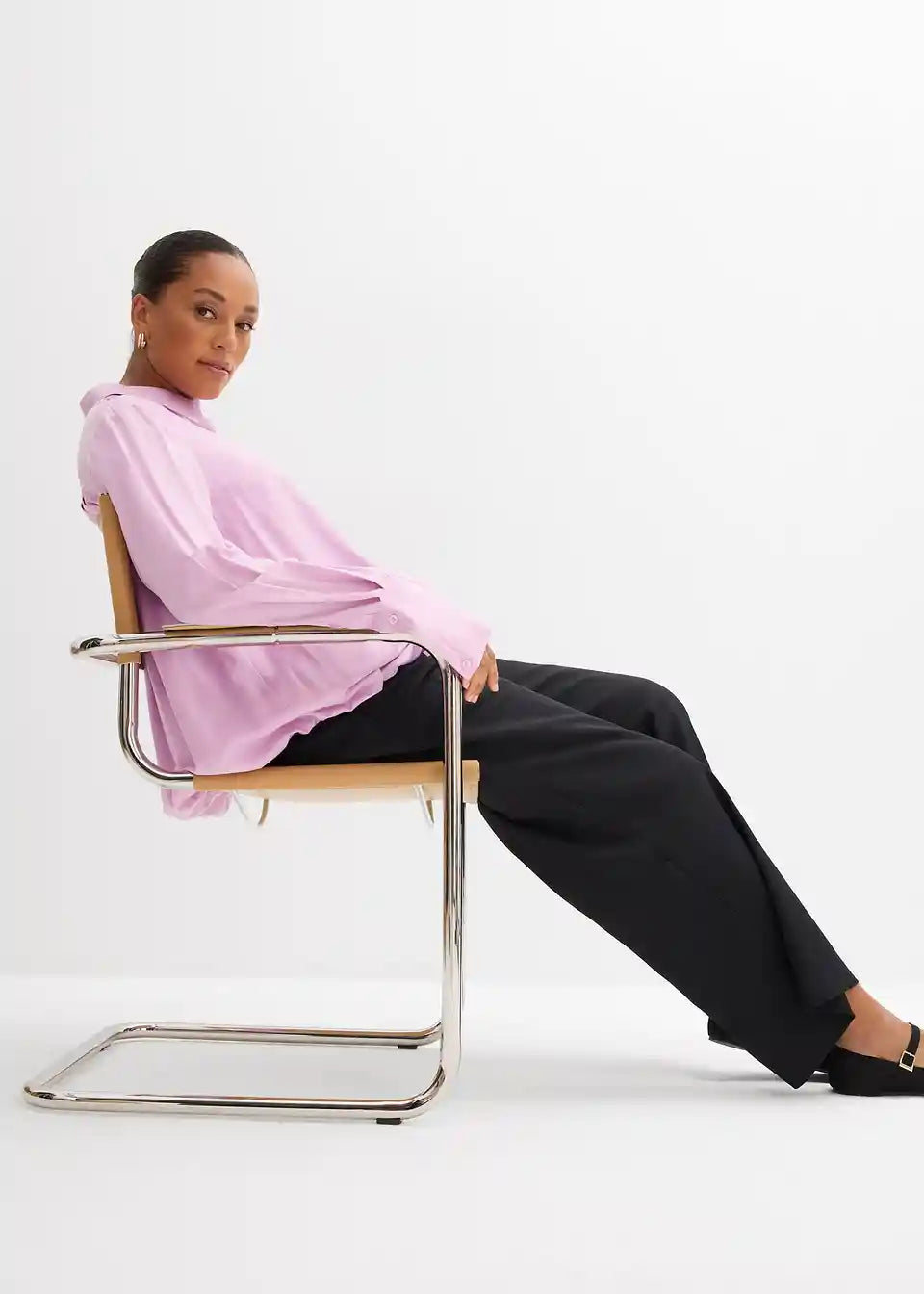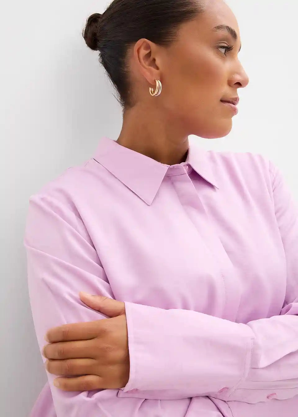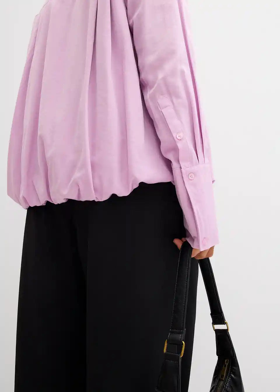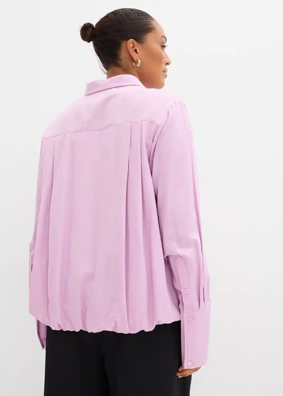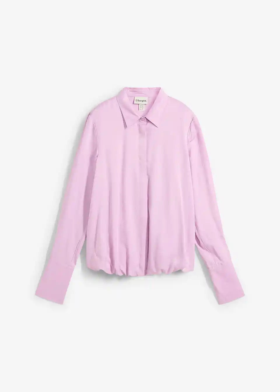 Dugorukavna bluza sa skrivenom kopčanjem na gumbe i balon-rubom. Balon-rub je zatvoren i ne može se otvoriti.