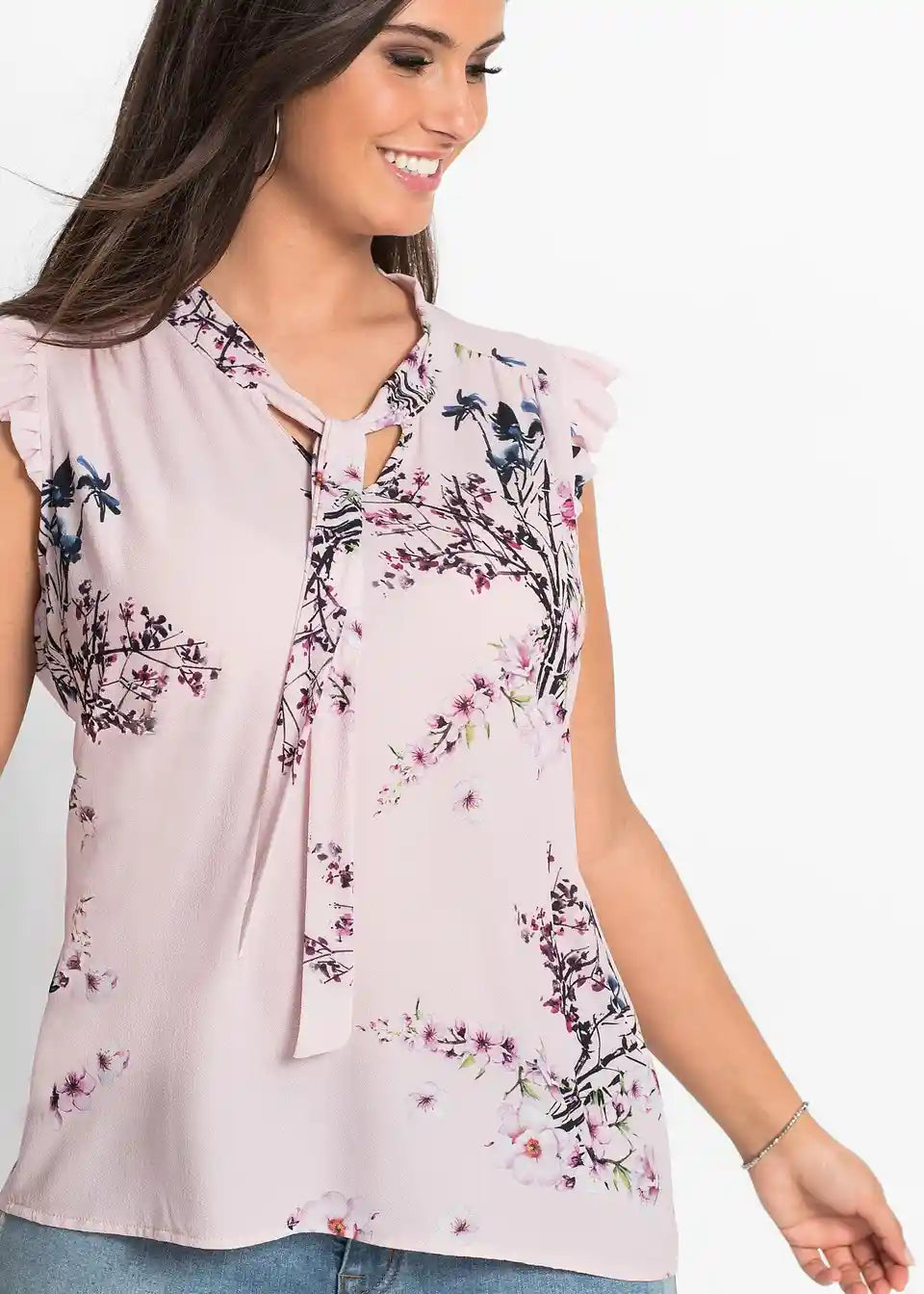 Prozračna poput topa i elegantna poput bluze, ova ženstvena top-bluza s mašnom i printom od BODYFLIRT-a privlači poglede. Elegantna mašna na izrezu omogućava varijaciju dizajna, bilo vezanjem u razigranu mašnu ili opuštenim čvorom. Romantičan dodir donose volani koji obrubljuju otvore za ruke i formiraju mini-rukave.