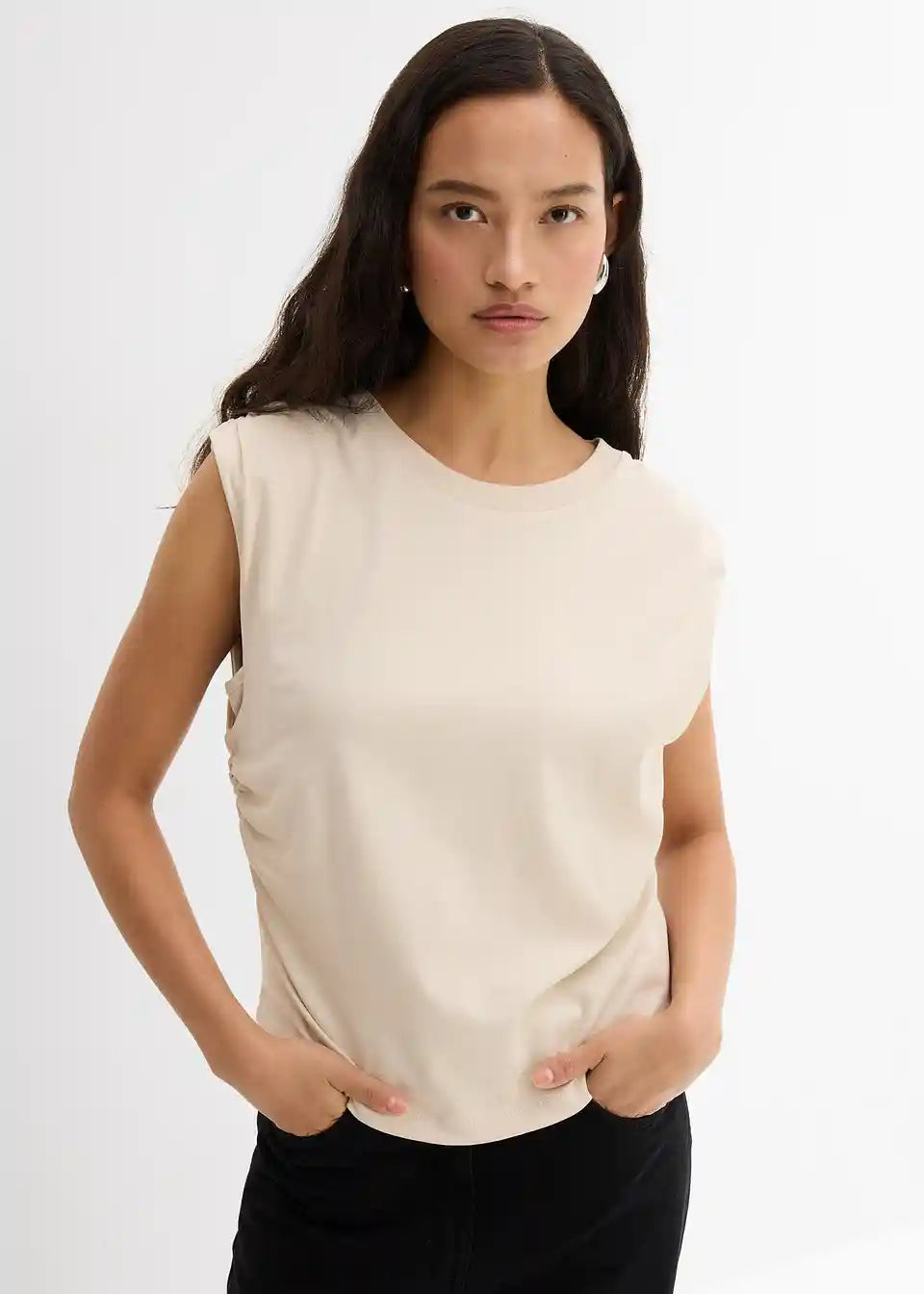 Kratki top s naborima na ramenima i struku, izrađen od čistog pamuka