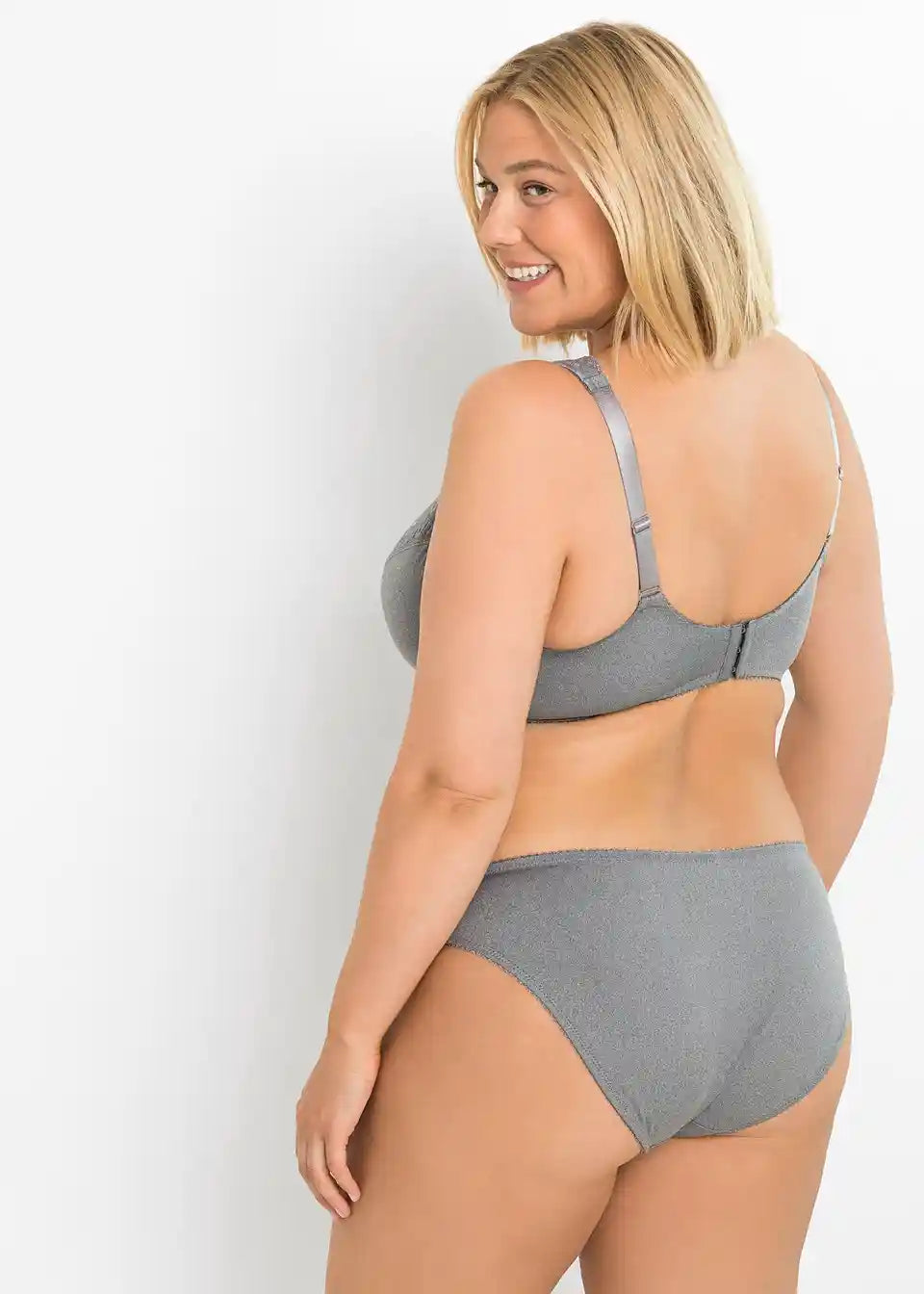 Materijal:siva melirana: 75% poliester (reciklirani), 25% elastan, podstava: siva melirana: 89% poliamid, 11% elastan, čipka: siva melirana: 90% poliamid, 10% elastan