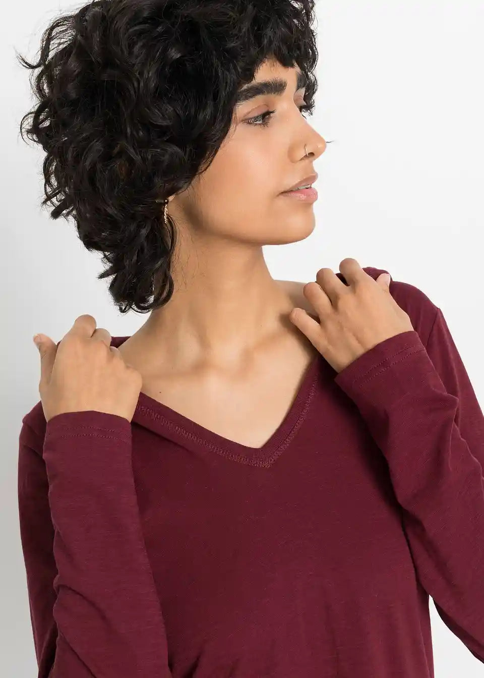 Dugi rukav, majica s kapuljačom i širokim V-izrezom od čiste pamuka