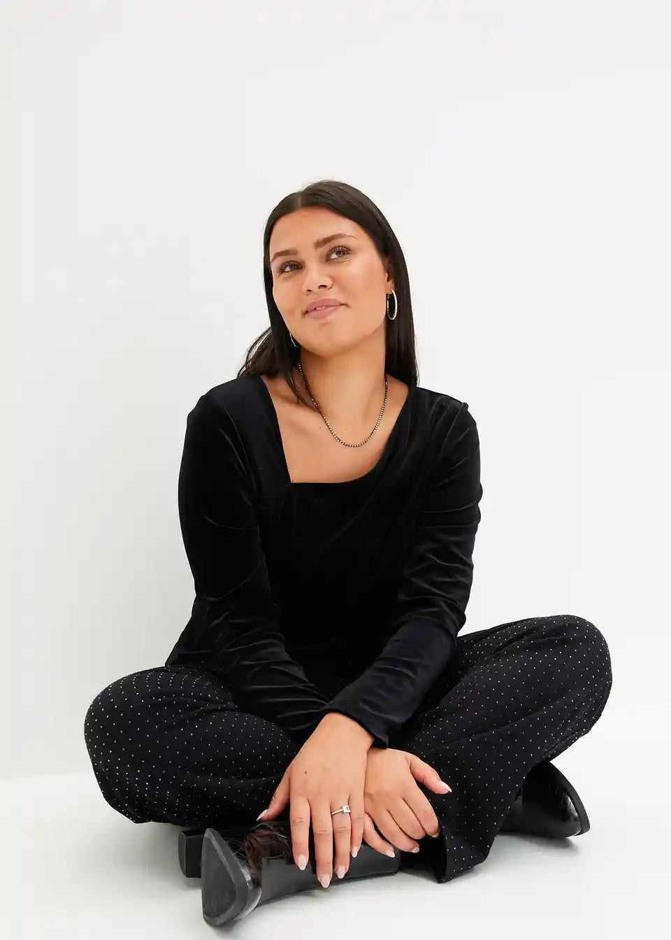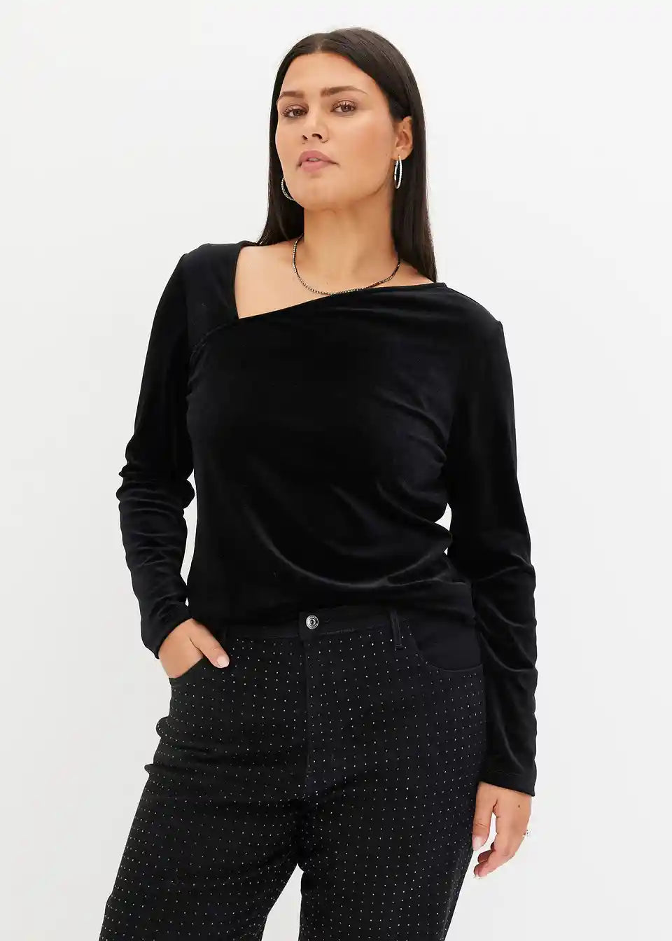 Majica s dugim rukavima od baršuna s asimetričnim izrezom