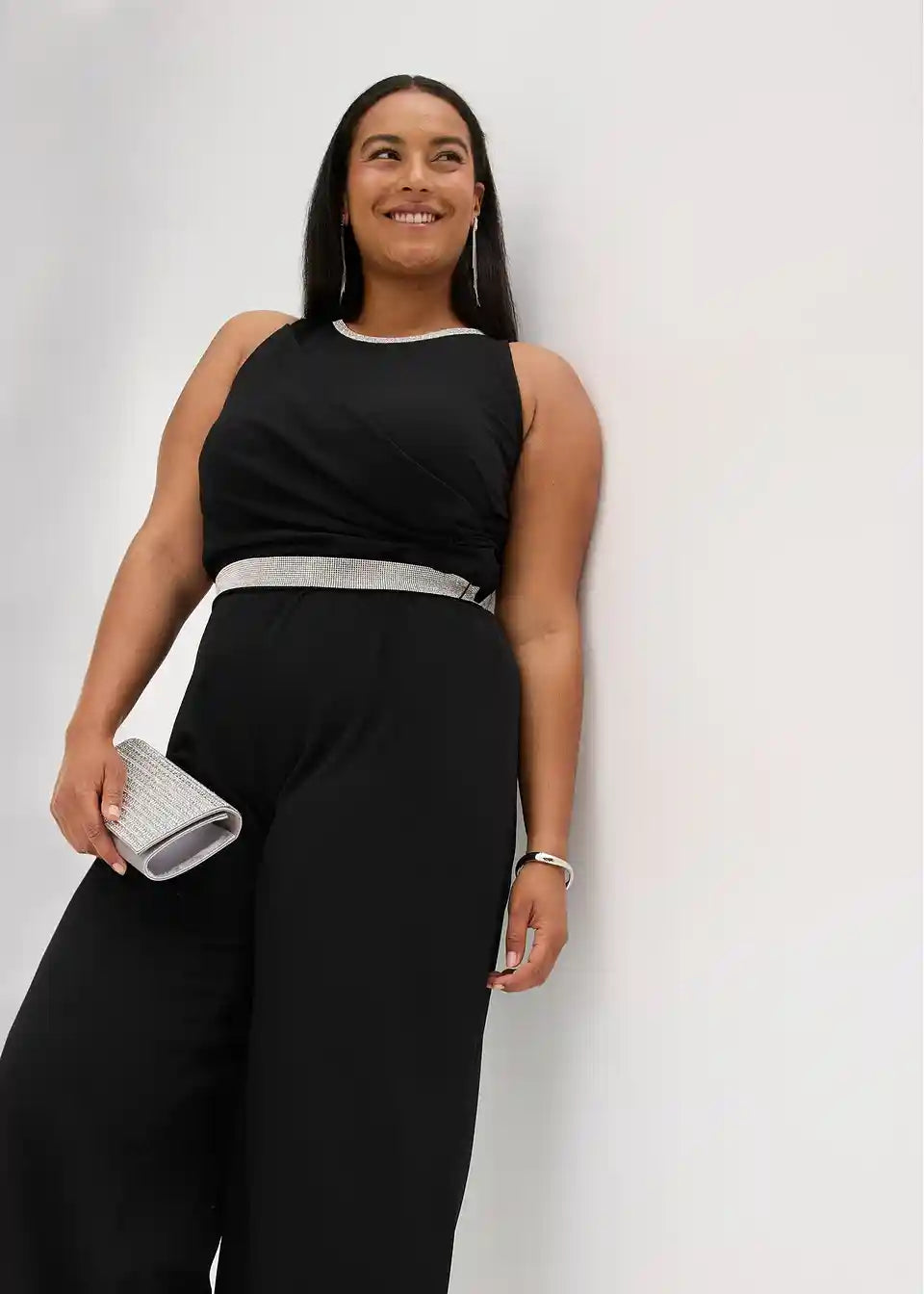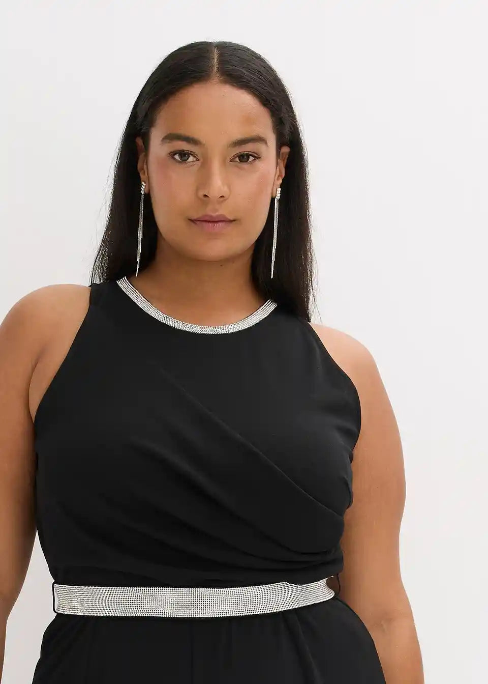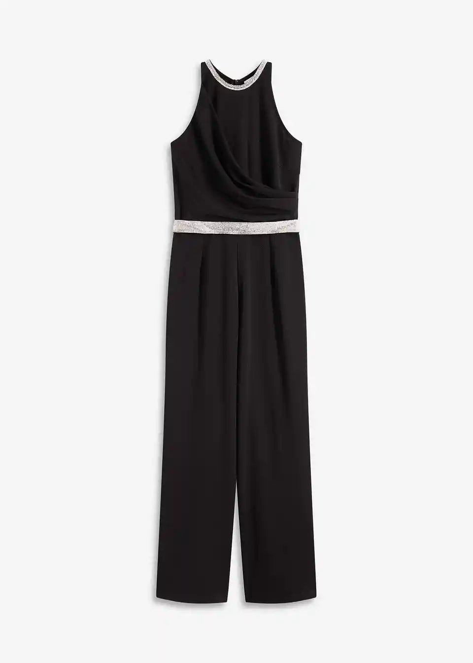 Moderan i ženstven: kombinezon od strukturiranog krepa sa ukrasnim kamenčićima na izrezu i u struku