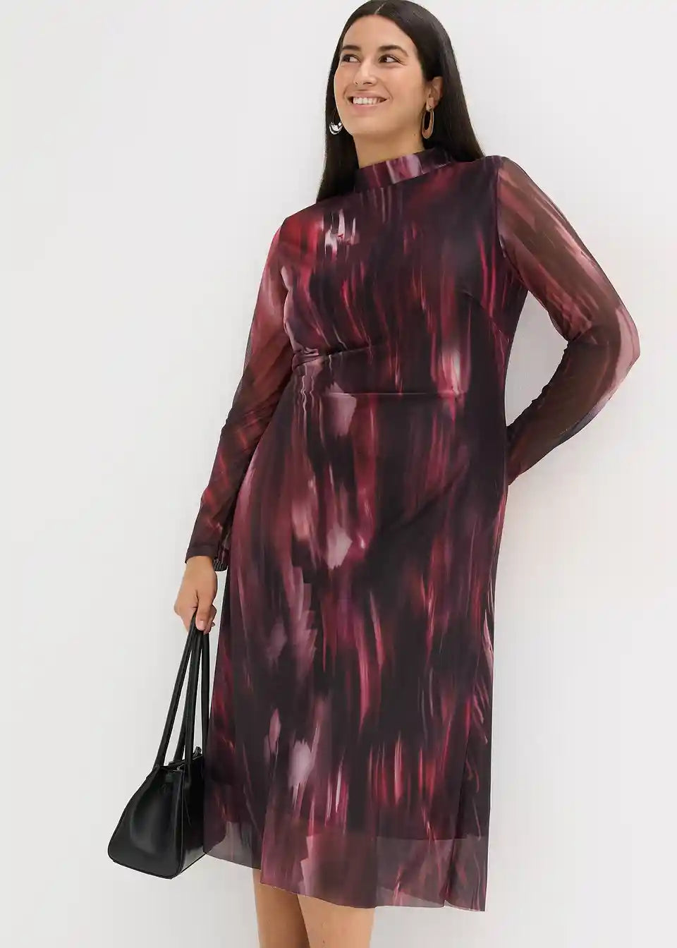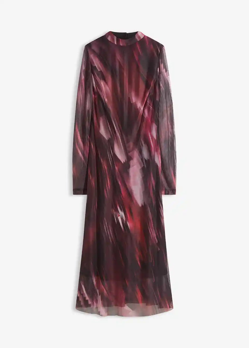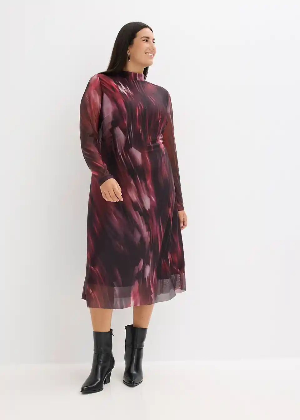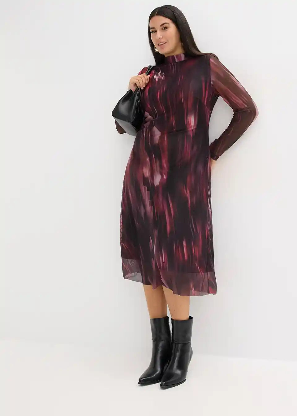 moderno tiskana haljina od jerseya midi dužine sa stajaćim ovratnikom od mekanog MESH materijala