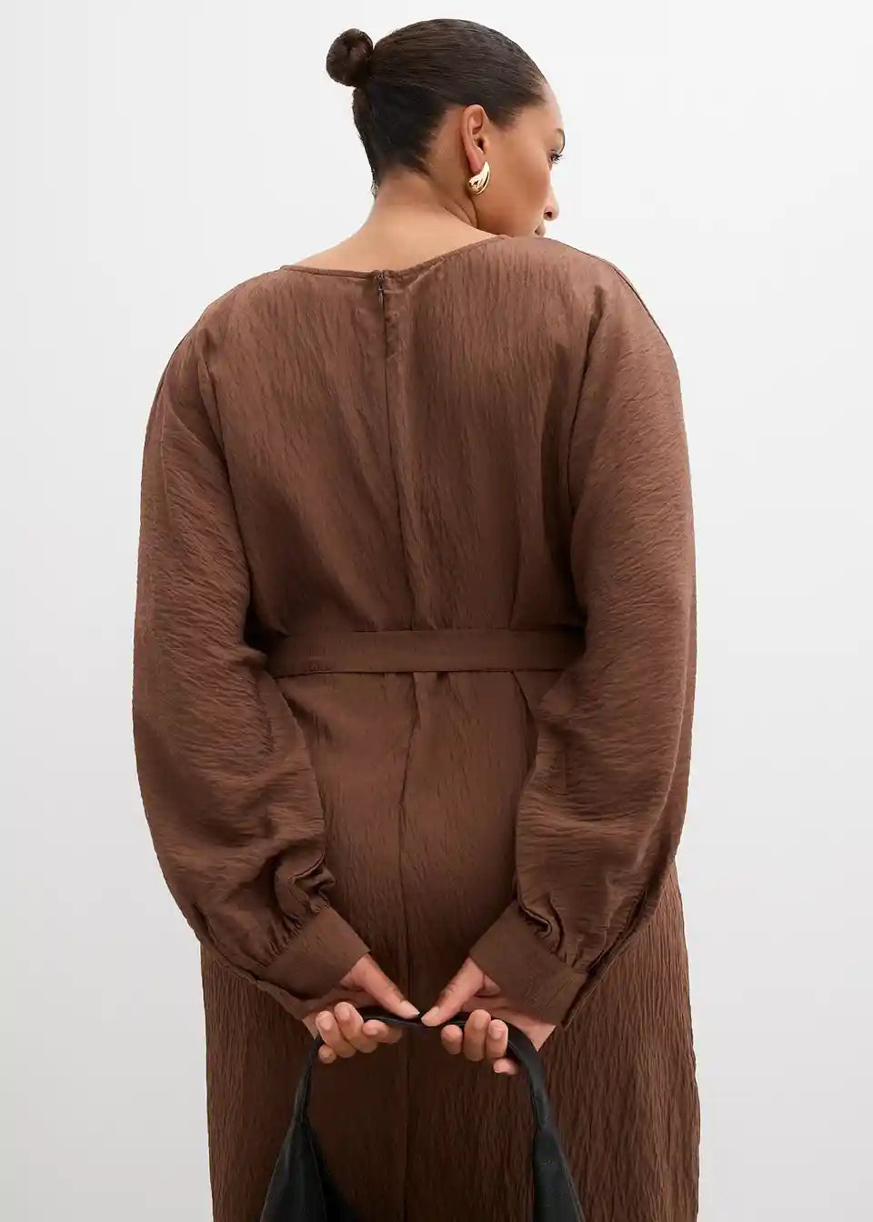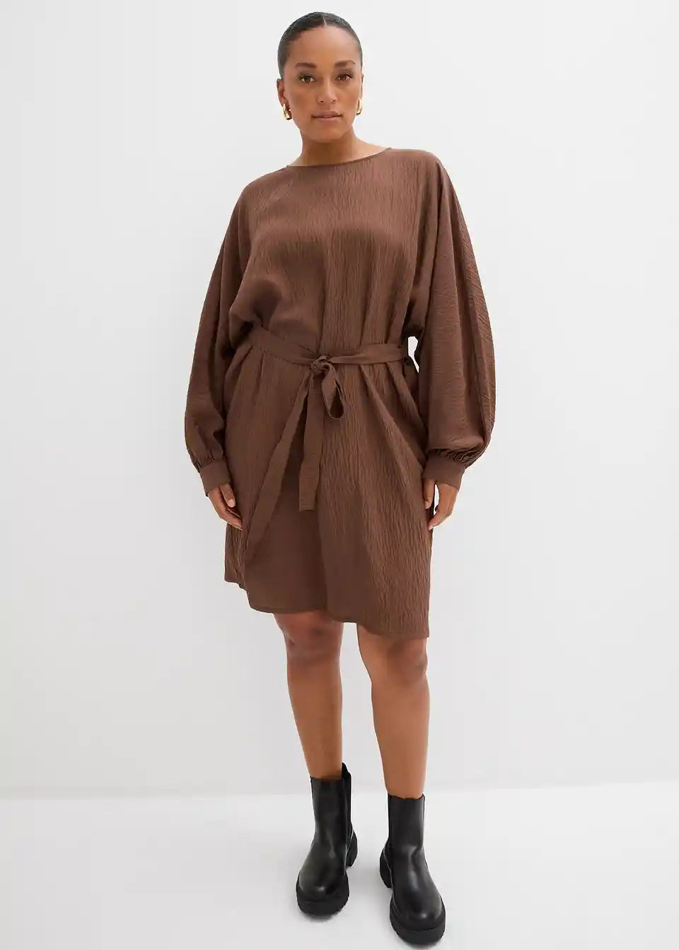 Haljina od strukturiranog materijala s remenom u struku i patentnim zatvaračem straga