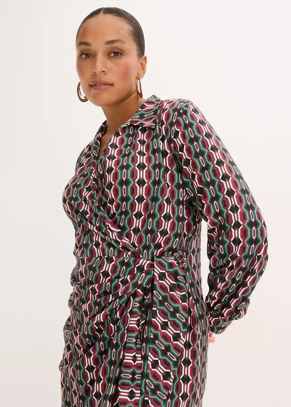 moderna preklopljena haljina od strukturiranog Jerseya s dubokim V-izrezom sprijeda