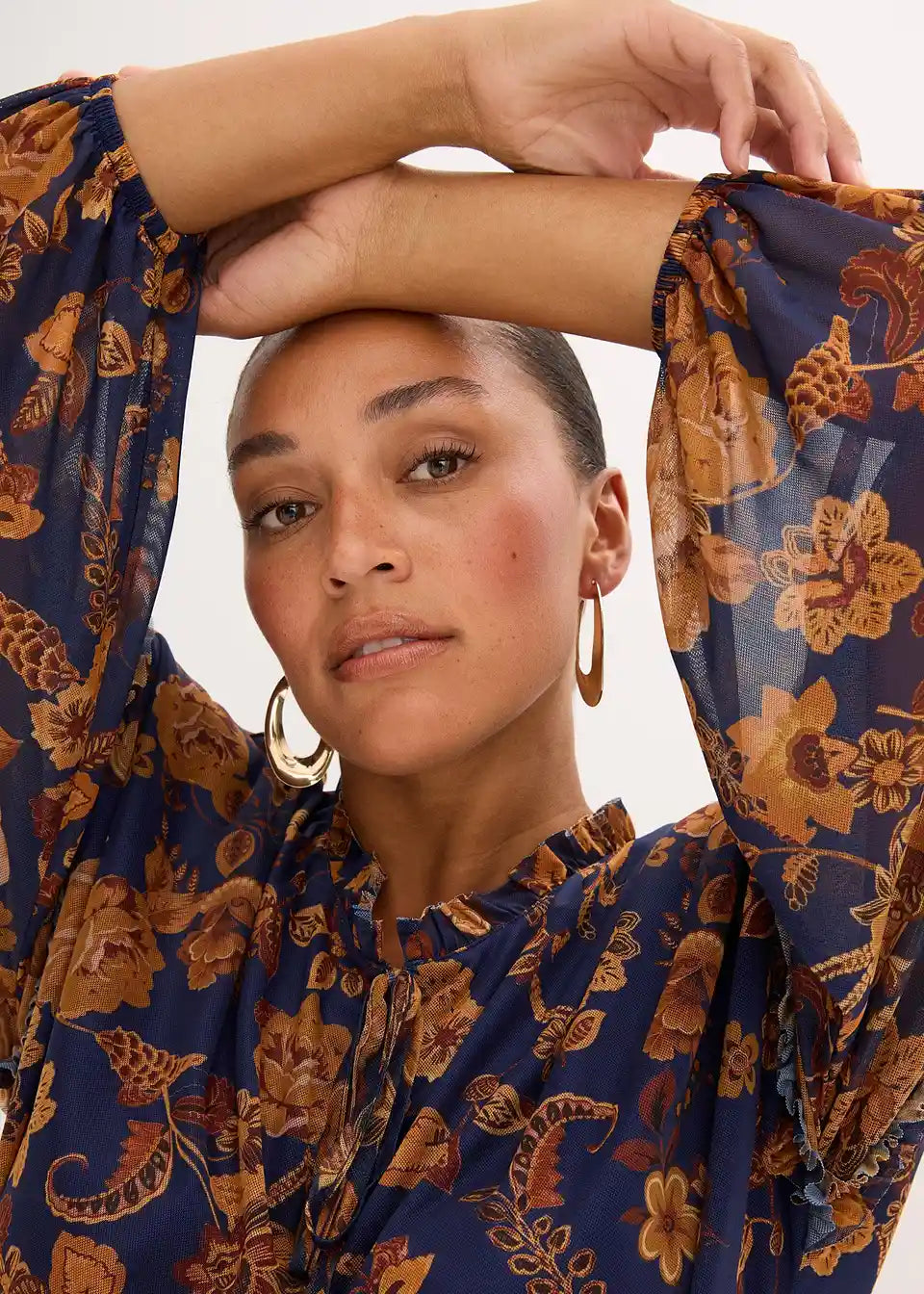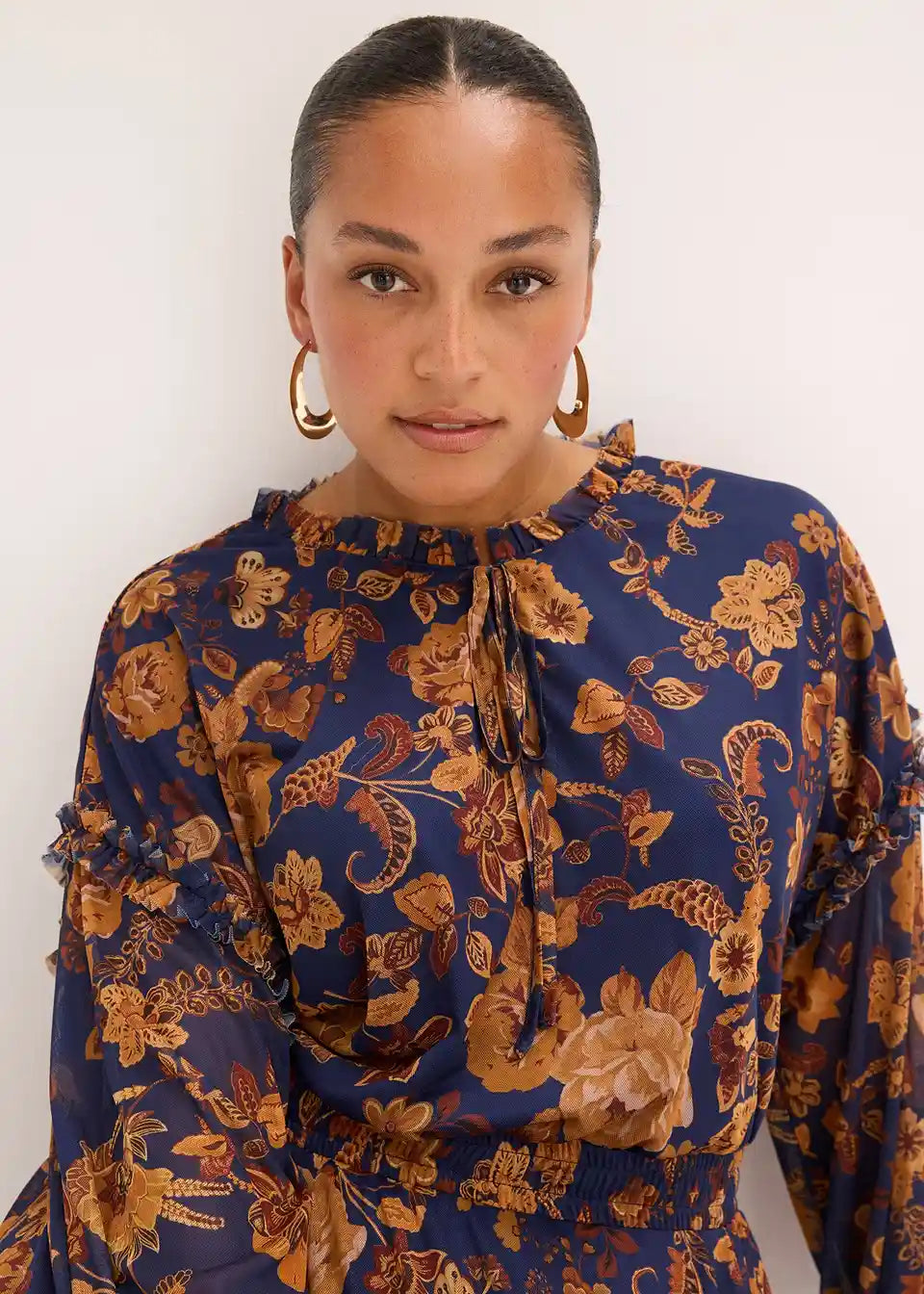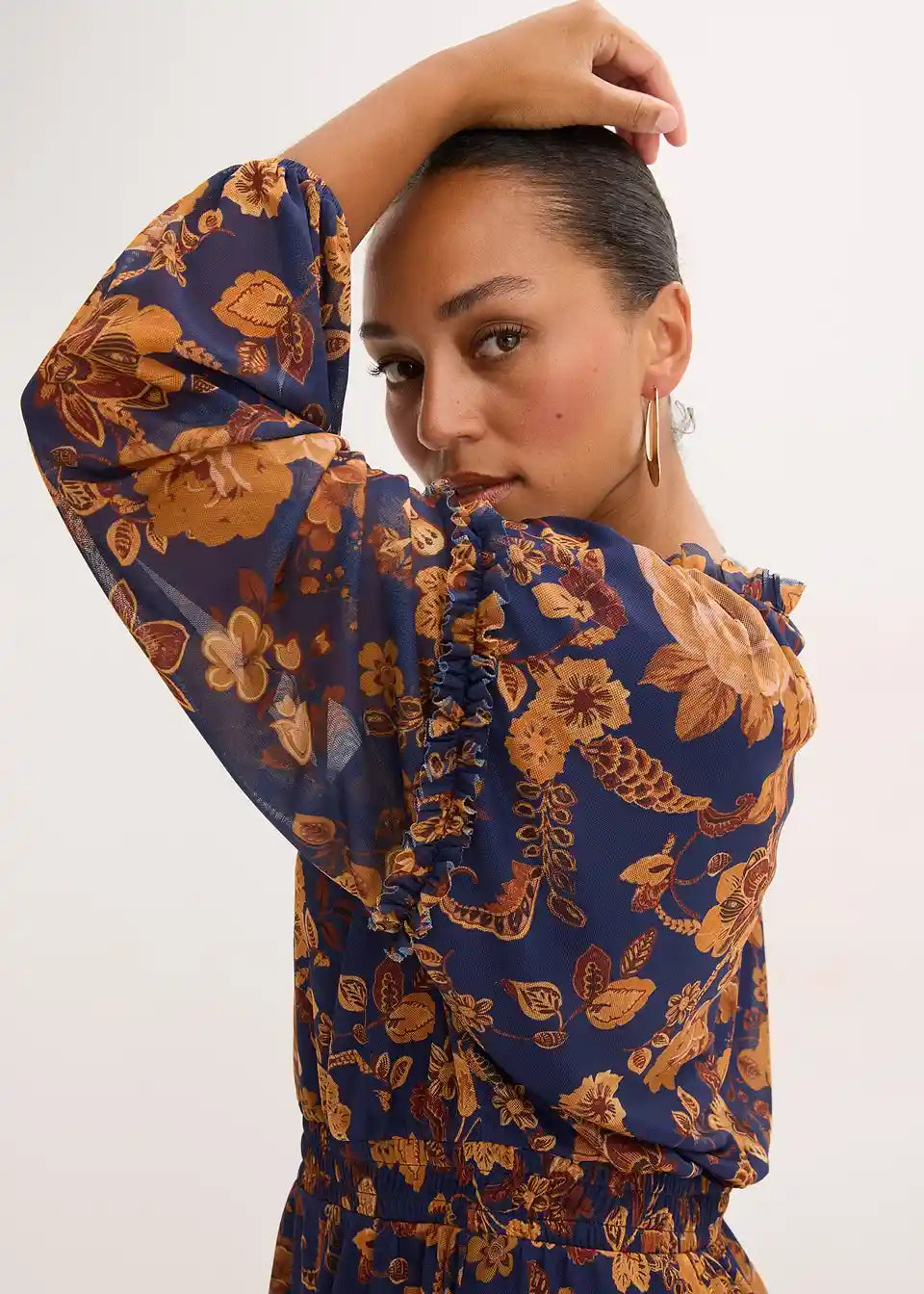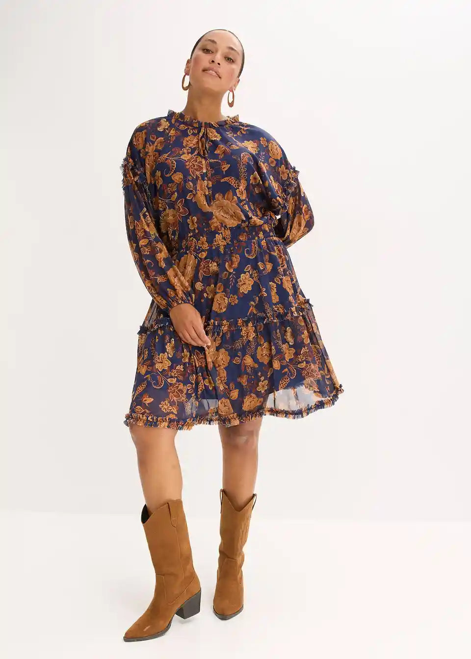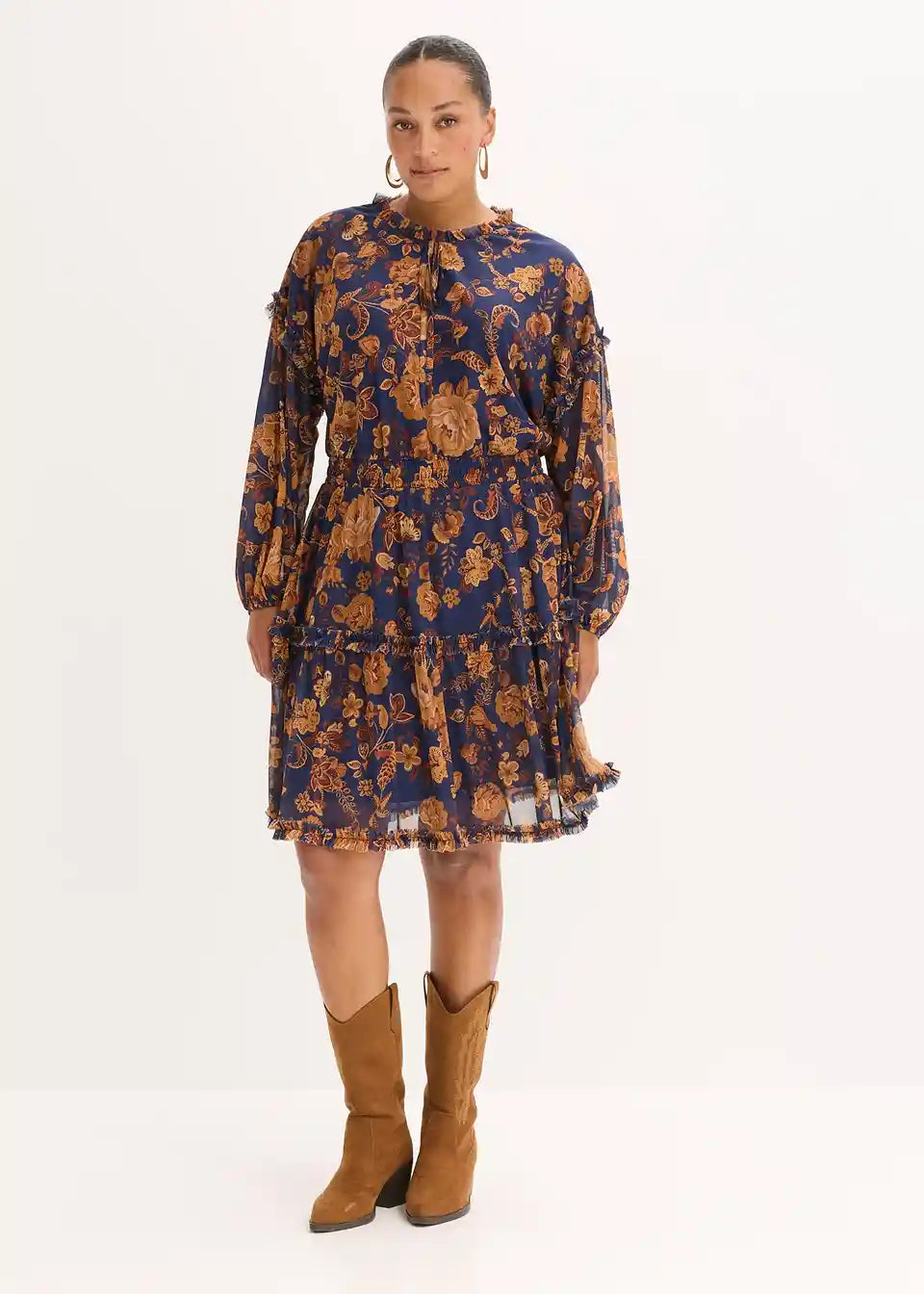 kratka tunika-haljina od mekanog Mesh materijala s malim detaljima od volana