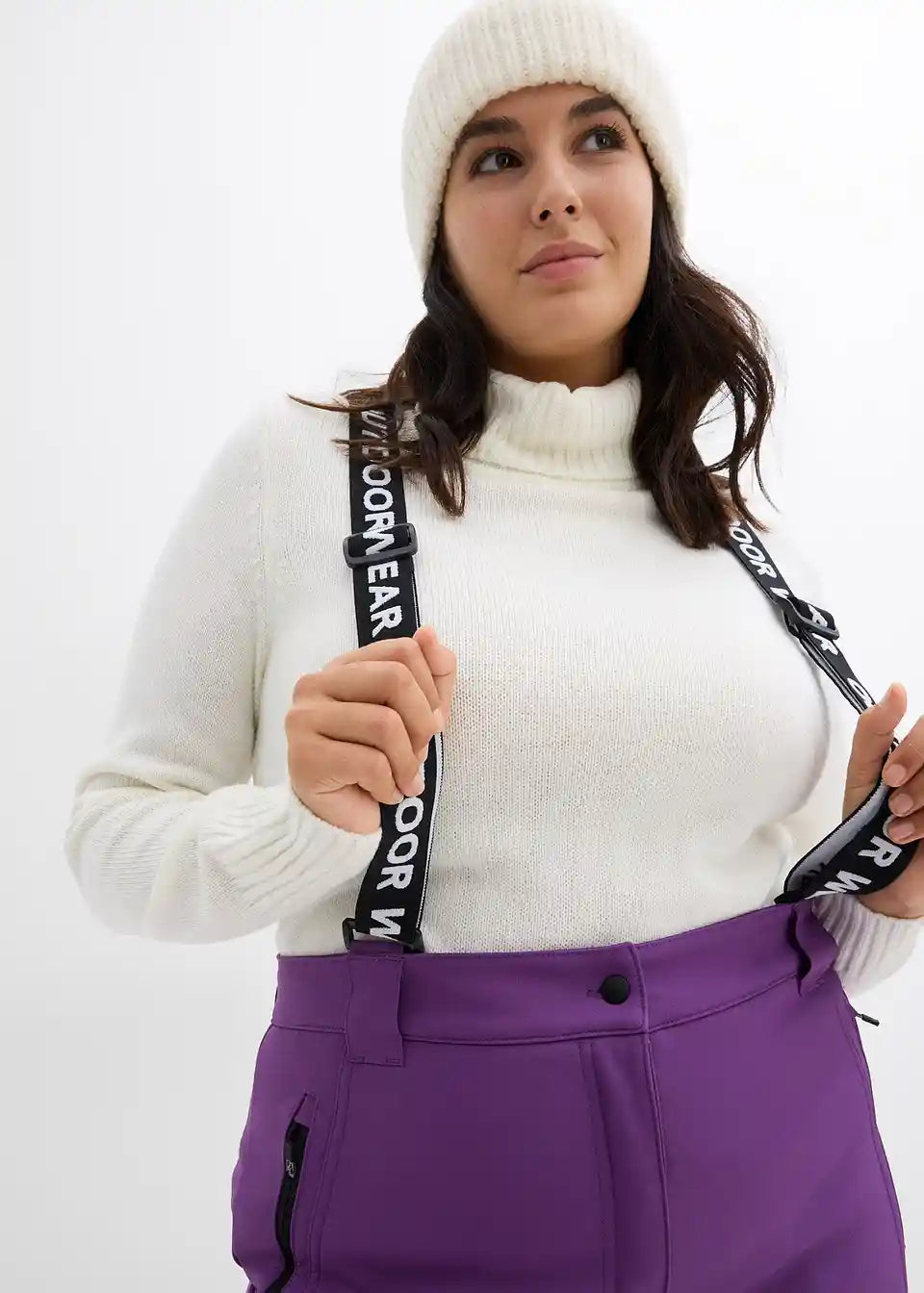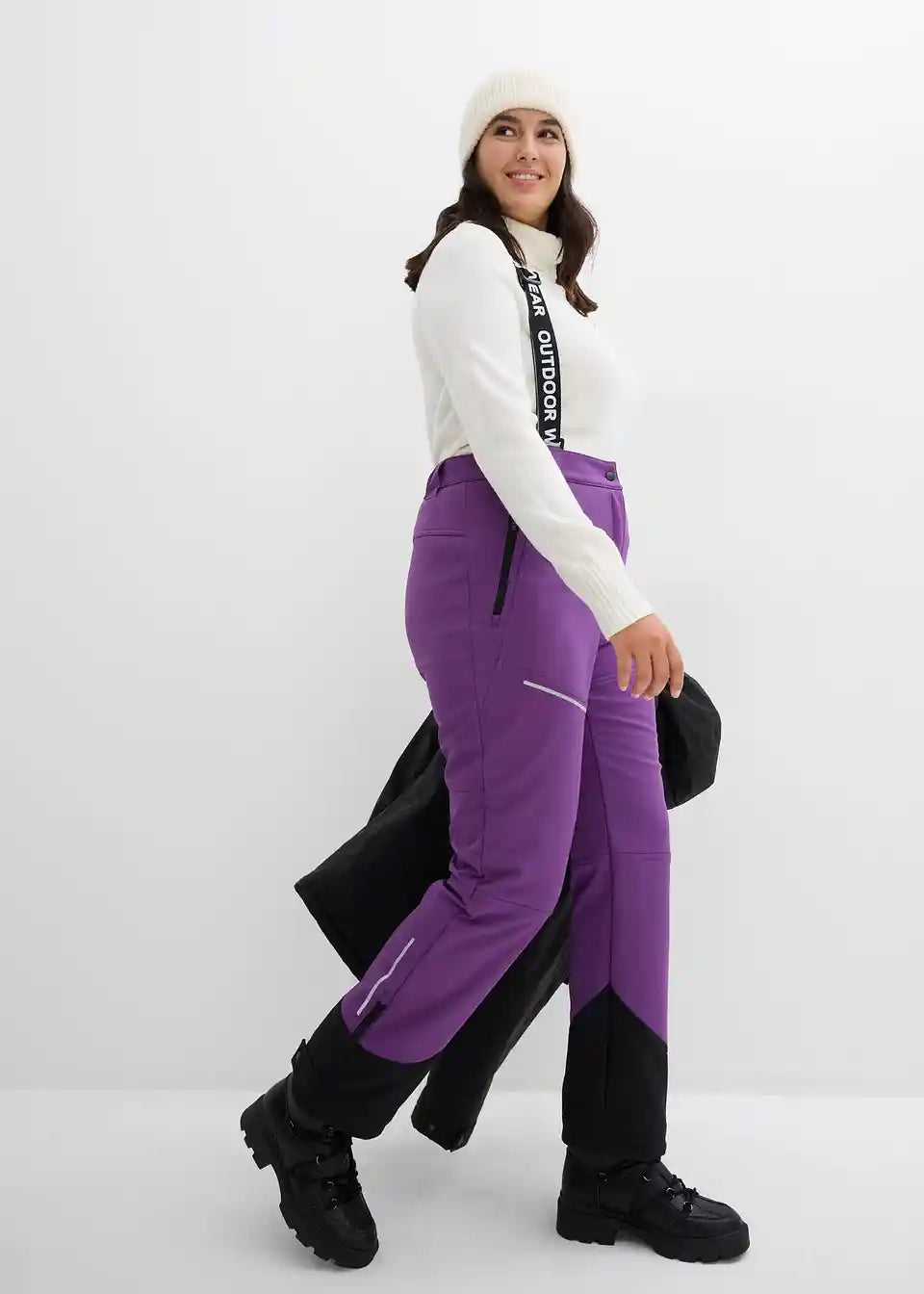 Softshell-hlače s odvojivim naramenicama, mekano brušena unutrašnjost, skijaške hlače, Straight Fit