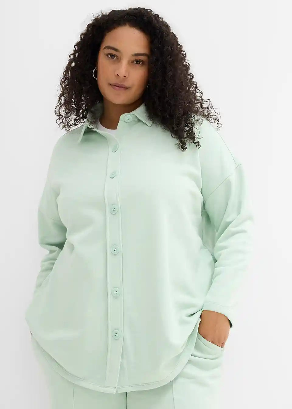 Dugačka sweat jakna s kopčanjem i ušivenim džepovima