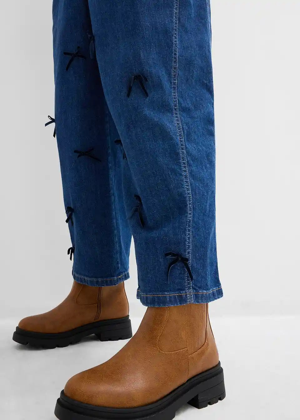 Barrel-Jeans High Waist, Bequembund s mašnama