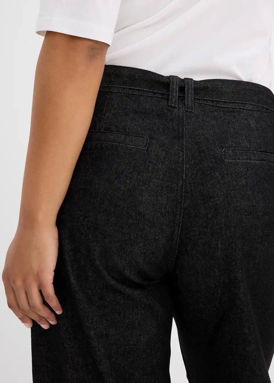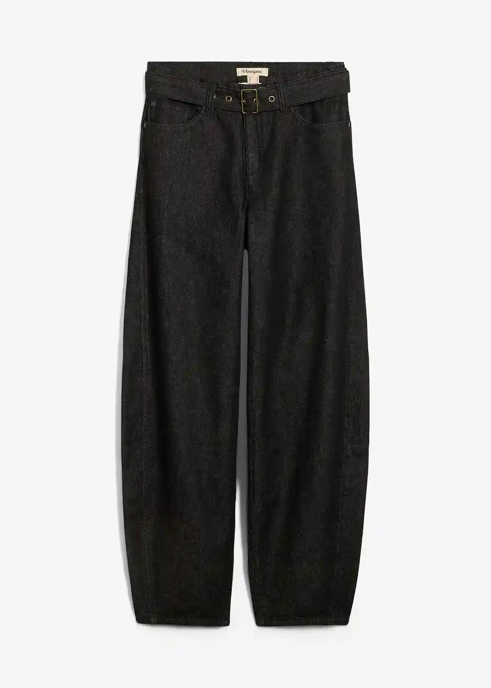 5-džepne traperice izrađene od čvrstog pamučnog denima, koji je na početku nešto ukočeniji, ali nošenjem postaje mekši i opušteniji. Ležeran kroj s voluminoznom, zaobljenom nogavicom od bokova do bedara i suženim krojem prema dolje. Dugačka dužina tako da na stopalu nastaje lagani stacking-efekt. Ove traperice zahvaljujući washed finishu imaju moderan used-efekt. Lagano otpuštanje boje tijekom nošenja i pranja karakteristično je za ovaj model.