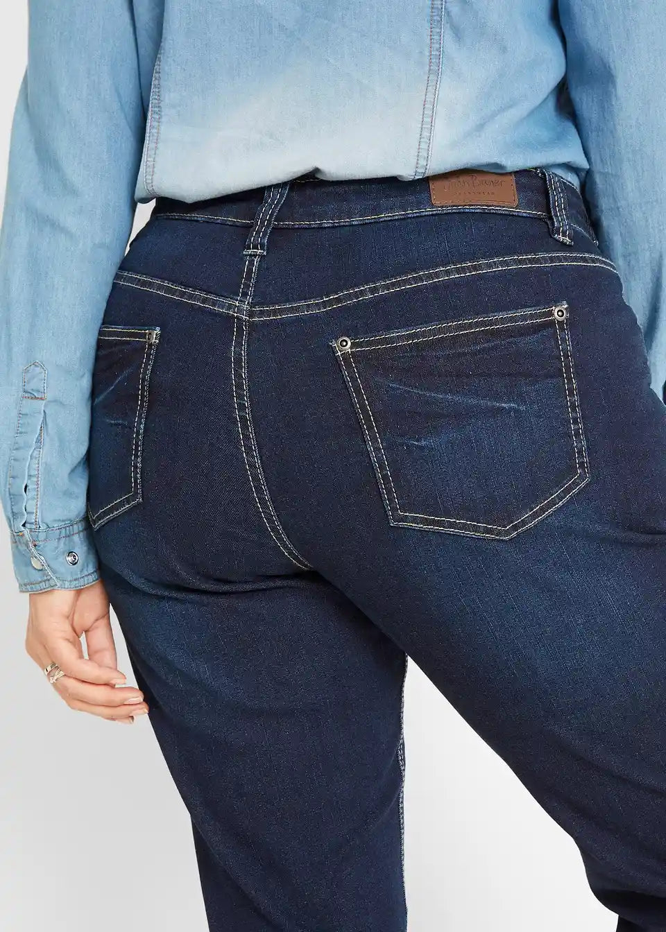 Multi-Stretch traperice Boyfriend su modni hit ove sezone. Ovaj model od Johna Banera uključuje sve detalje koji čine ovaj stil tako posebnim: Nogavice se sužavaju prema dnu (Tapered leg). Ležeran izgled naglašen je s 5-džepnim stilom, gumbom i patentnim zatvaračem na pojasu. Ove traperice u regularnoj veličini imaju srednje visok struk i omče za remen.