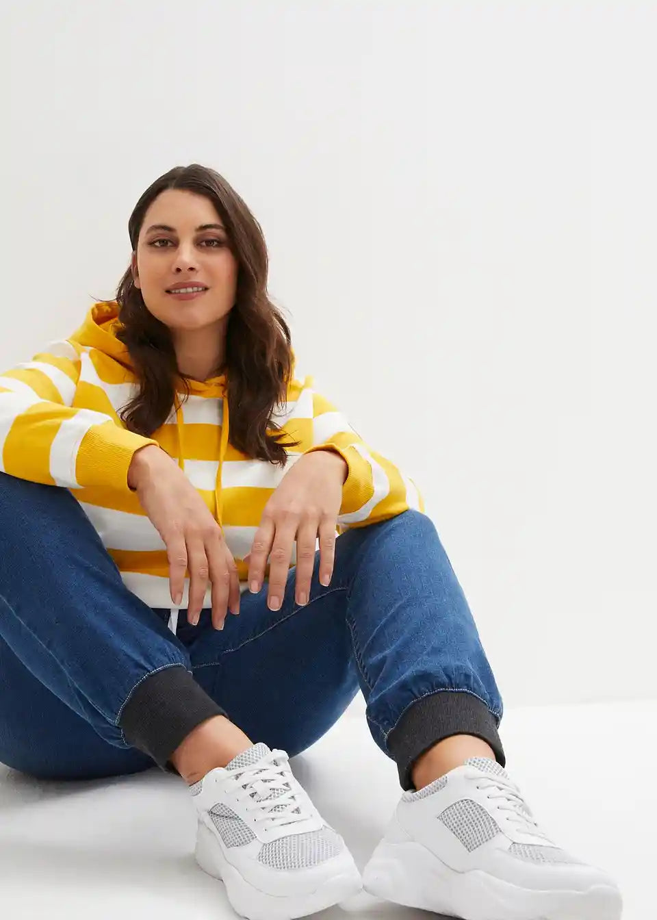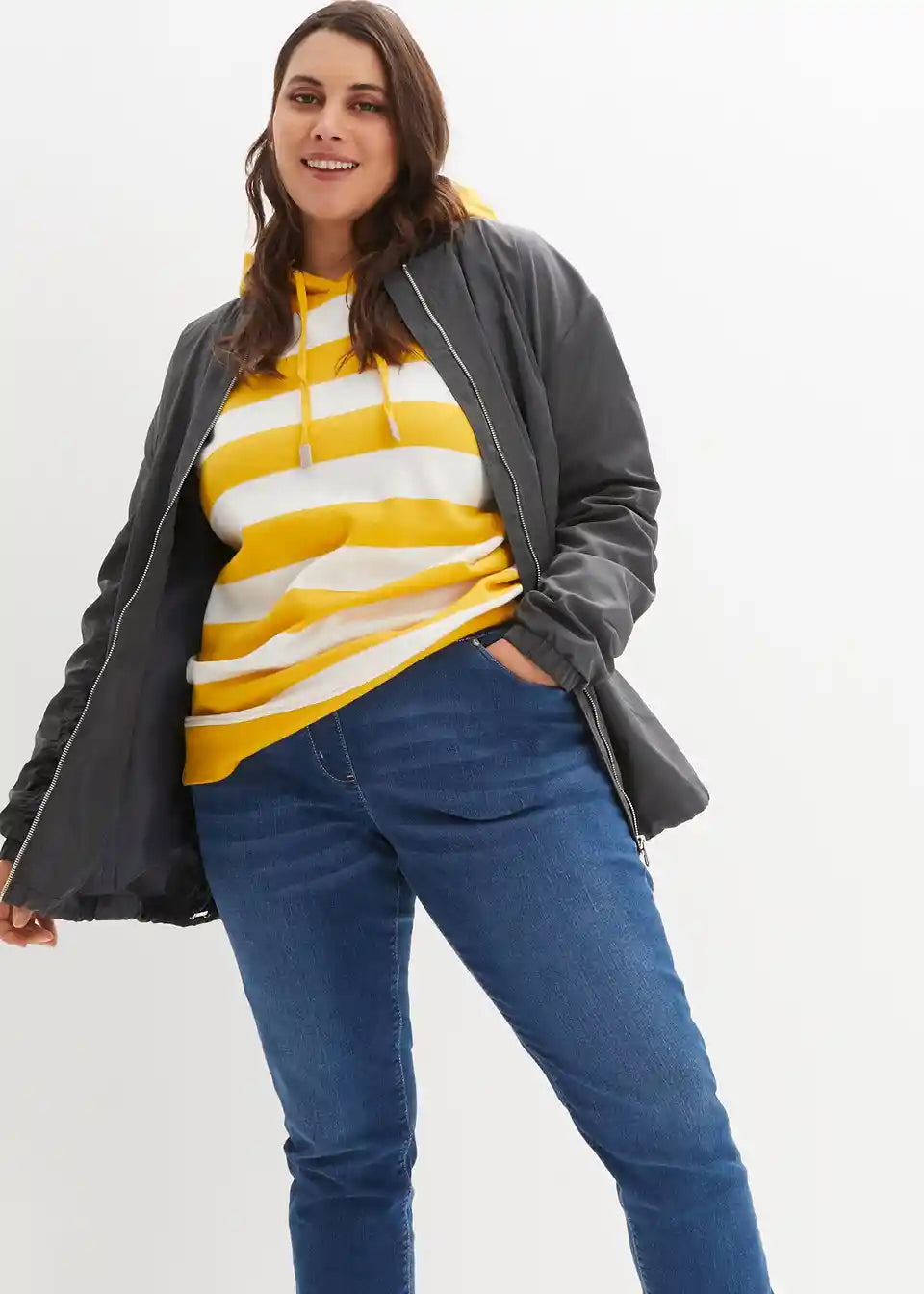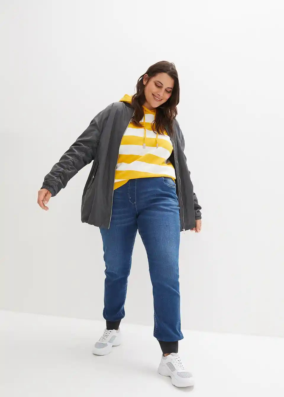 Nevjerojatno udobne i izrazito opuštene, ove sportske Boyfriend Jeans s pojasom su pravi izbor. Straight-Leg traperice brenda bpc imaju meke rebraste rubove na šavovima. Dodatno, elastan u materijalu osigurava izvrsno prianjanje i izuzetno ugodan osjećaj nošenja. Pojas na struku može se prilagoditi tankim vezicama.