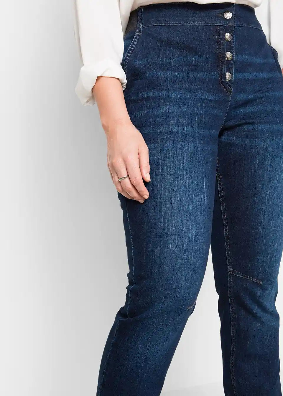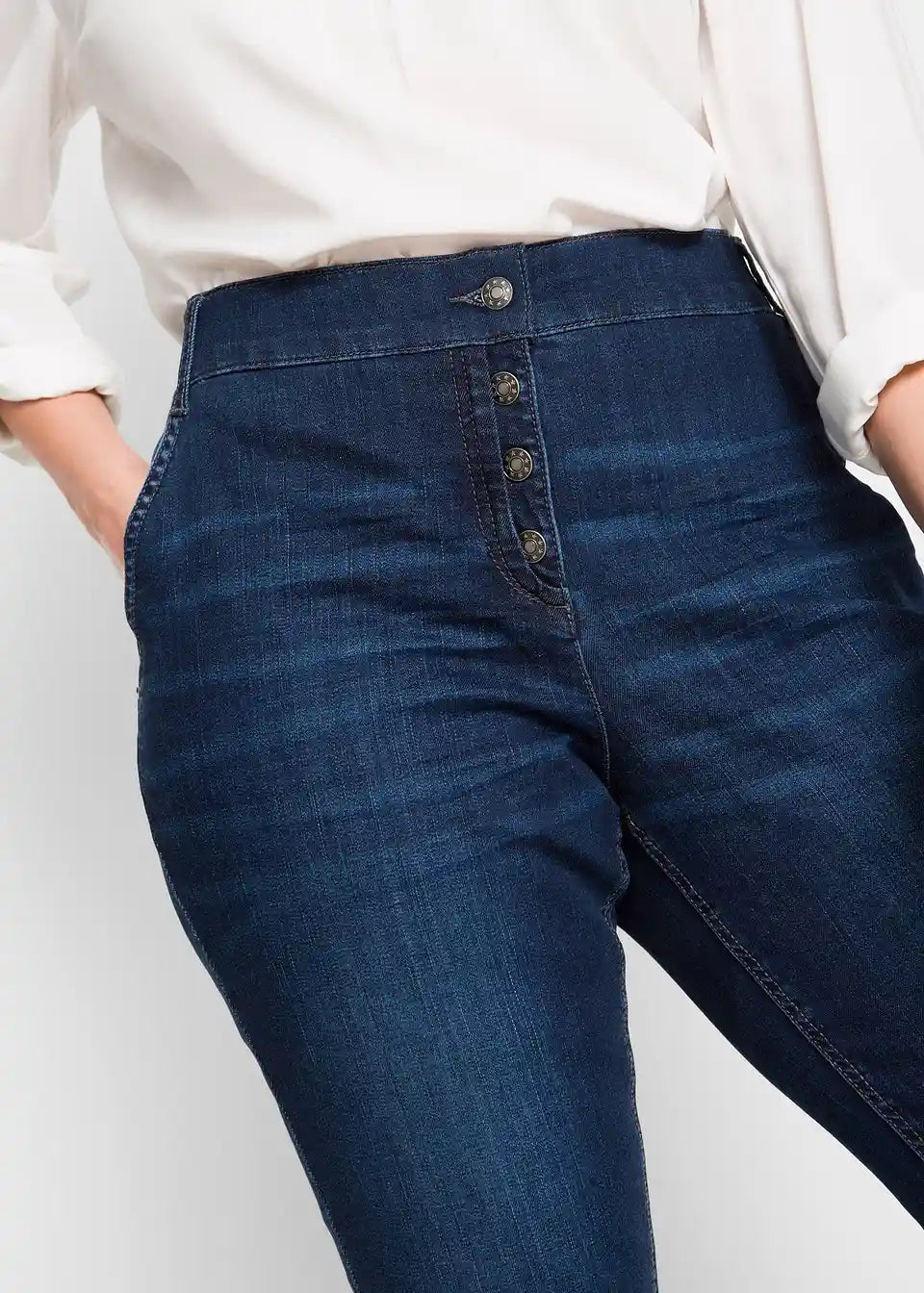 Ležerna stretch traperica s vidljivim nizom gumba nudi mnogo udobnosti