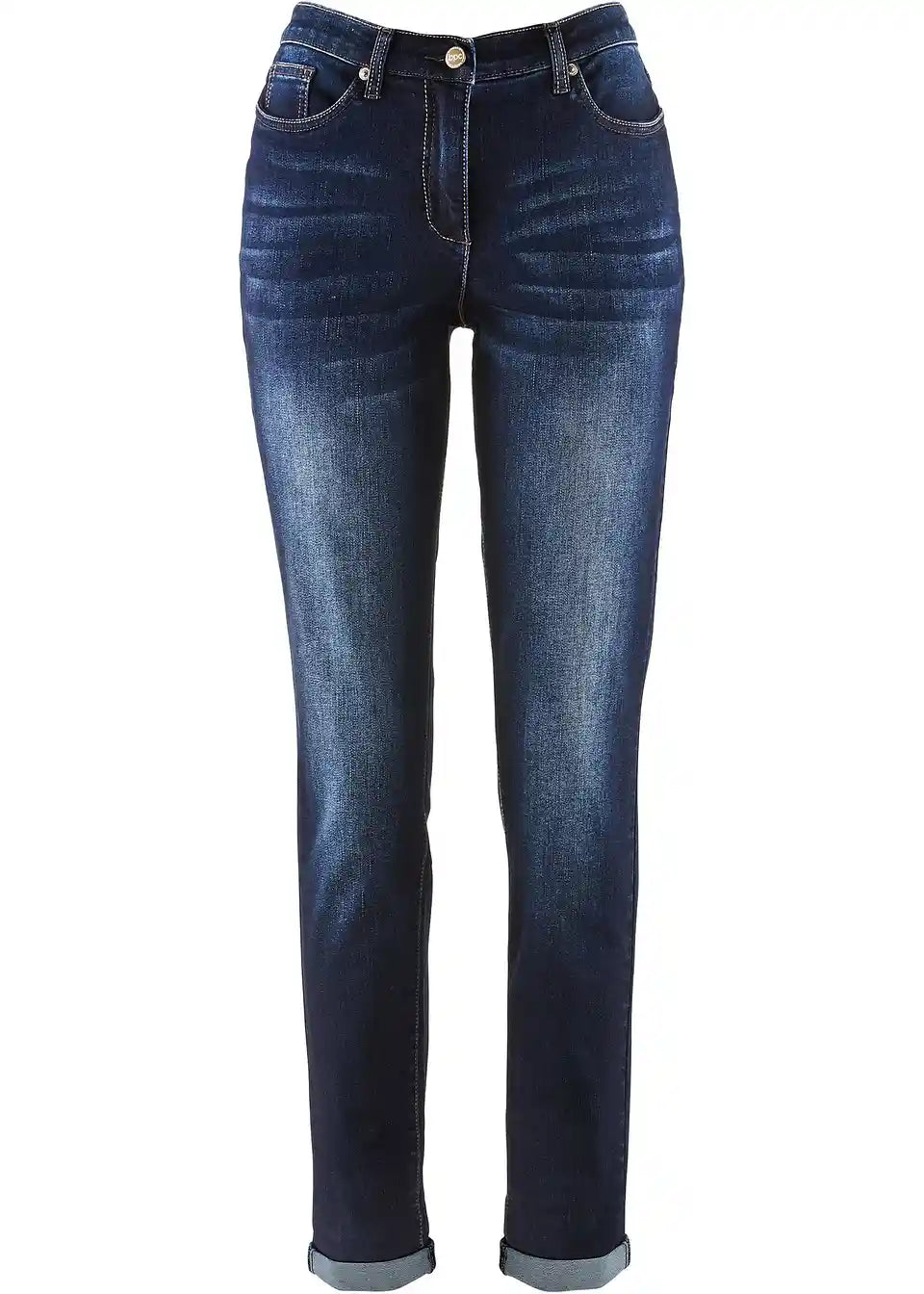 Ove ležerne traperice iz aktualne kolekcije bpc posebno impresioniraju udobnošću nošenja. Širokog su kroja i imaju djelomični elastični pojas te povisen struk. Više džepova i diskretno pranje naglašavaju njihov moderan izgled. Praktične traperice mogu se podvrnuti na nogavicama te zakopčati gumbom i zatvaračem.