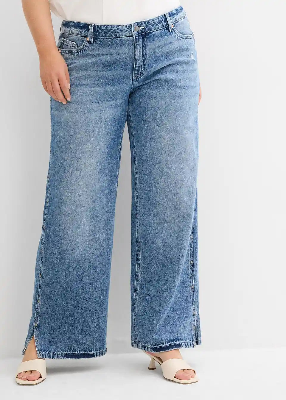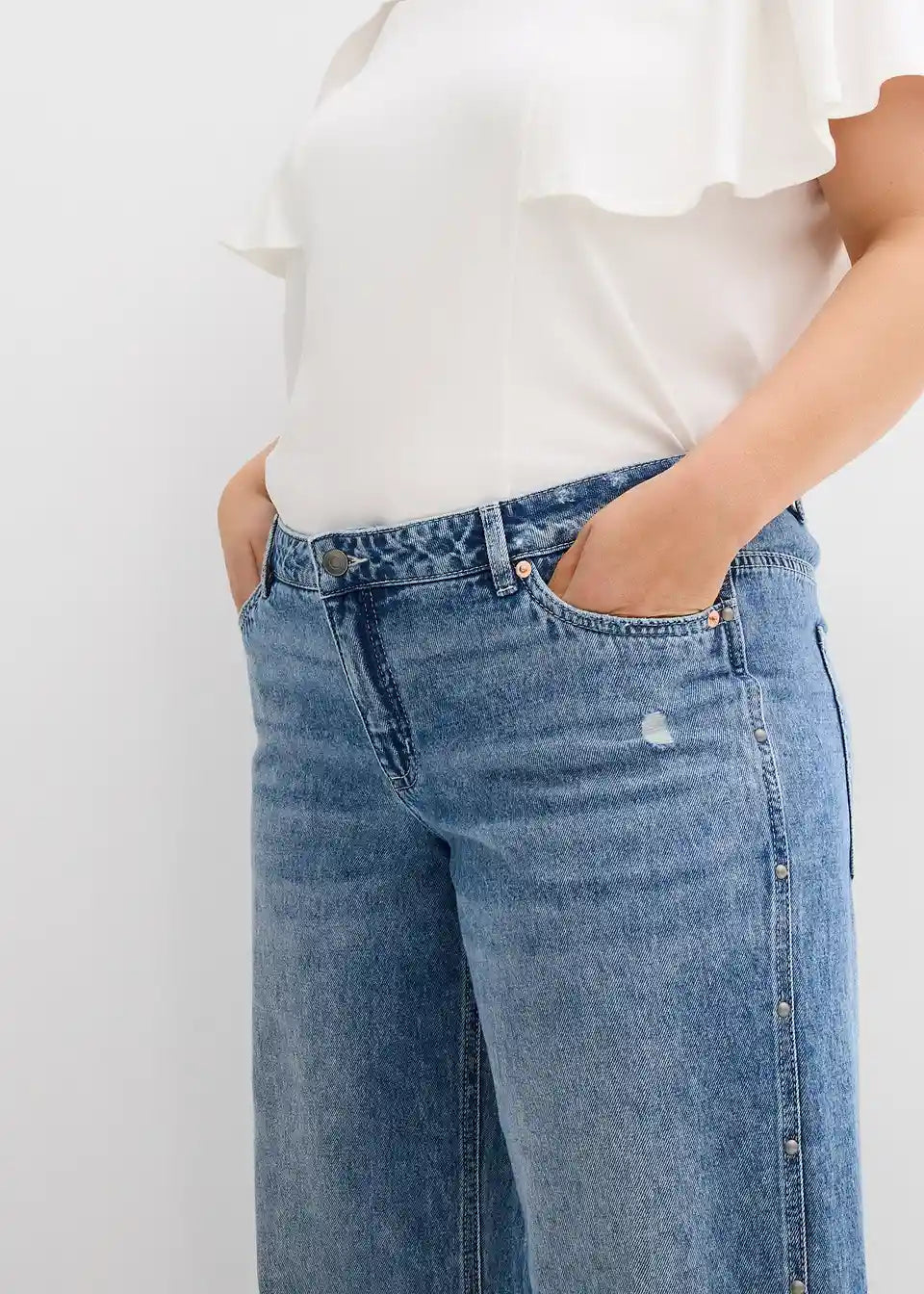 Straight-Jeans Mid Waist s zakovicama na bočnom šavu