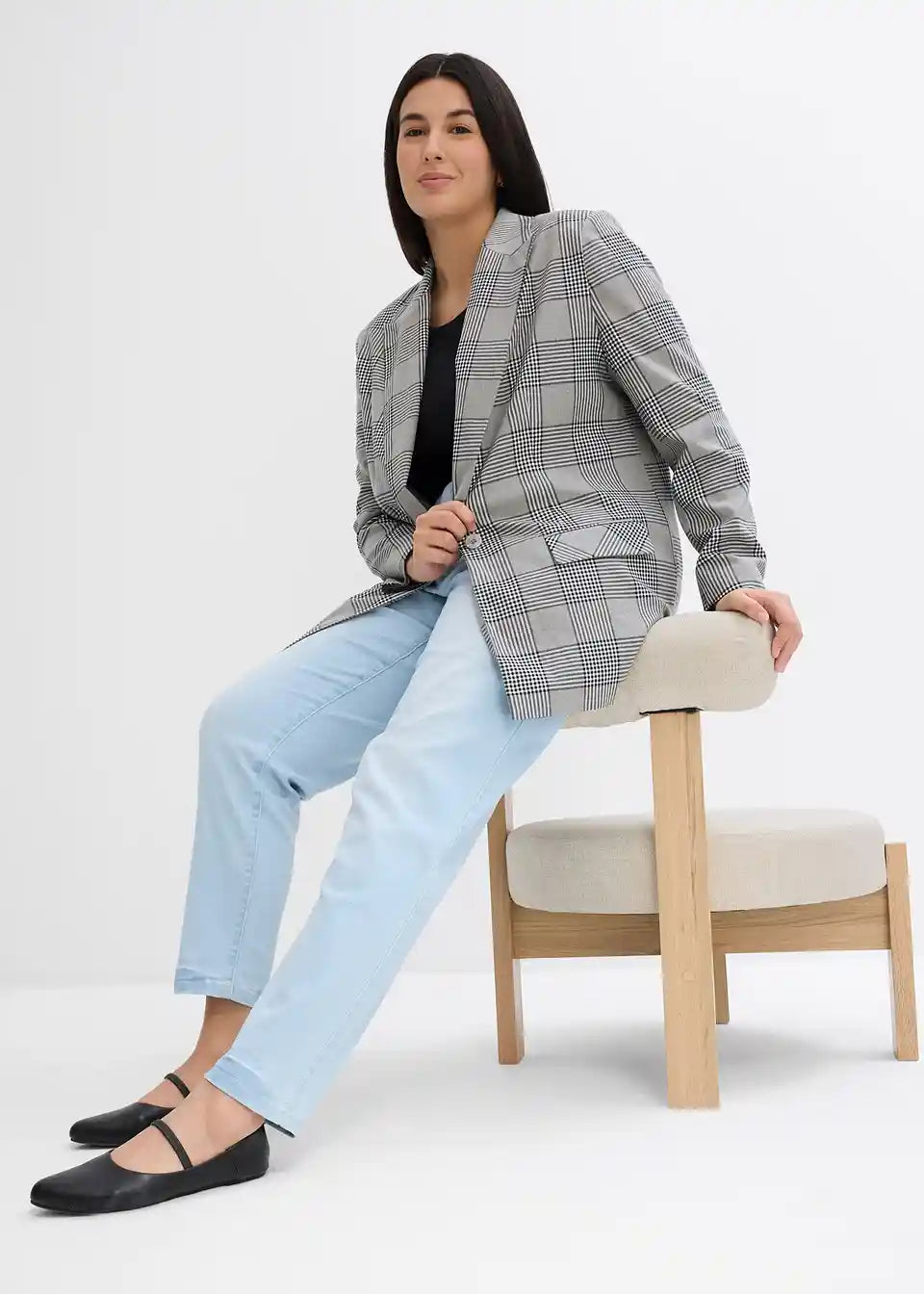 Mom traperice s vrlo visokim komotnim strukom kraćeg kroja