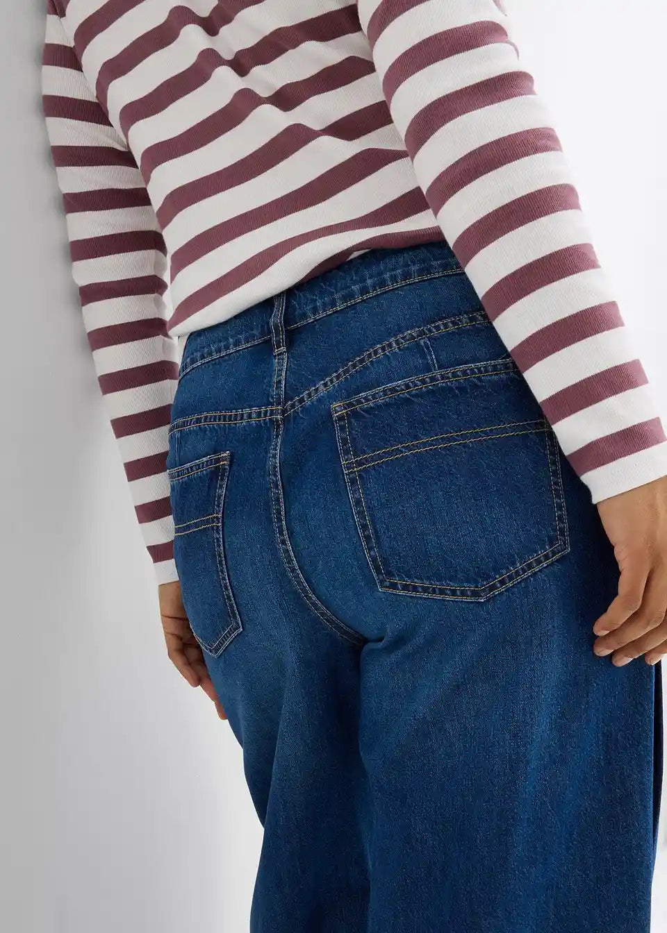 Široke 5-džepne traperice od izuzetno laganog low Stretch denima. Srednja visina struka s patentnim zatvaračem i gumbom. Dugačke, tako da na stopalu nastaje lagani stacking-efekt.