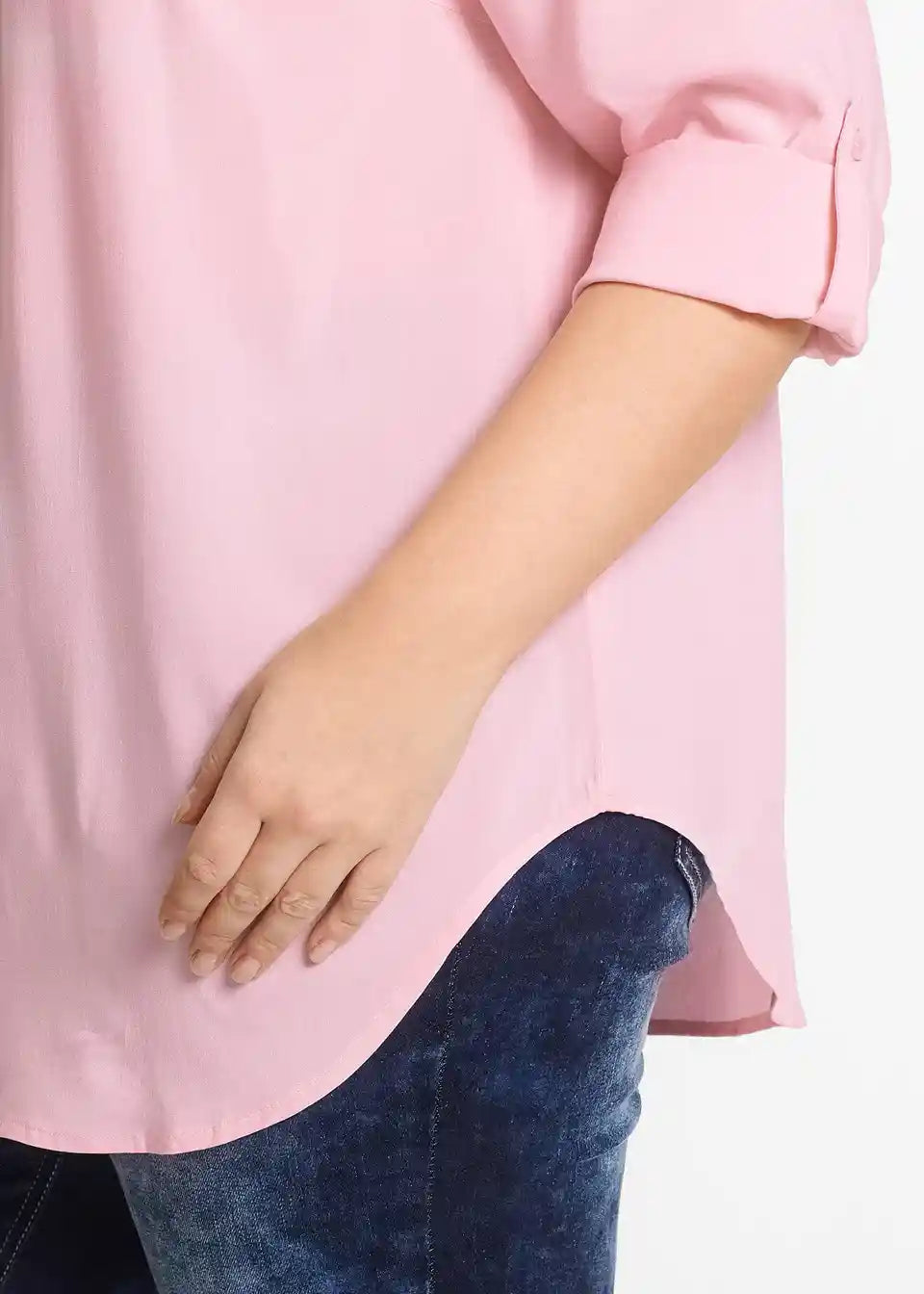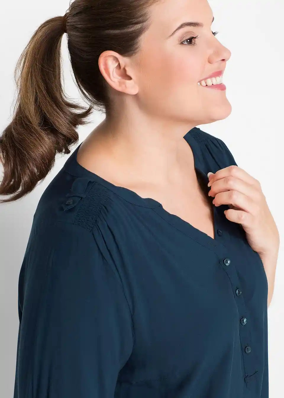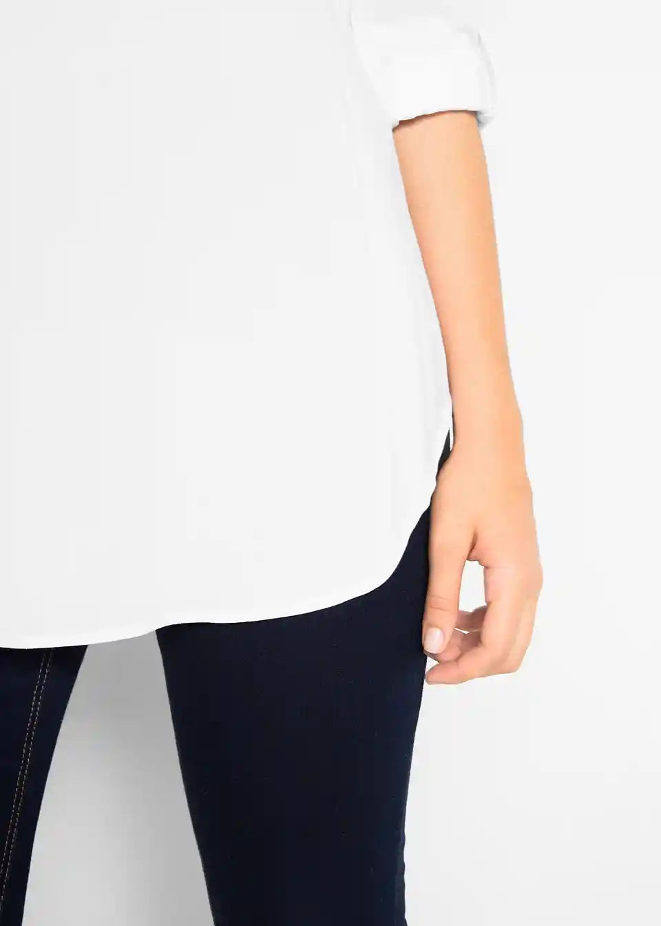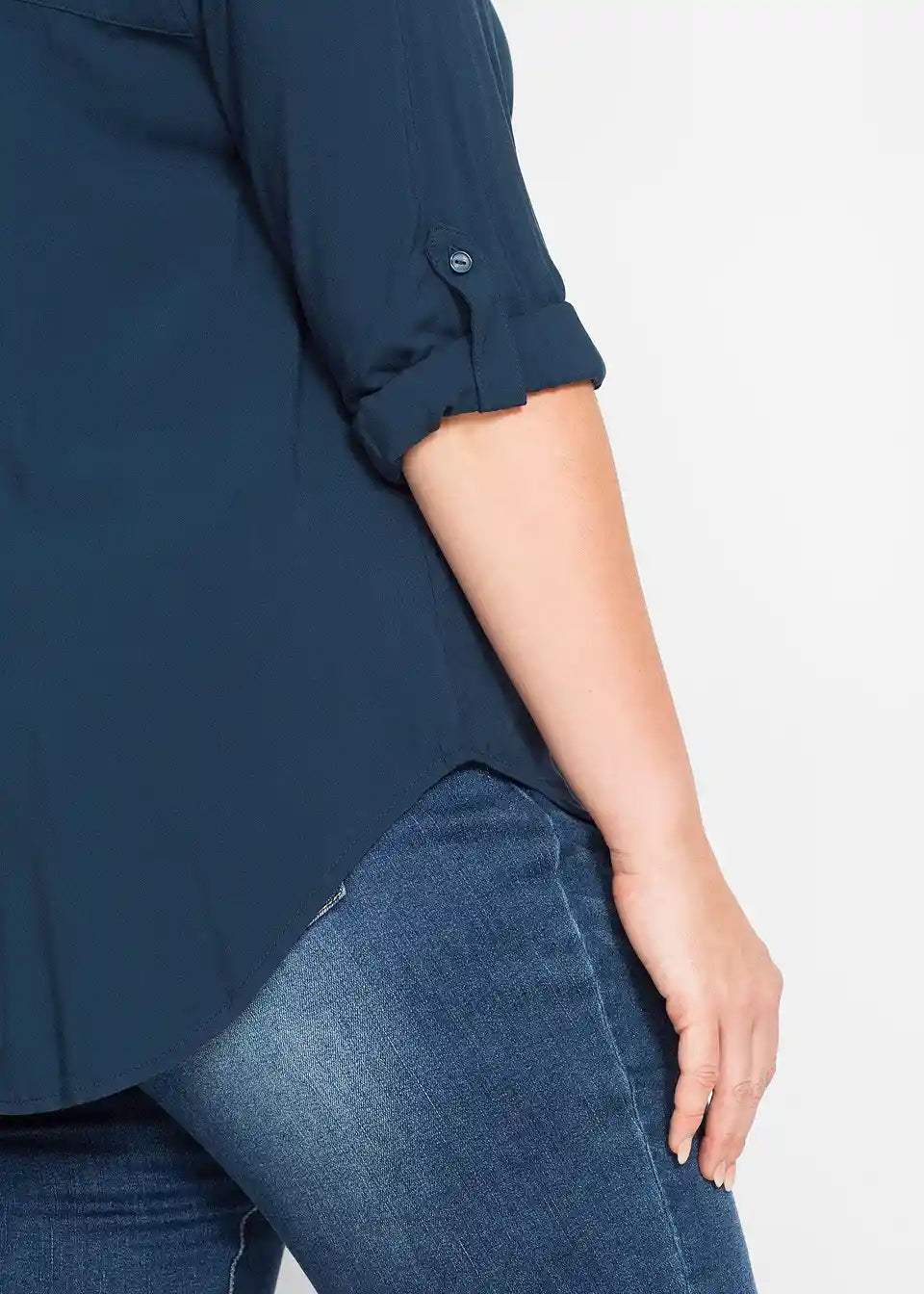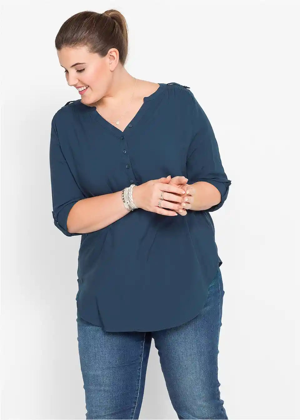 Tunika bluza koja laska figuri s dugim rukavima, zaobljenim rubom i kopčanjem na dugmad