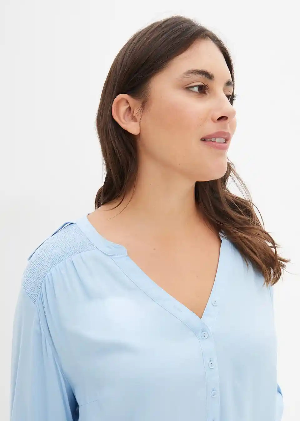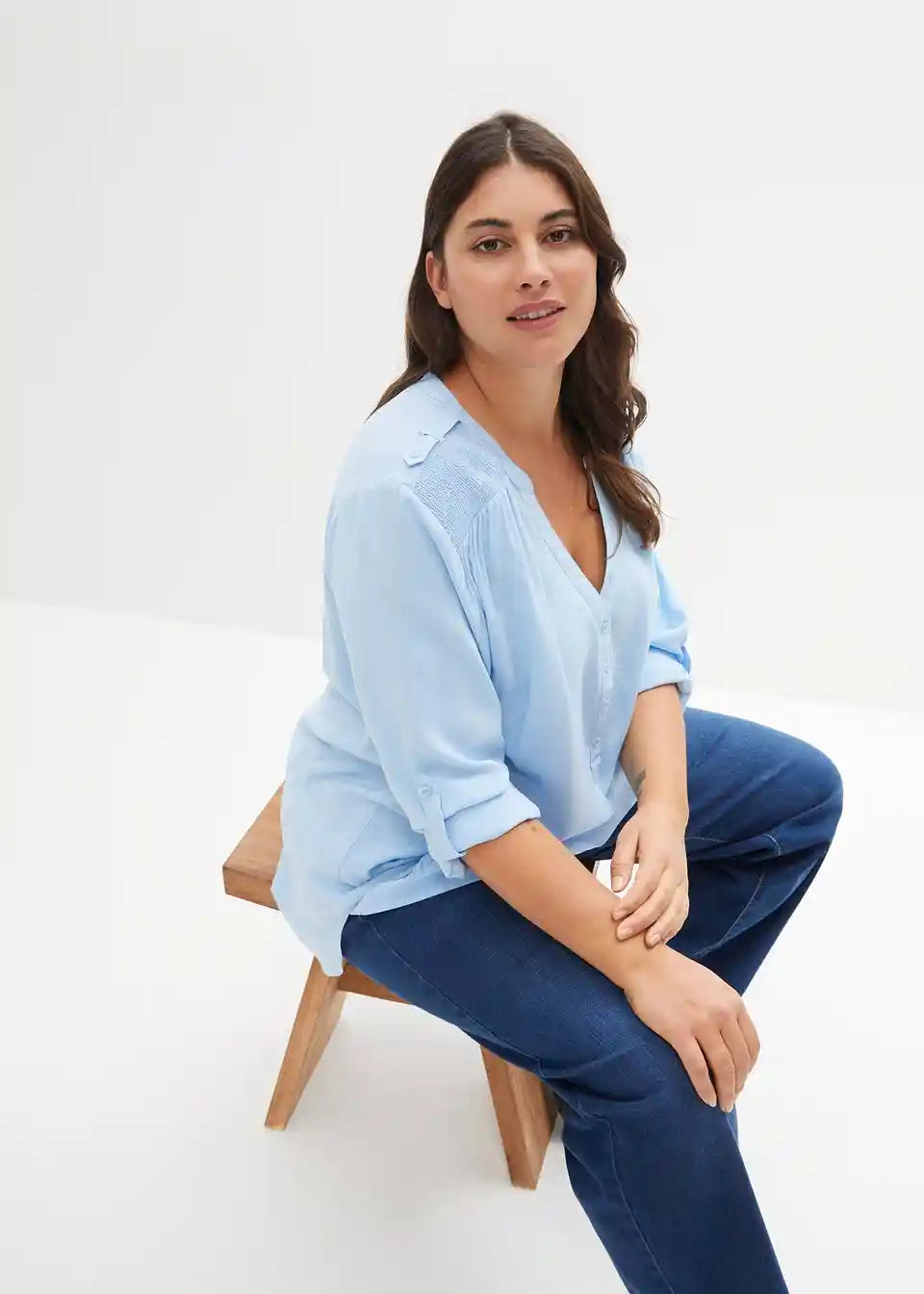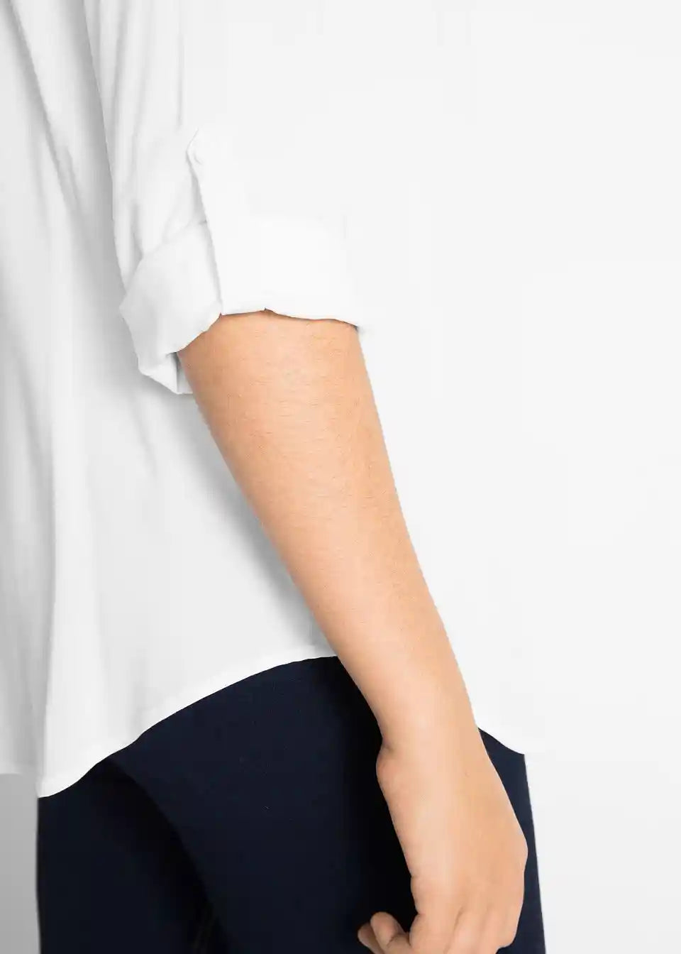 U ležernom izgledu ove sezone neizostavna je tunika bluza u kvaliteti košulje s dugim rukavima. Ovaj model oduševljava ležernim krojem i detaljima poput malih traka na rukavima za efekt podvrnutih rukava. Tunika bluza ima zaobljen rub i V-izrez na koji se nadovezuje mala dugmad. Bilo da je nosite casual uz traperice ili razigrano uz traper suknju i balerinke: Bluzu iz kolekcije bpc možete kombinirati na razne načine.