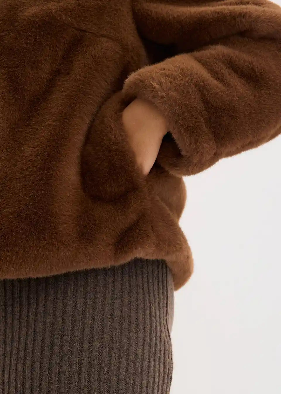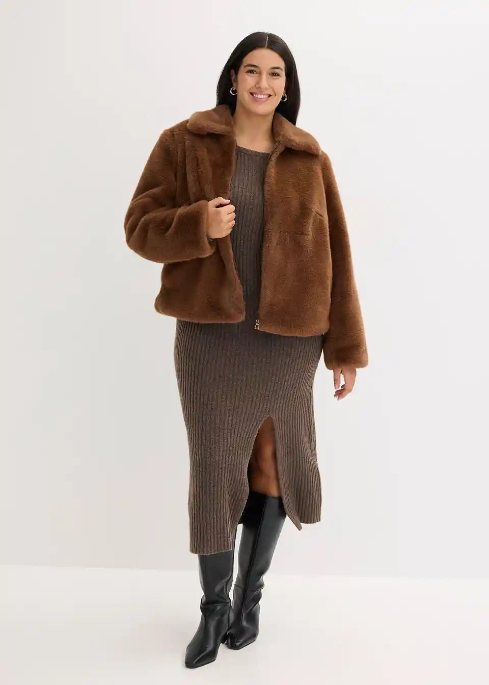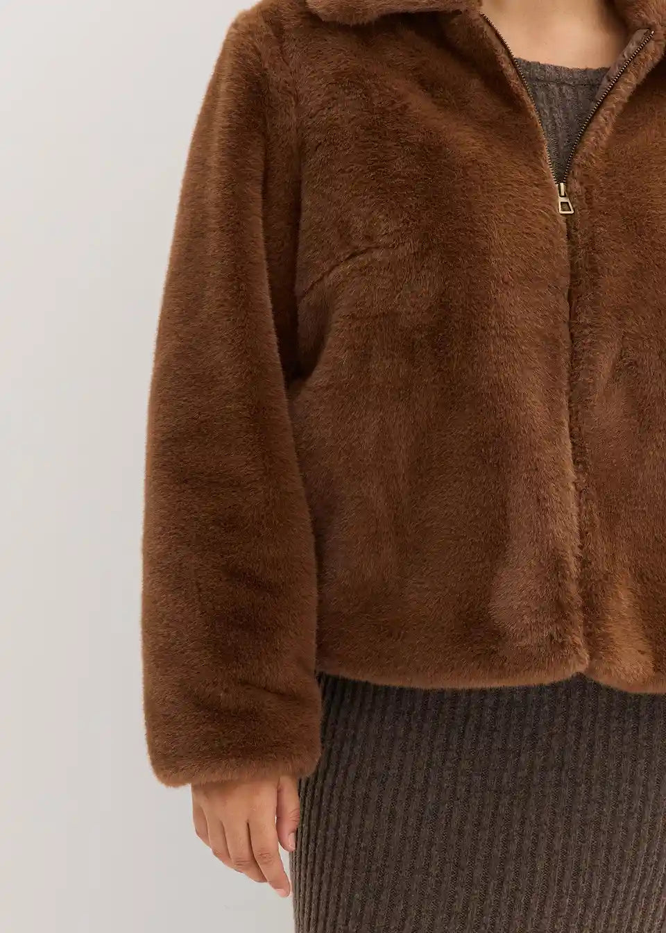 moderna kratka jakna od umjetnog krzna s patentnim zatvaračem sprijeda